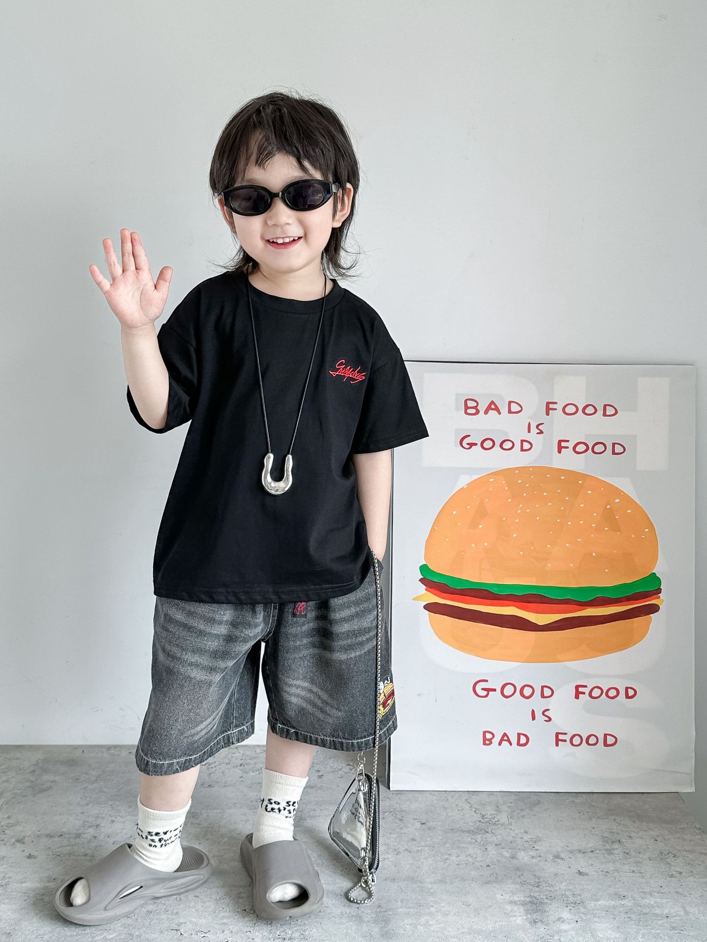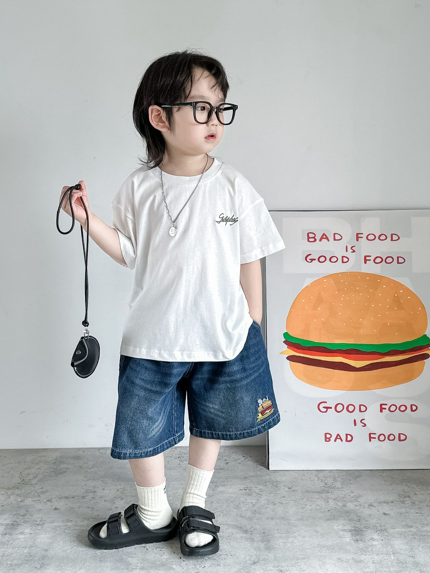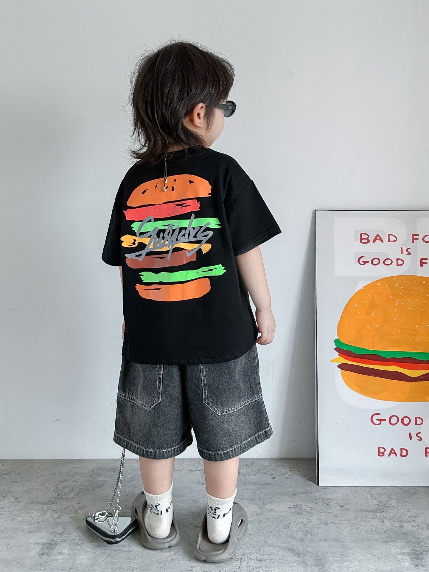 夏季搭配同系列汉堡潮T、史努比亮色T恤,