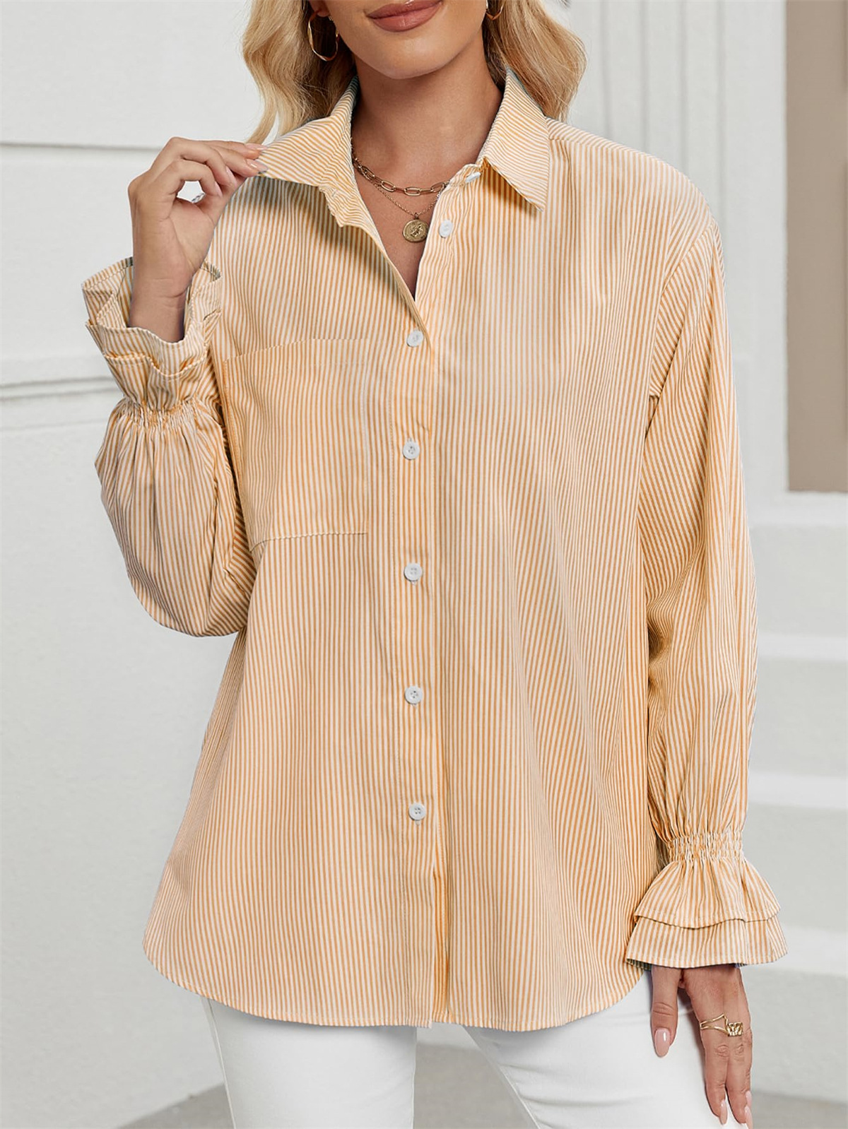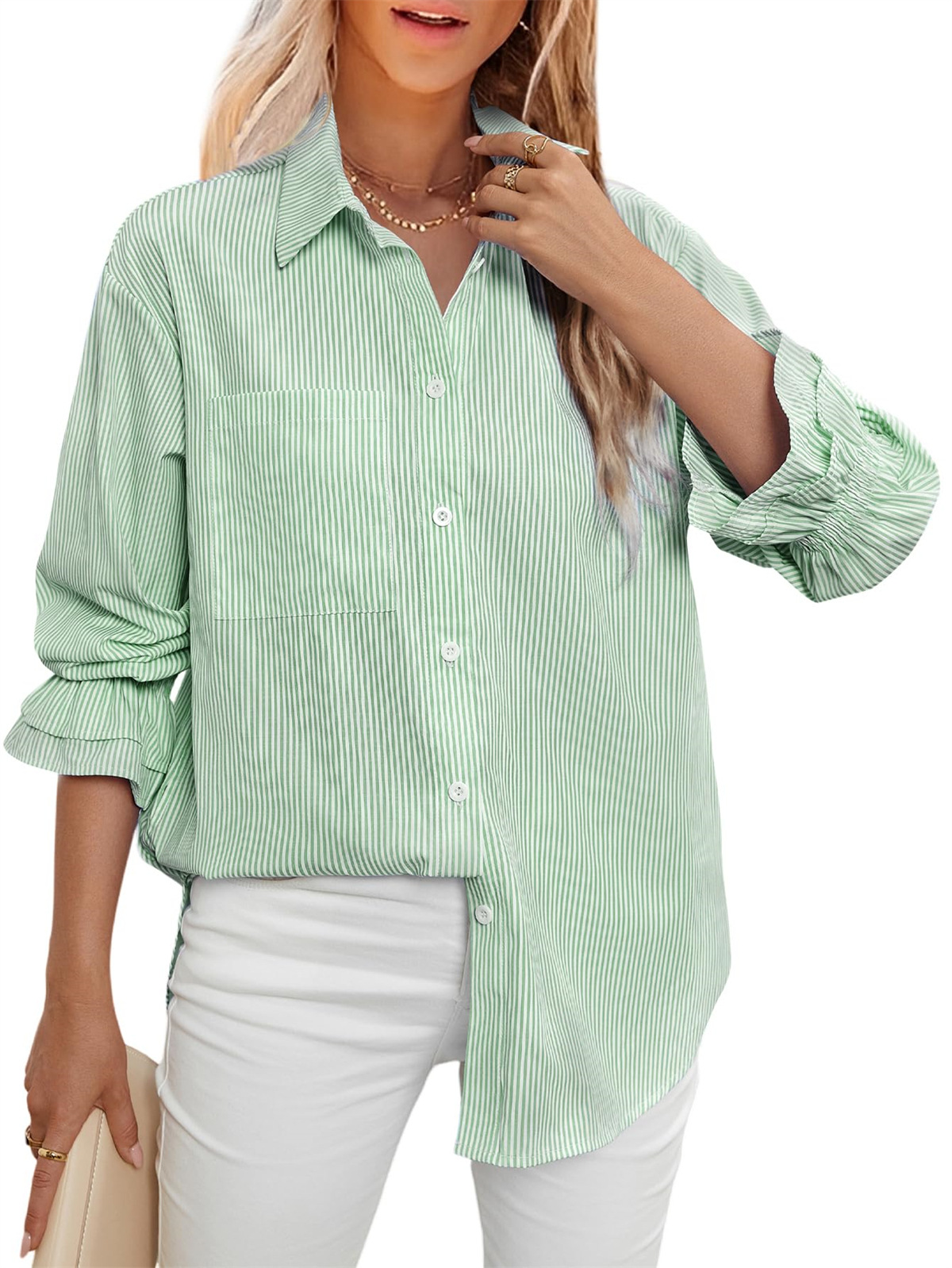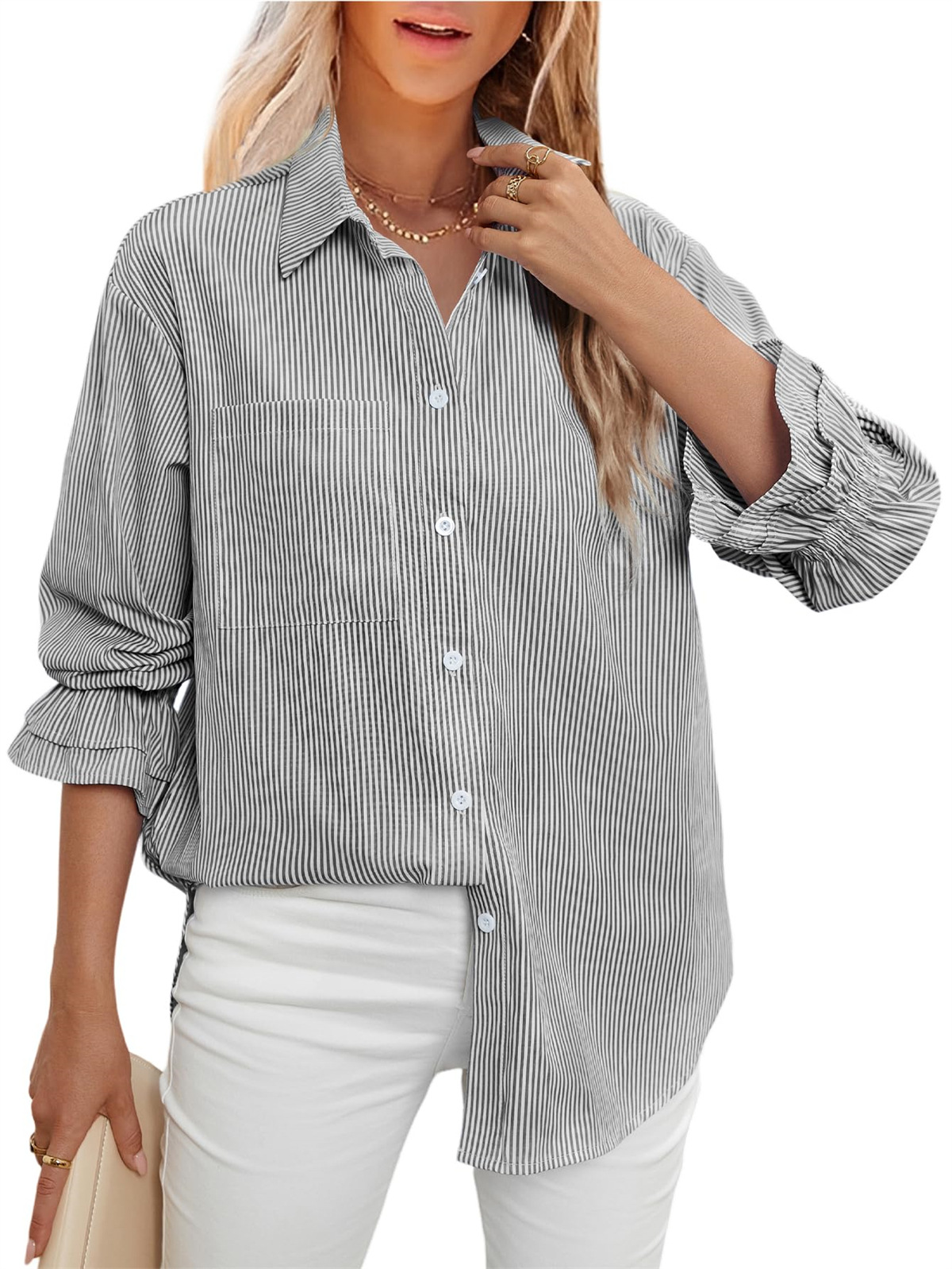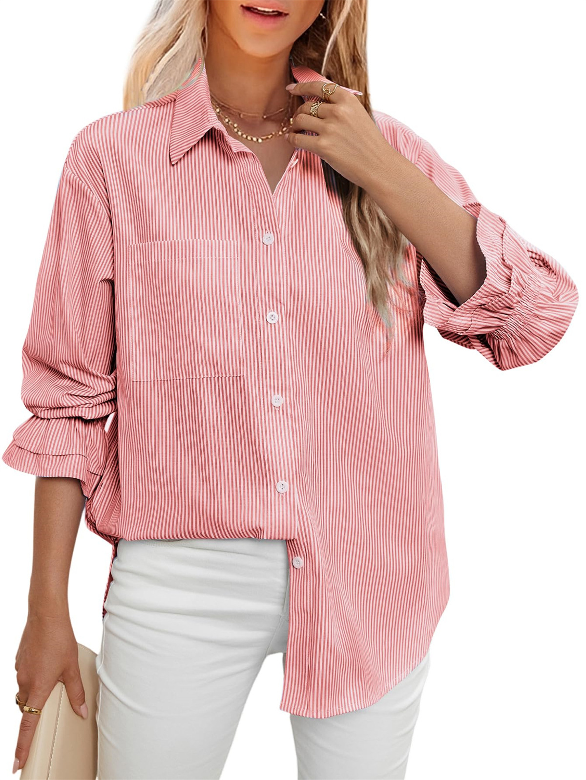유럽과 미국의 아마존 신작 2025 봄 스트라이프 캐주얼 셔츠 탑 데일리 긴팔 셔츠