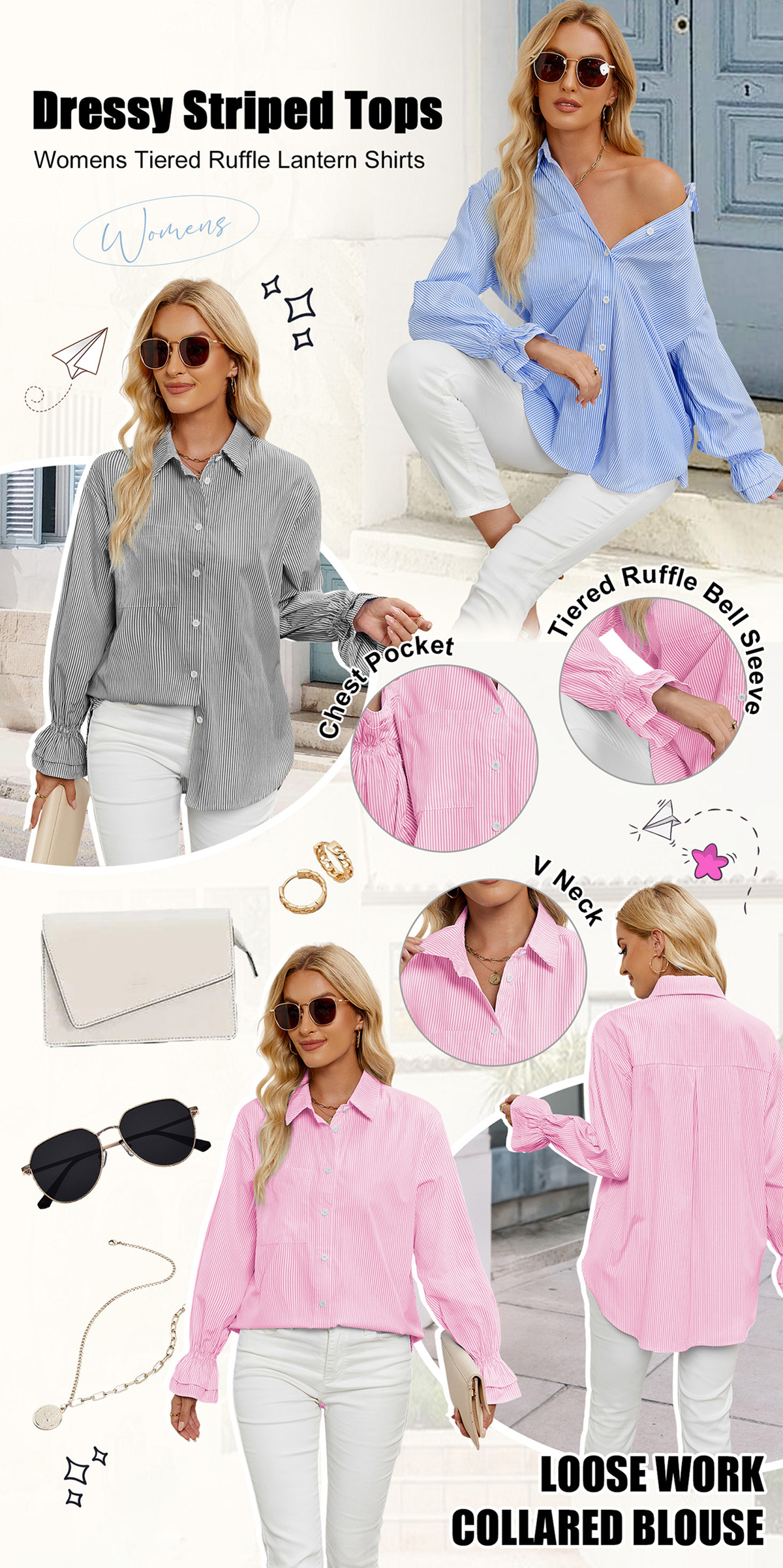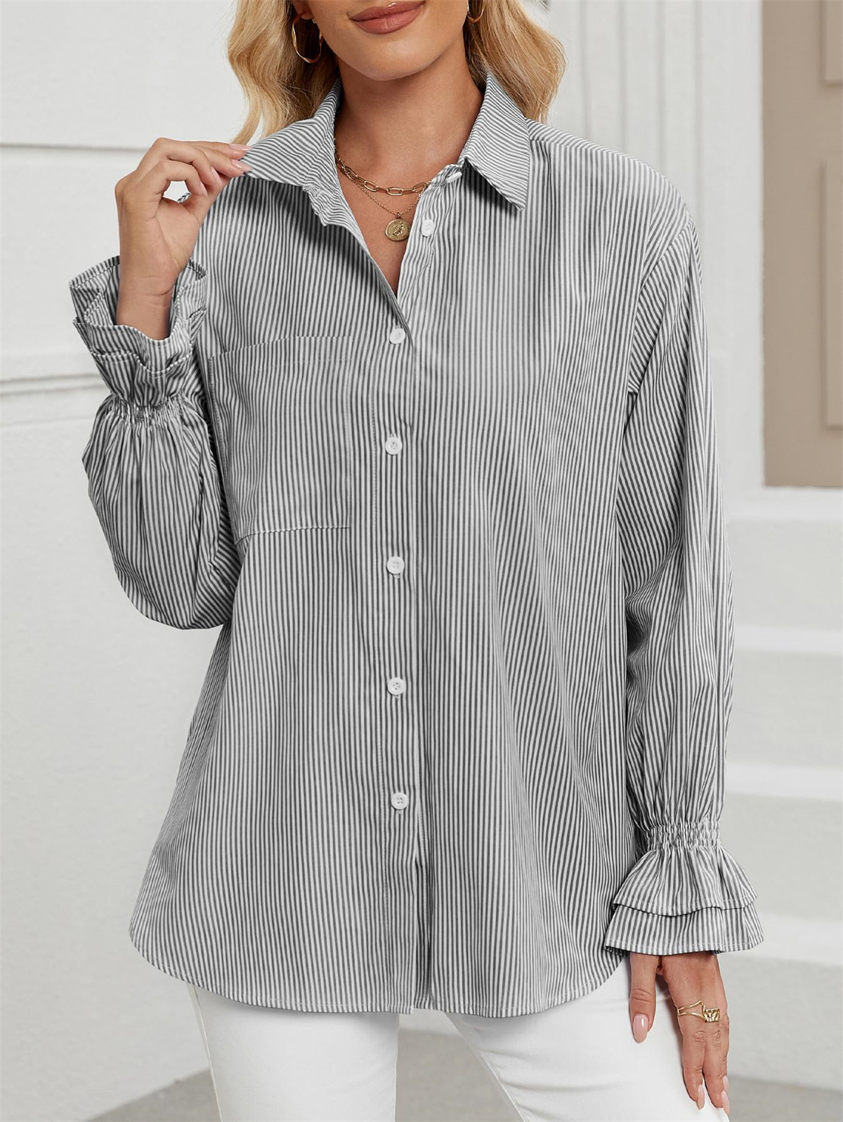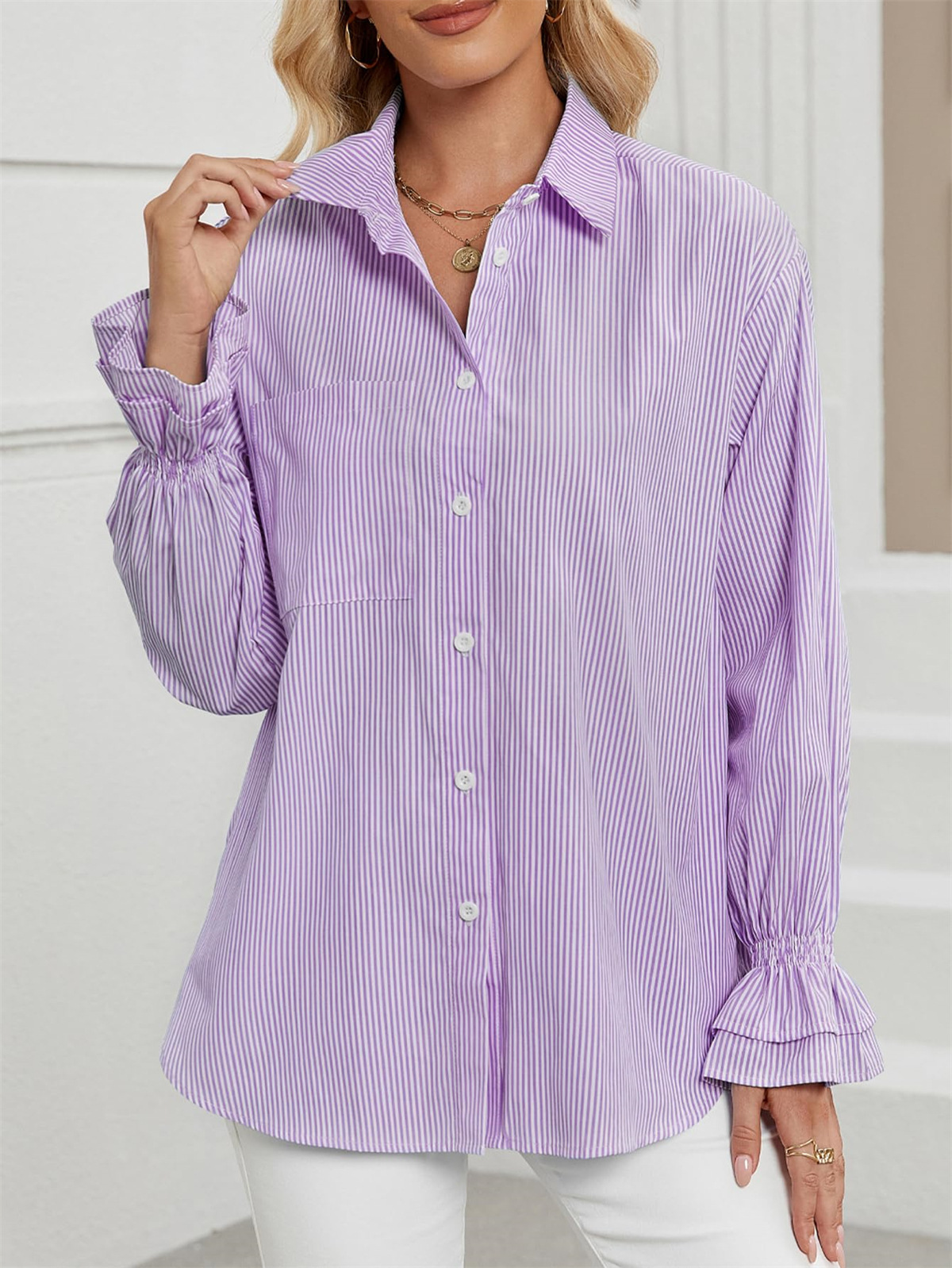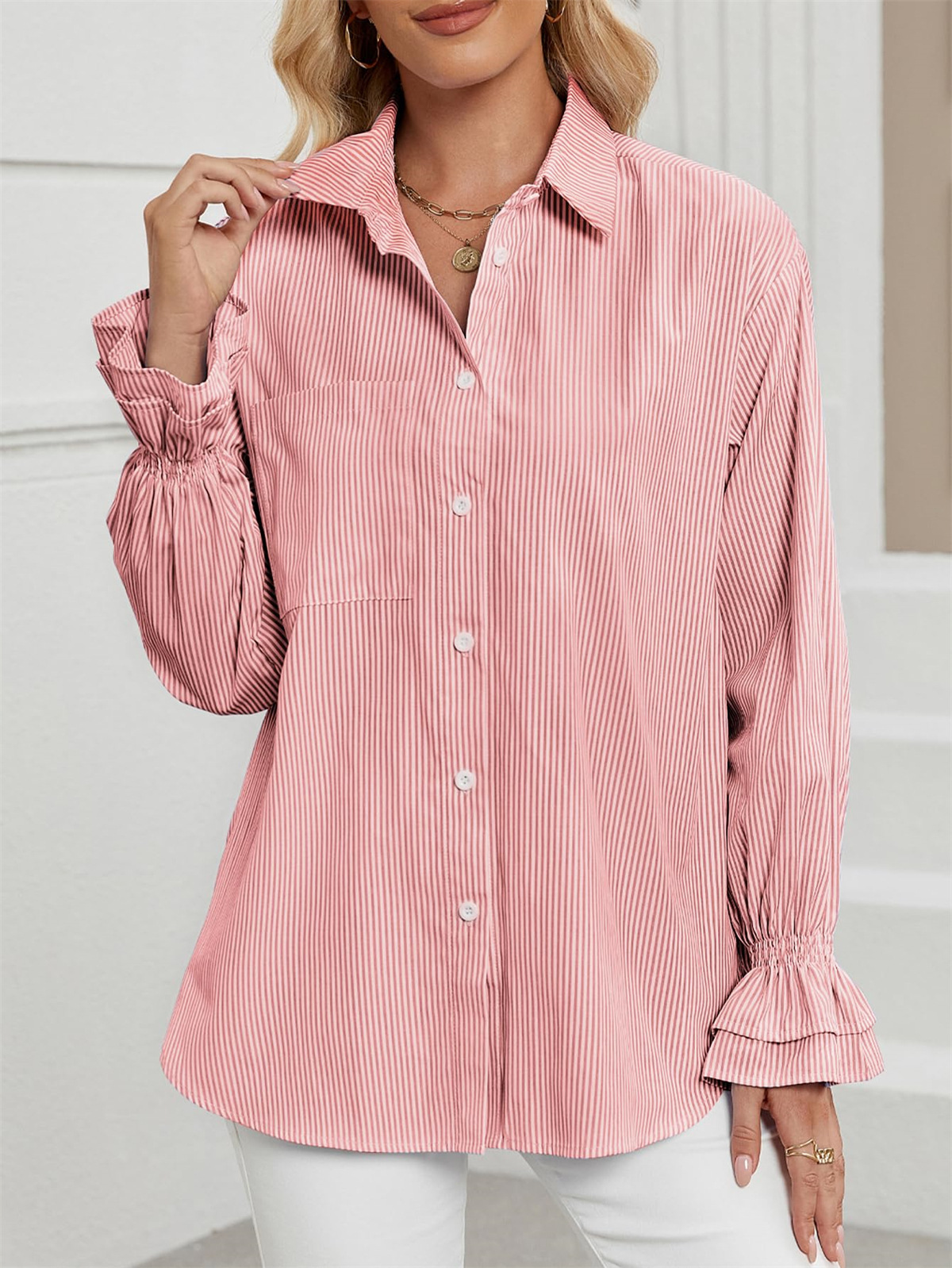 유럽과 미국의 아마존 신작 2025 봄 스트라이프 캐주얼 셔츠 탑 데일리 긴팔 셔츠