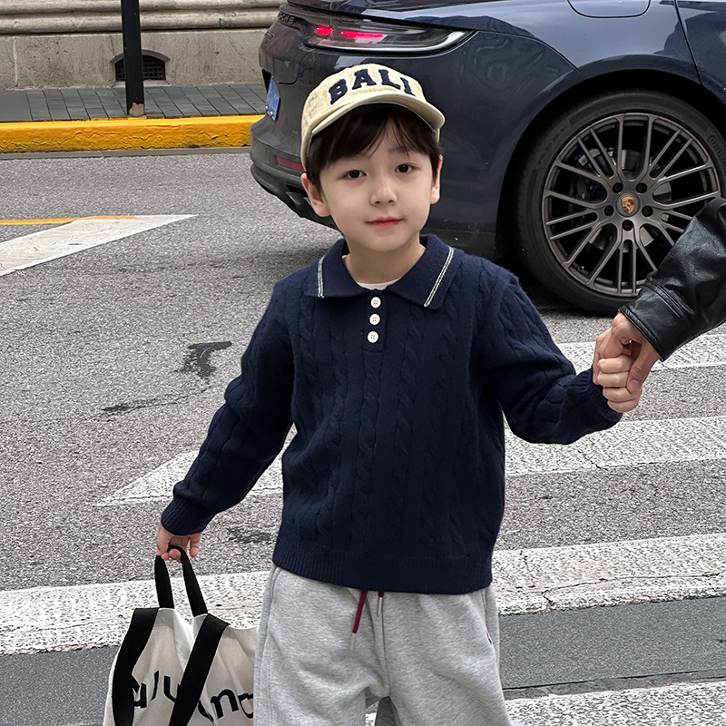 Elmo Beibei 겨울 어린이 스타일 대비 색상 두꺼운 스웨터 소년의 멋진 양털 옷깃 트위스트 스웨터스토어 가기