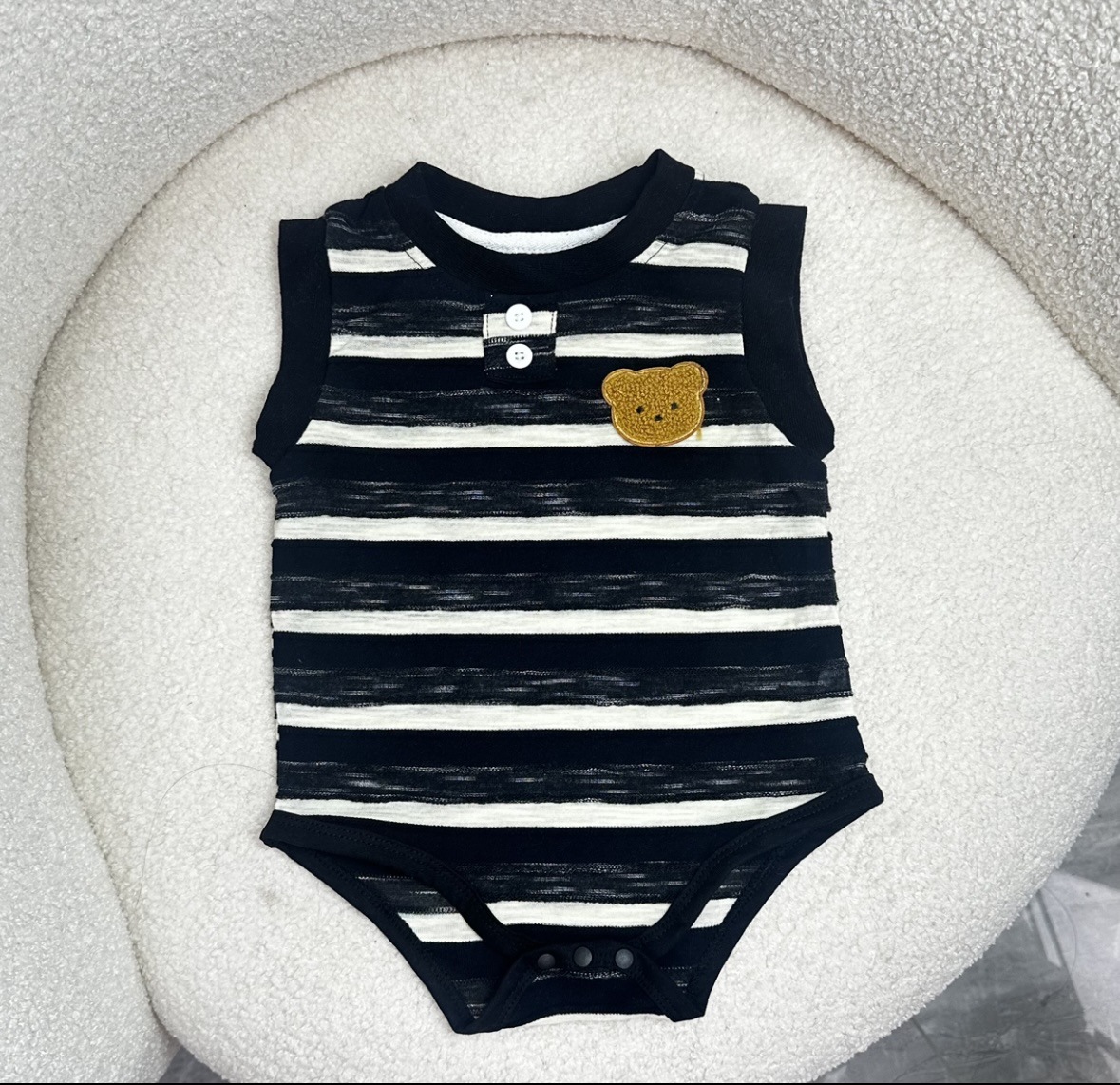 아기옷, 남녀공용 여름얇은 스트라이프 삼각점프수트, 외출시 매우 귀여운 스타일의 크롤링수트스토어 가기