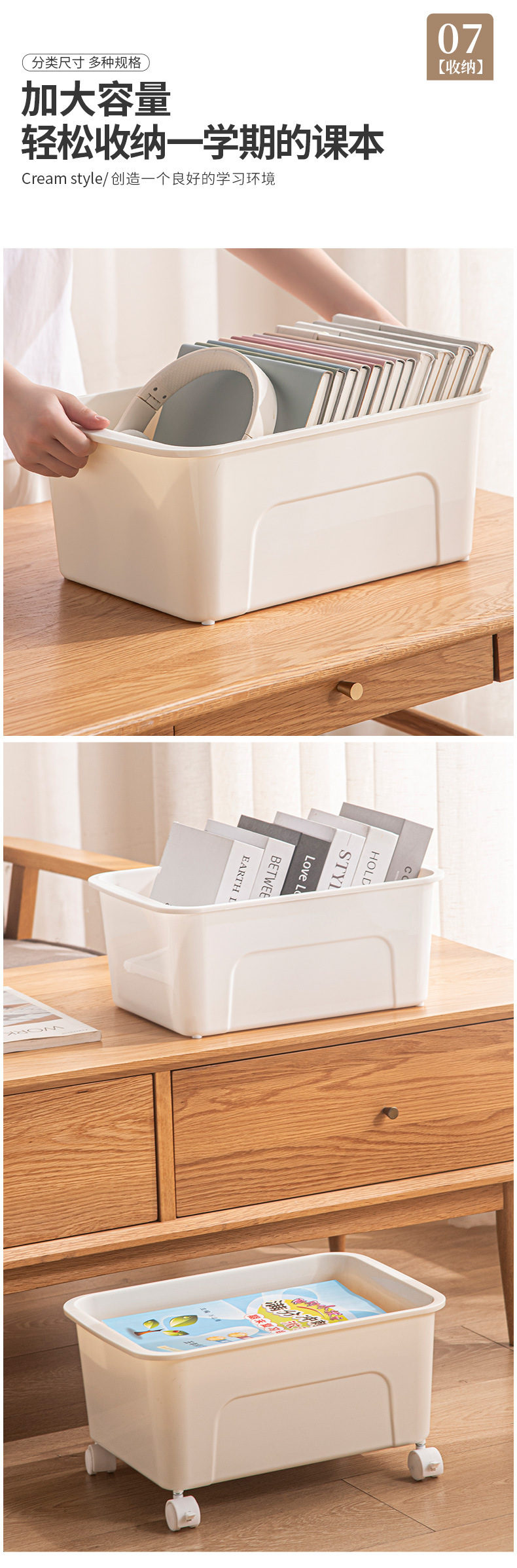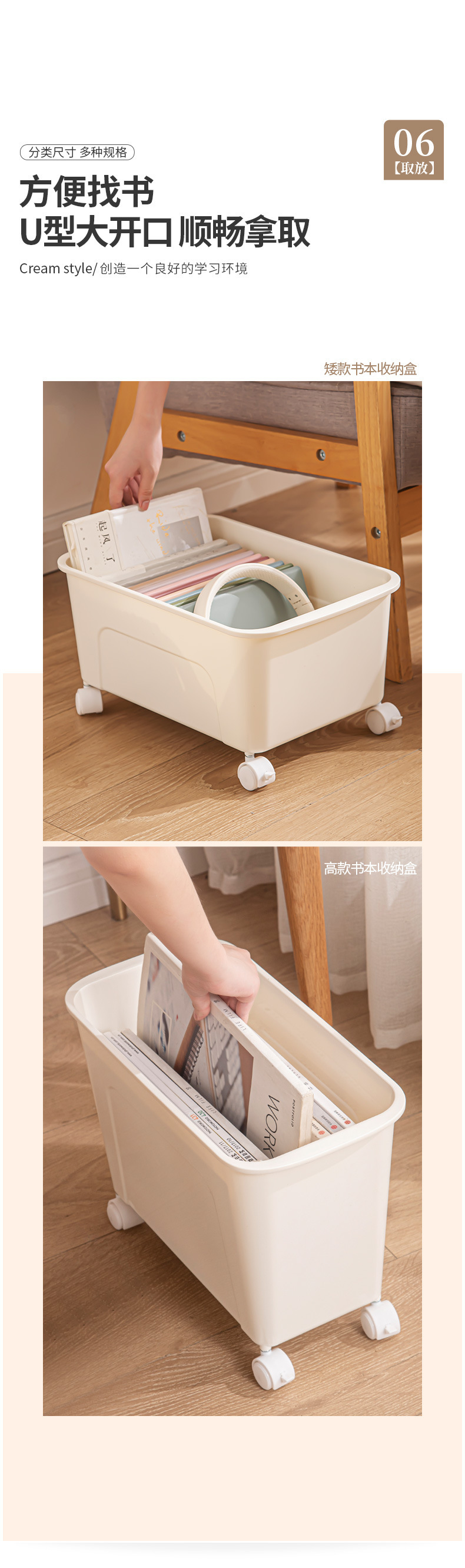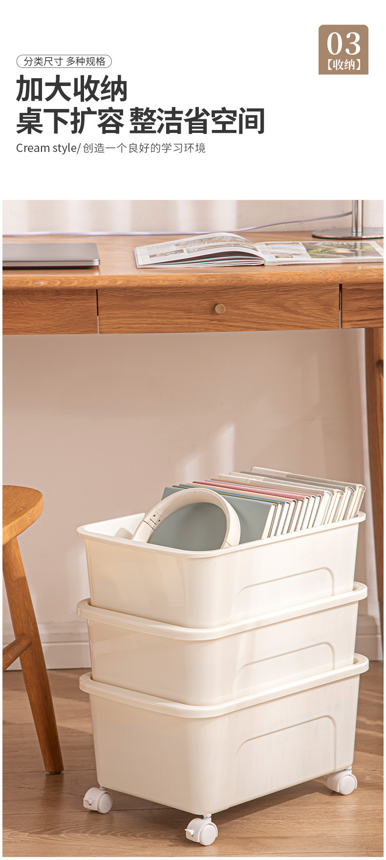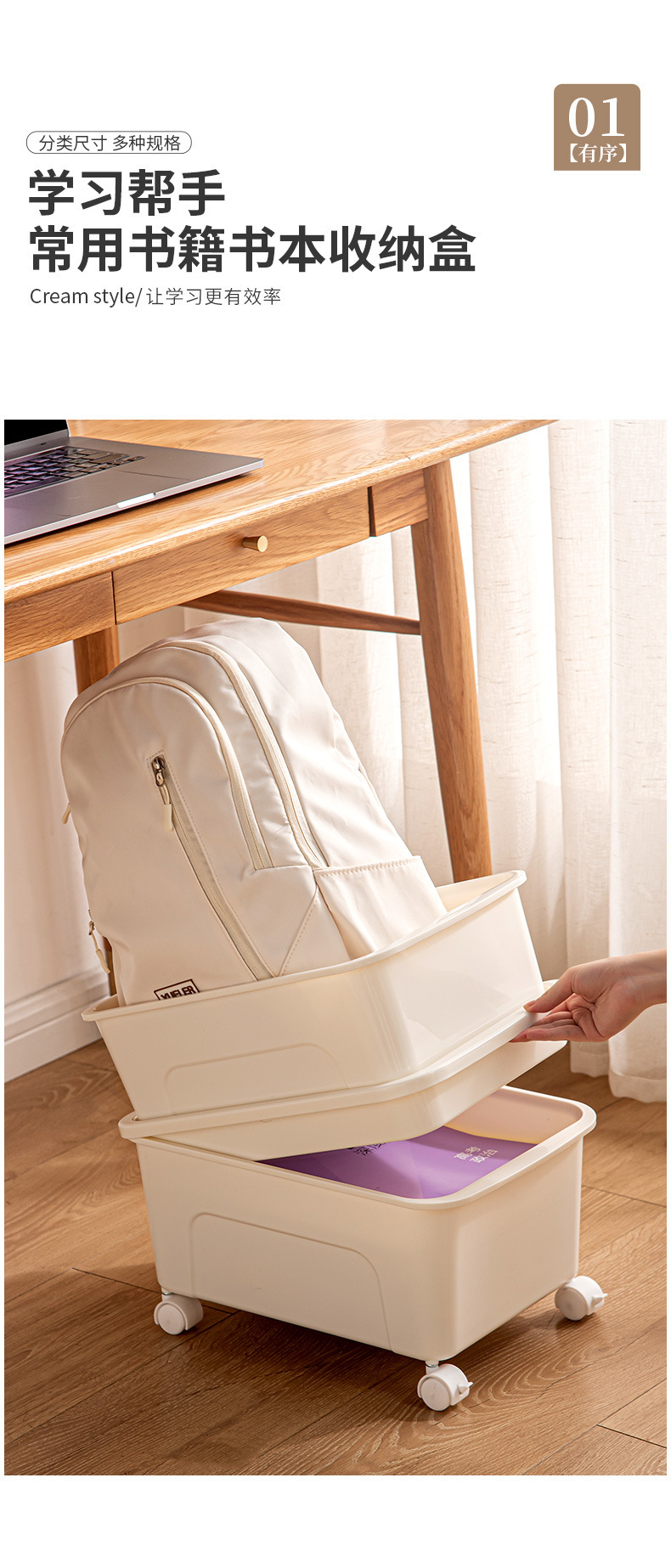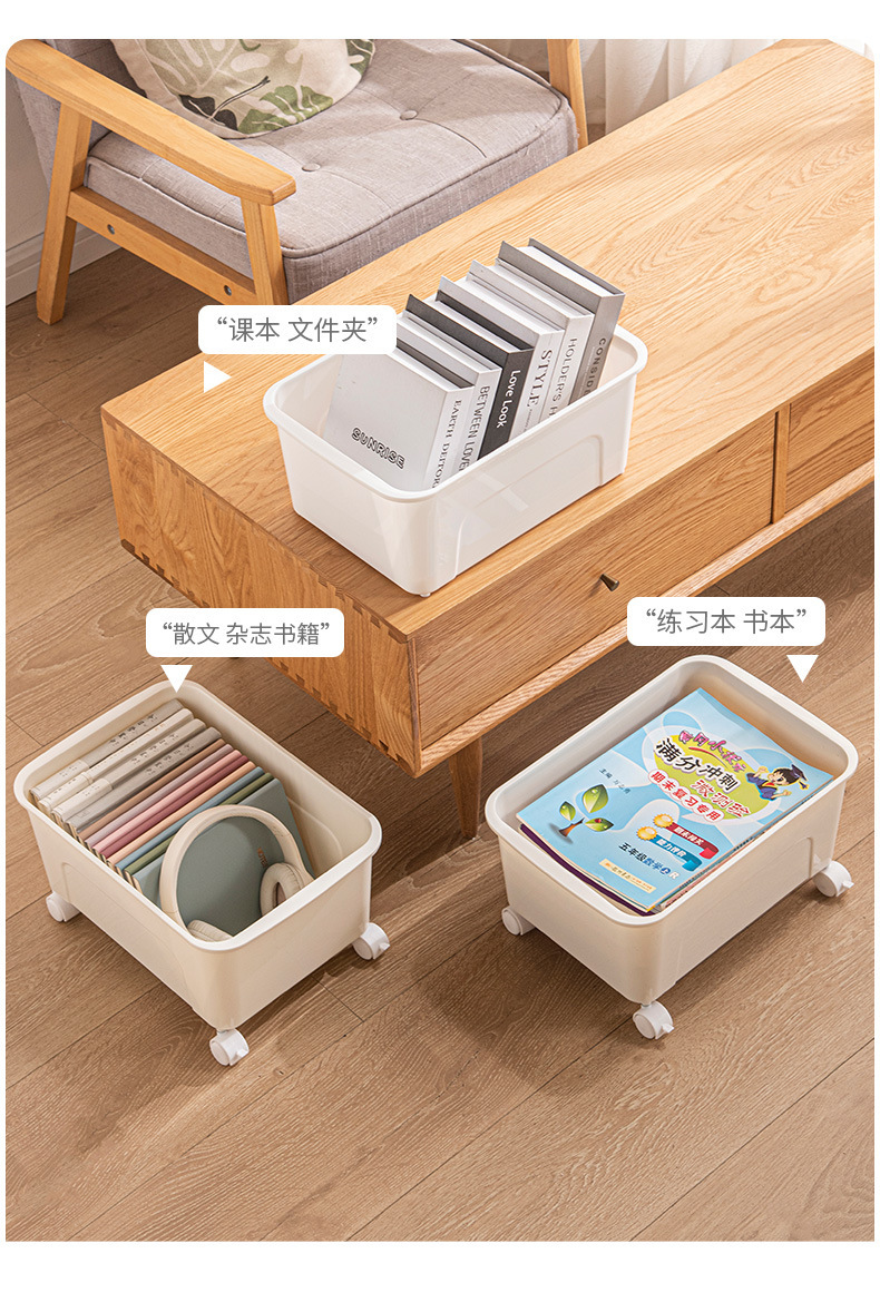 책을 위한 교실 및 사무실 잔해물 가방 보관함 학생 도서 상자를 위한 테이블 아래 바퀴가 달린 이동식 보관함스토어 가기