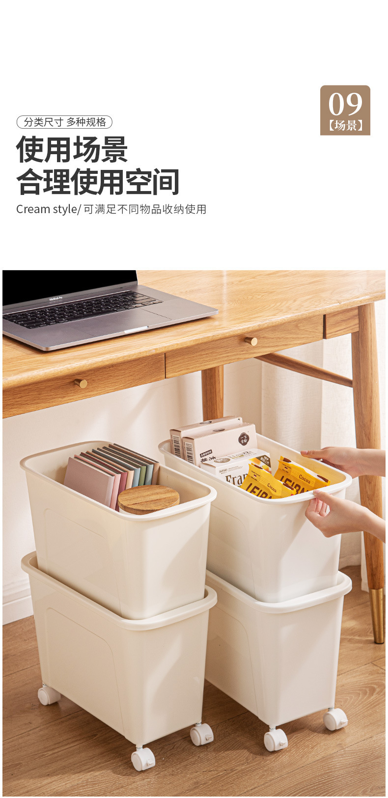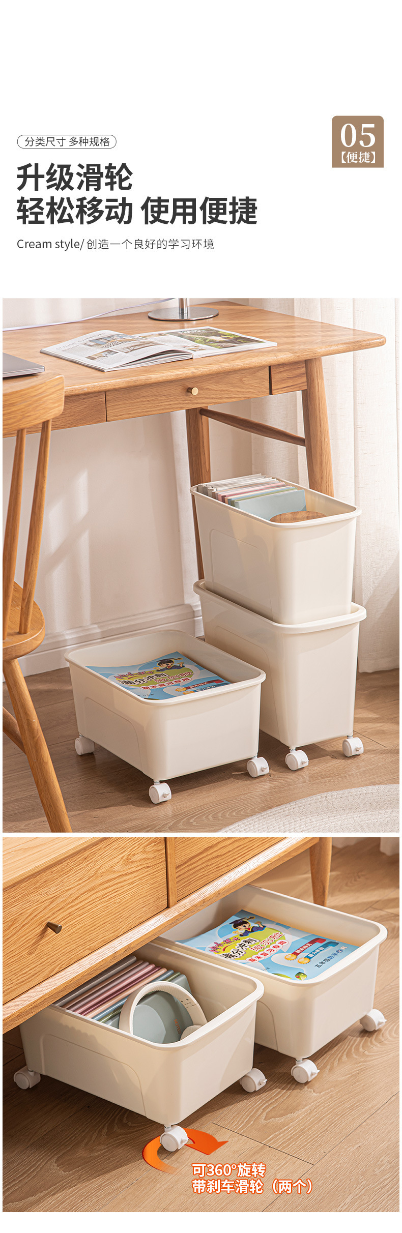 책을 위한 교실 및 사무실 잔해물 가방 보관함 학생 도서 상자를 위한 테이블 아래 바퀴가 달린 이동식 보관함