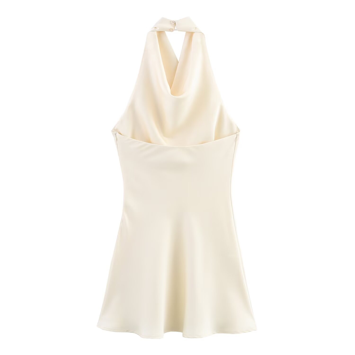 도매 2025 봄 새로운 유럽과 미국 스타일의 여성 블랙 실크 새틴 홀터넥 넥 드레스 11508스토어 가기