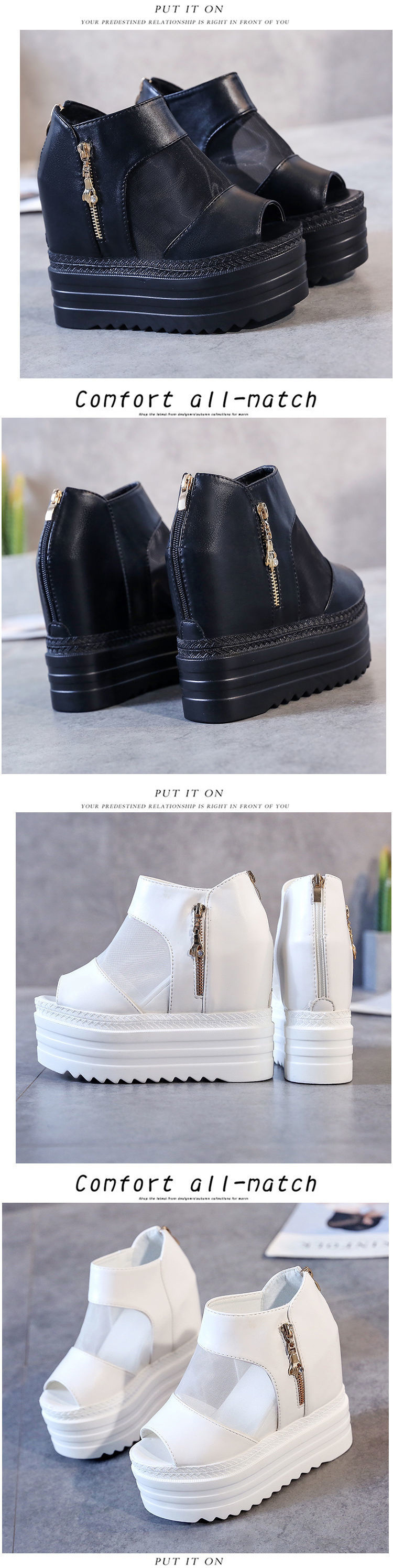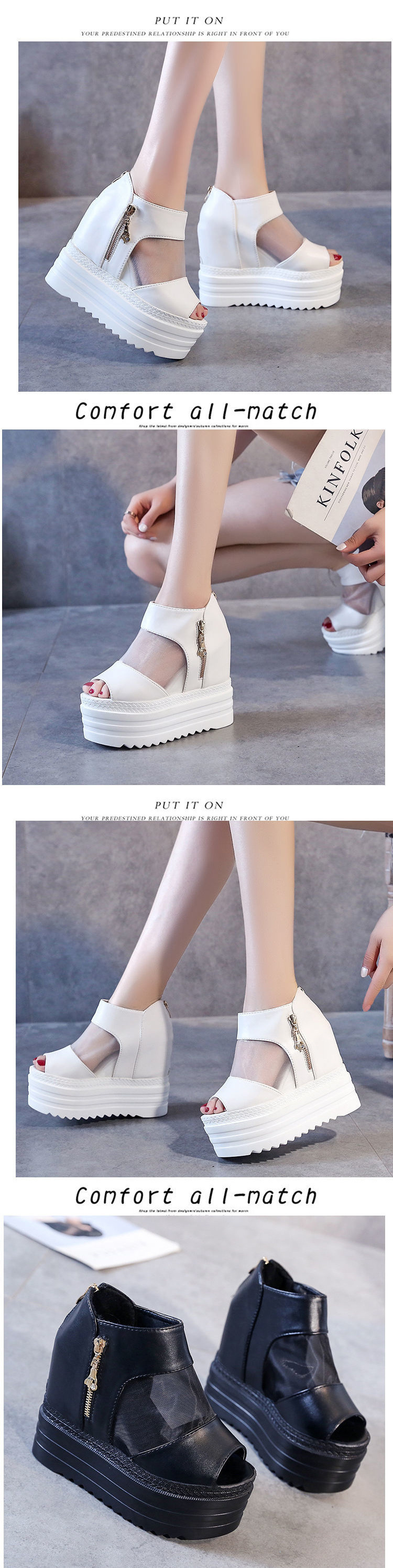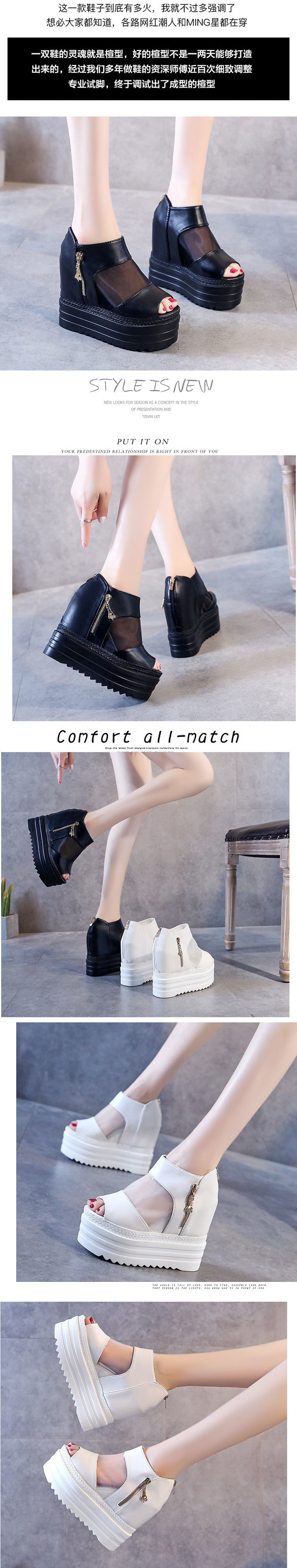 여성을위한 물고기 입 신발 2023 여름 새로운 두꺼운 밑창 웨지 메쉬 내부 강화 여성 신발 12cm 방수 플랫폼 로마 샌들스토어 가기