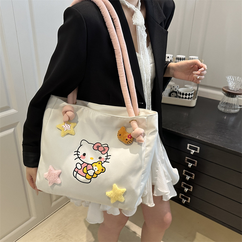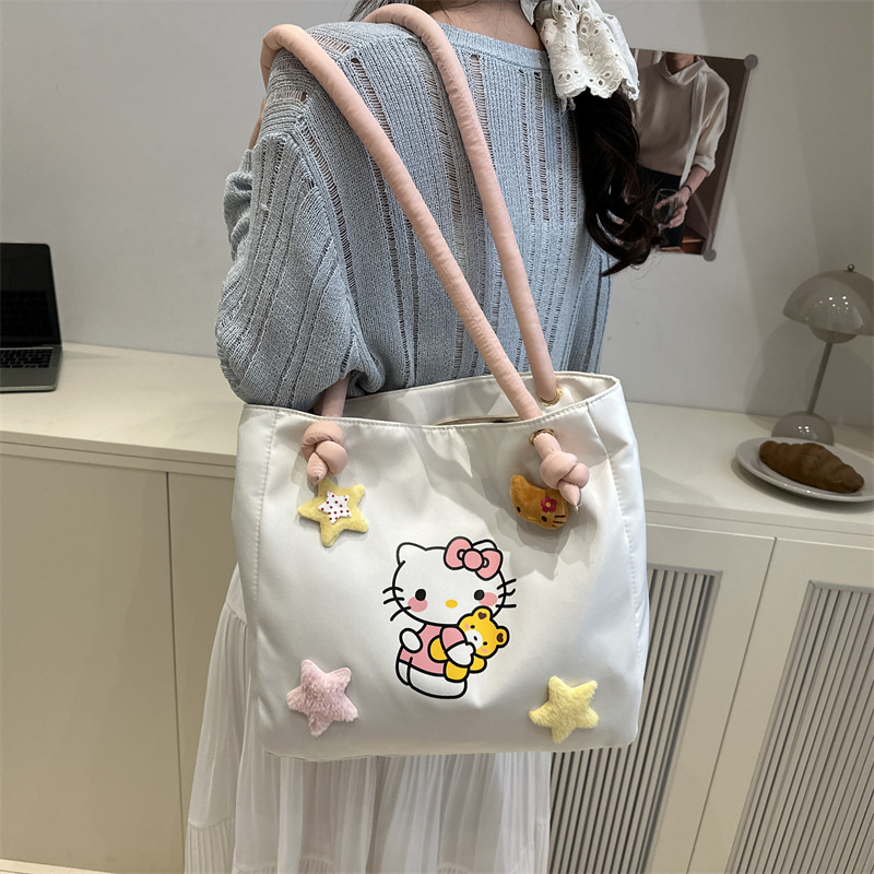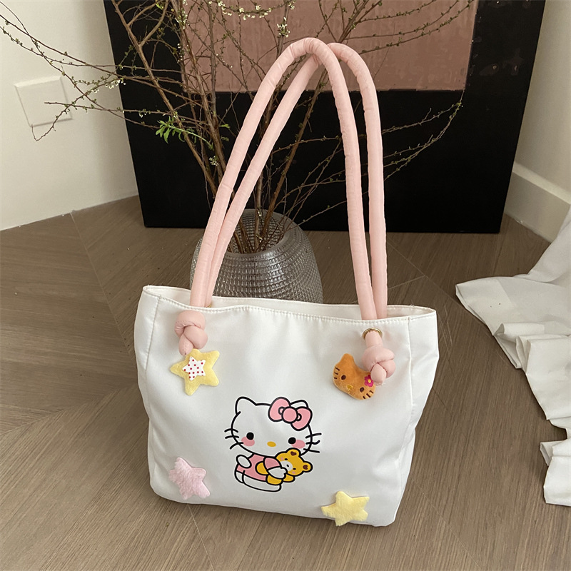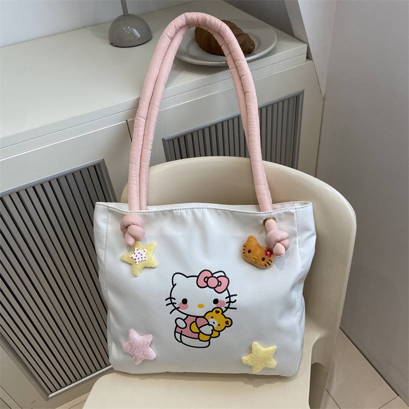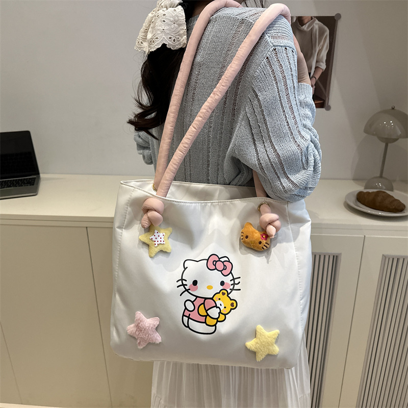 헬로키티 다재다능하고 귀엽고 달콤한 여성용 토트백 대용량 통근 맞춤형 캐주얼 틈새 디자인 숄더백스토어 가기