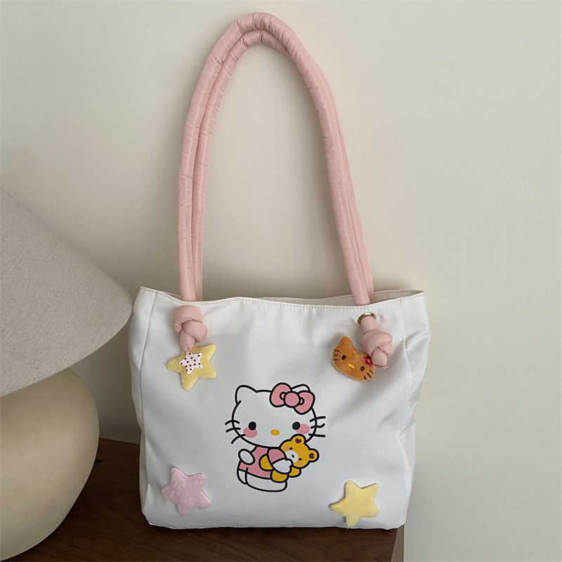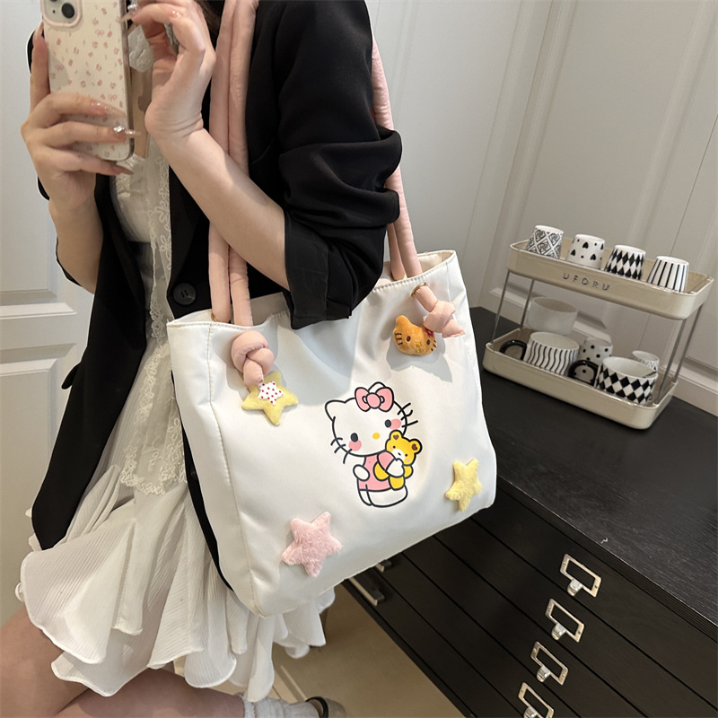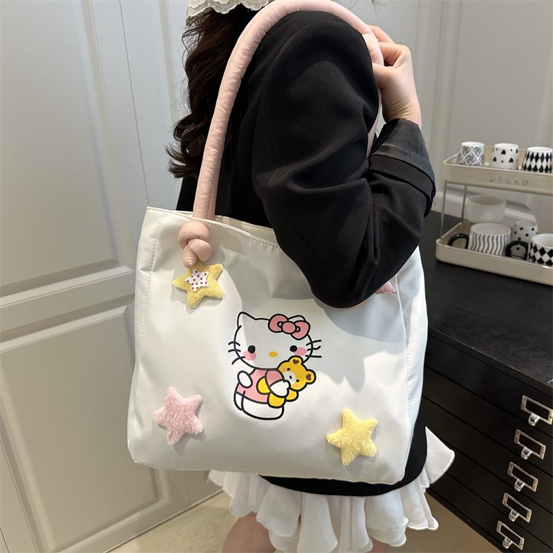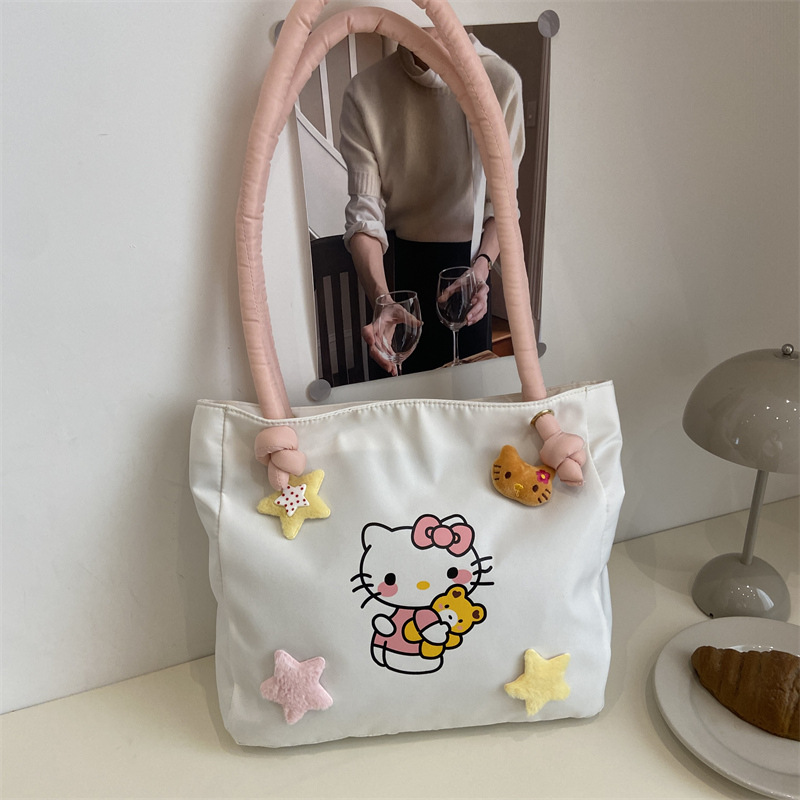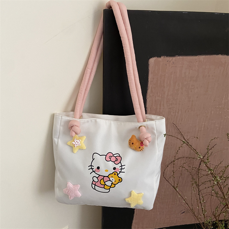 헬로키티 다재다능하고 귀엽고 달콤한 여성용 토트백 대용량 통근 맞춤형 캐주얼 틈새 디자인 숄더백스토어 가기