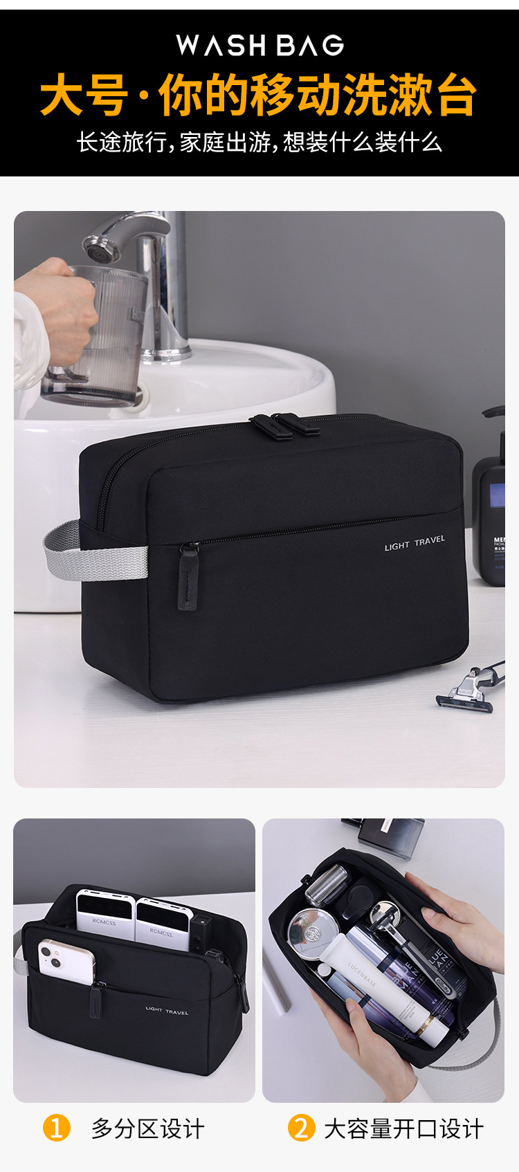 국경 새로운 경량 휴대용 여행 워시 백 남자 여행 수영 피트니스 대용량 화장품 보관 가방