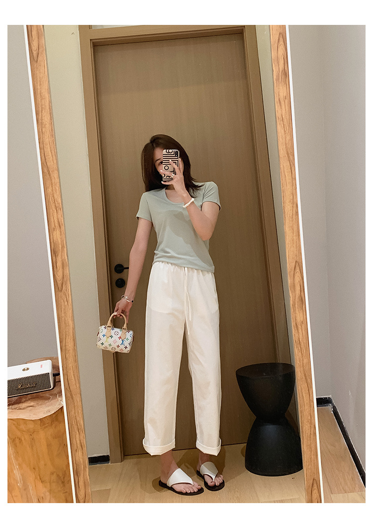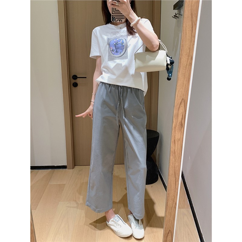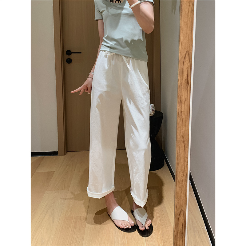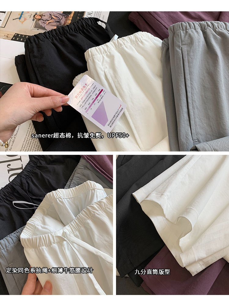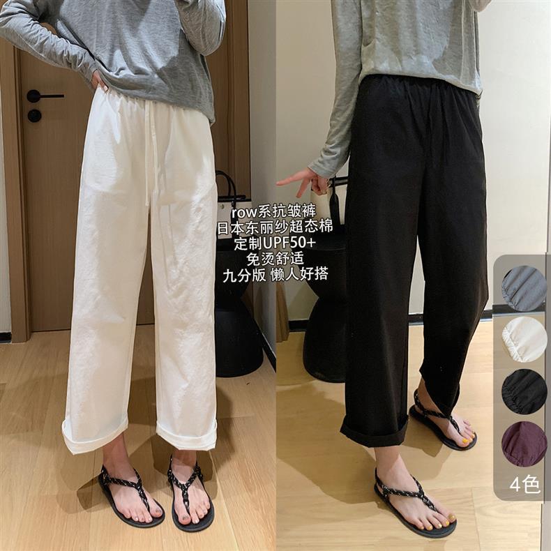 봄은 늦은 여름 주름 방지 게으른 바지가 아닙니다! UPF50 비 다림질 진 입 슈퍼면 9 점 스트레이트 캐주얼 바지스토어 가기