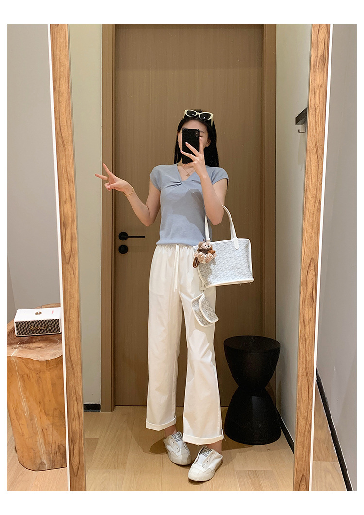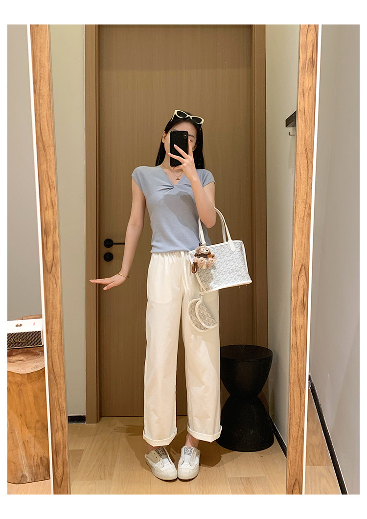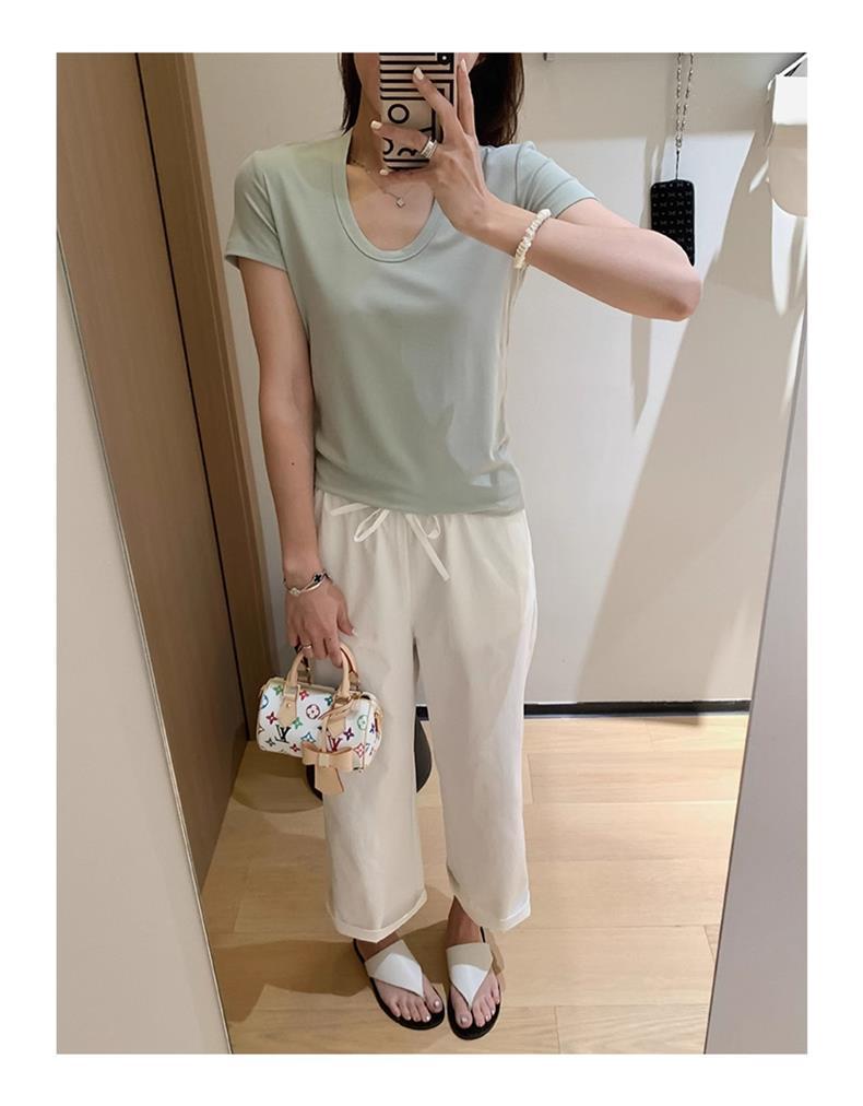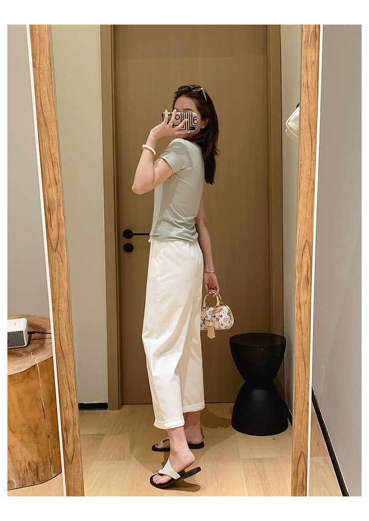 봄은 늦은 여름 주름 방지 게으른 바지가 아닙니다! UPF50 비 다림질 진 입 슈퍼면 9 점 스트레이트 캐주얼 바지스토어 가기