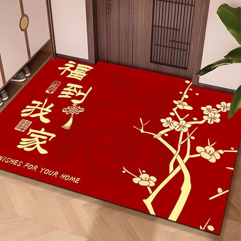 빨간색 축제 규조토 진흙 입구 바닥 매트 미끄럼 방지 흡수성 중국 스타일 홈 입구 문 매트 도매