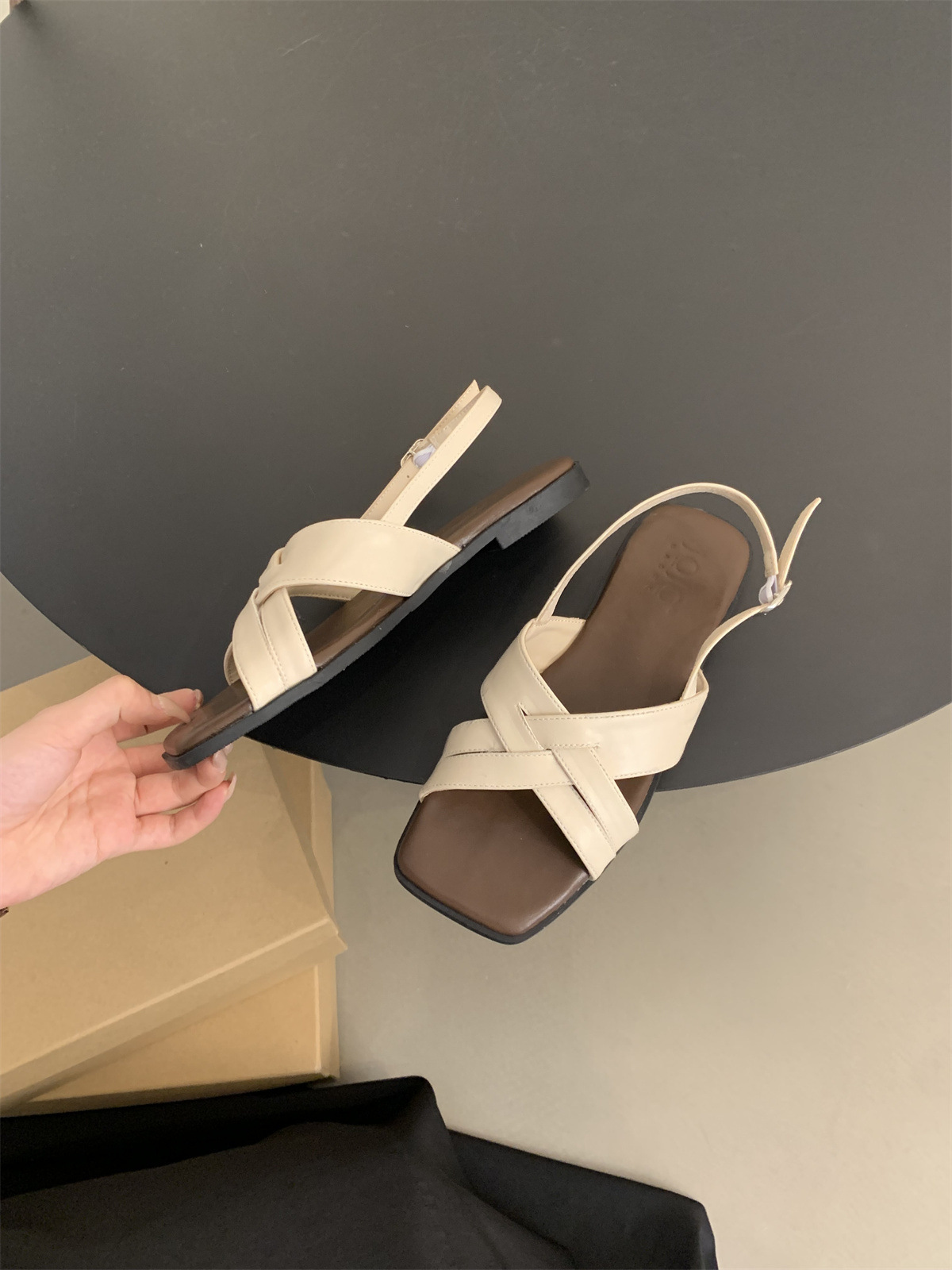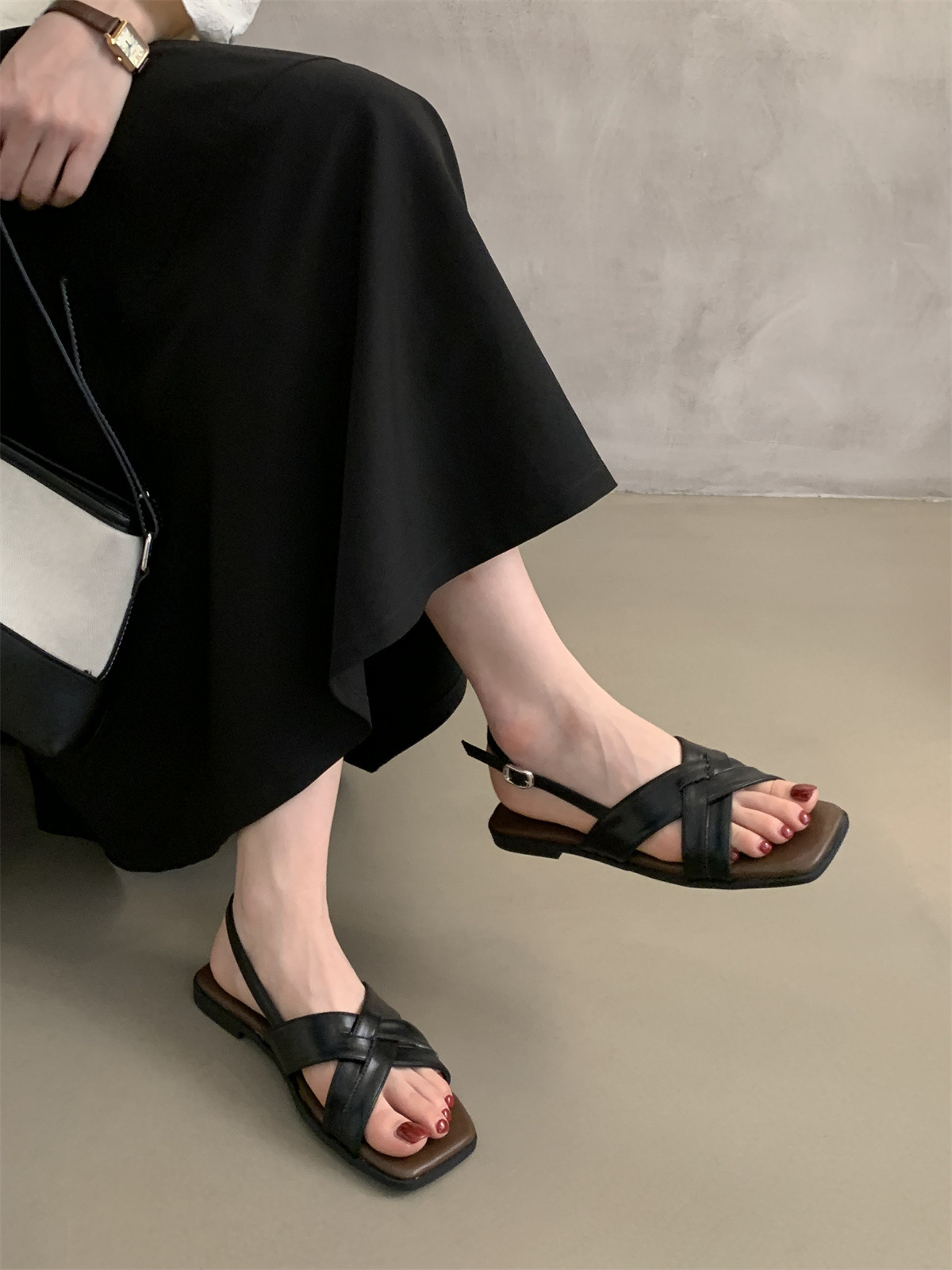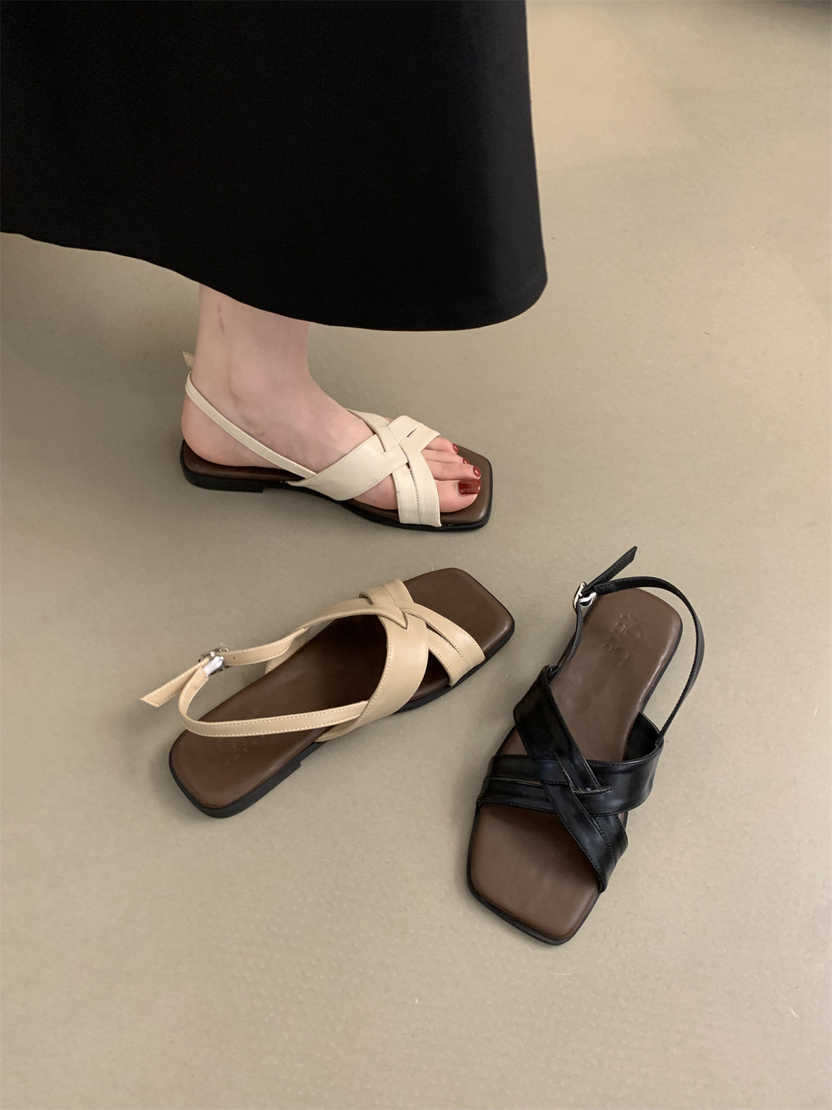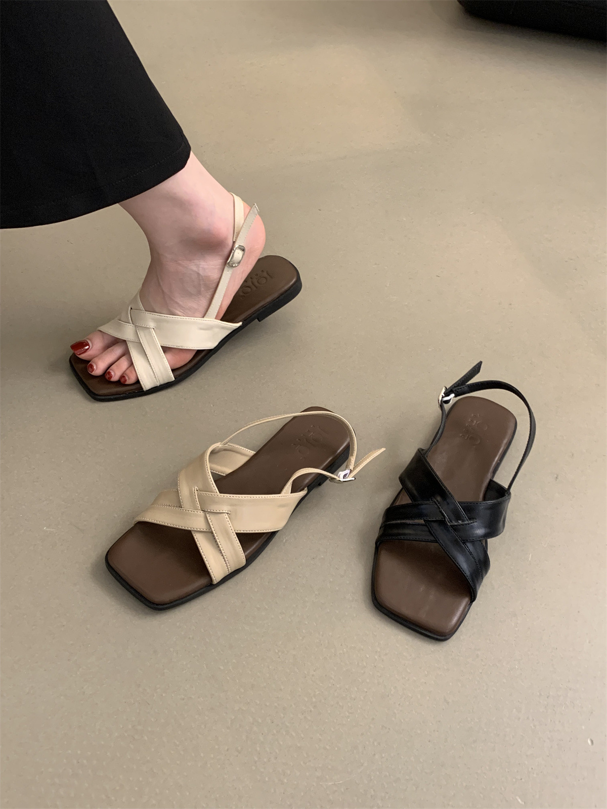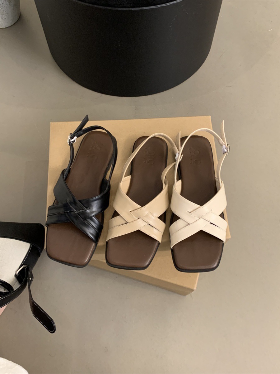 34 ~ 45 여성용 대형 로마 샌들 여름 겉옷 새로운 프랑스 스타일 아름다운 복고풍 요정 스타일 플랫 비치 신발