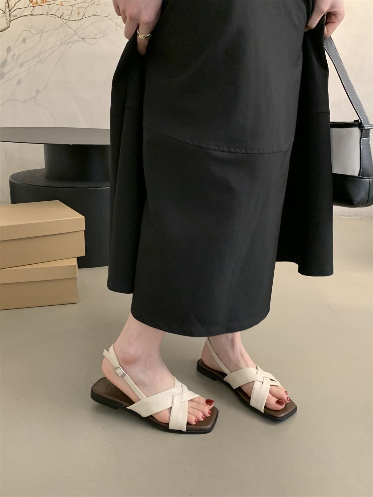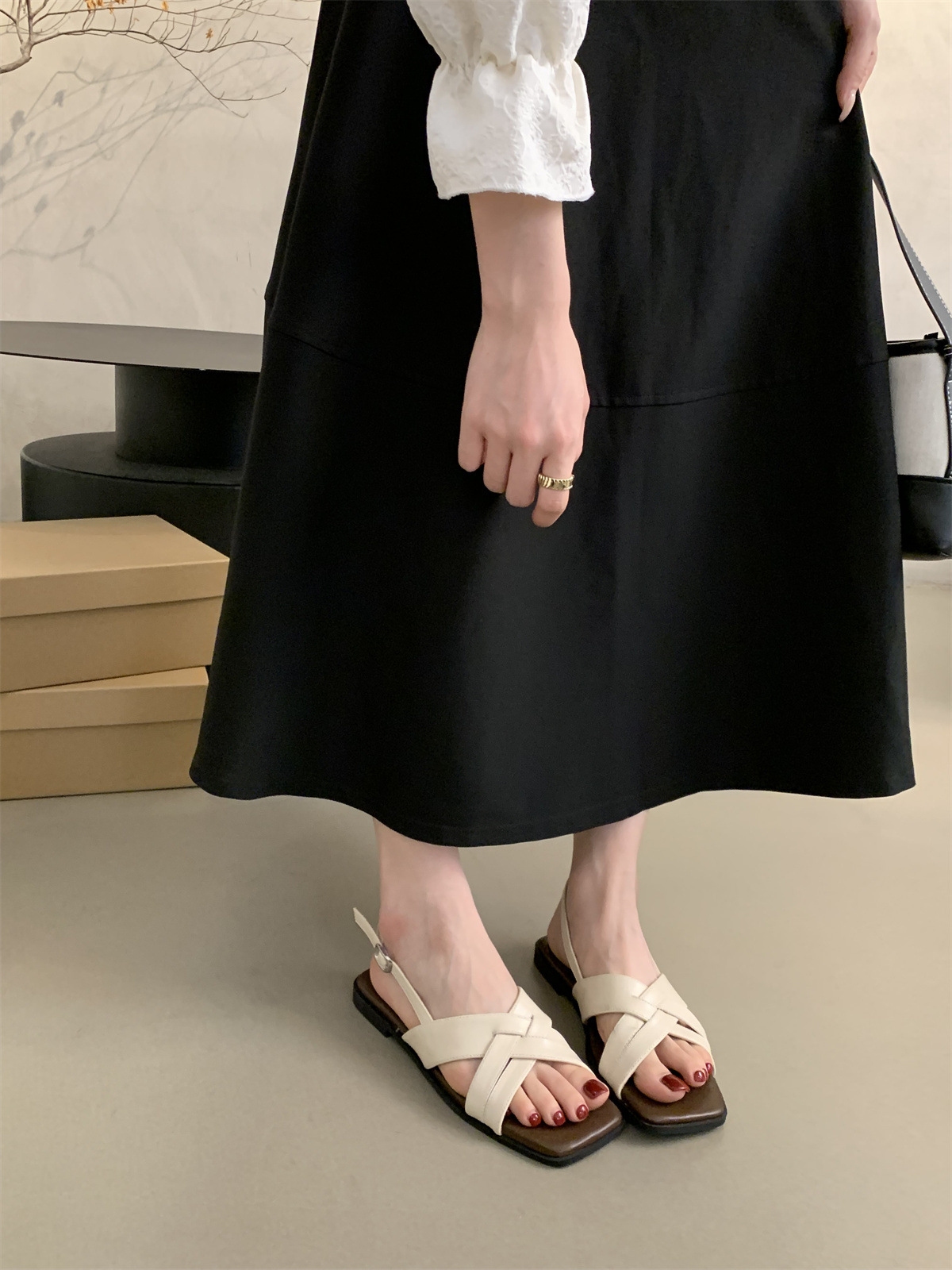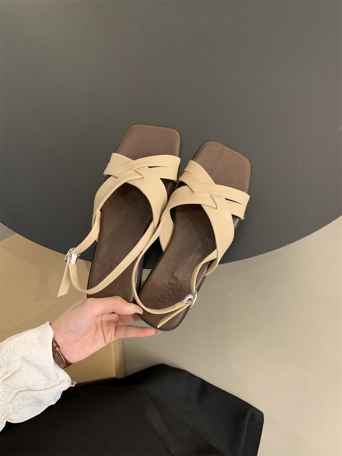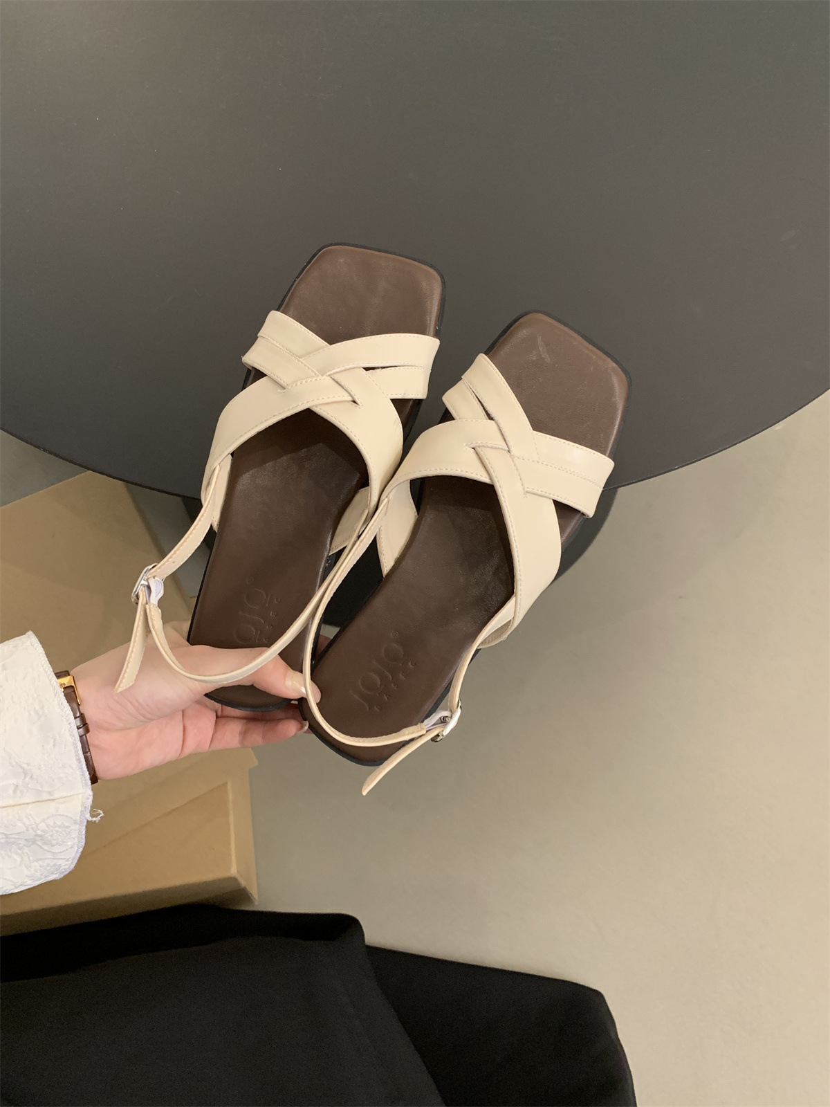 34 ~ 45 여성용 대형 로마 샌들 여름 겉옷 새로운 프랑스 스타일 아름다운 복고풍 요정 스타일 플랫 비치 신발