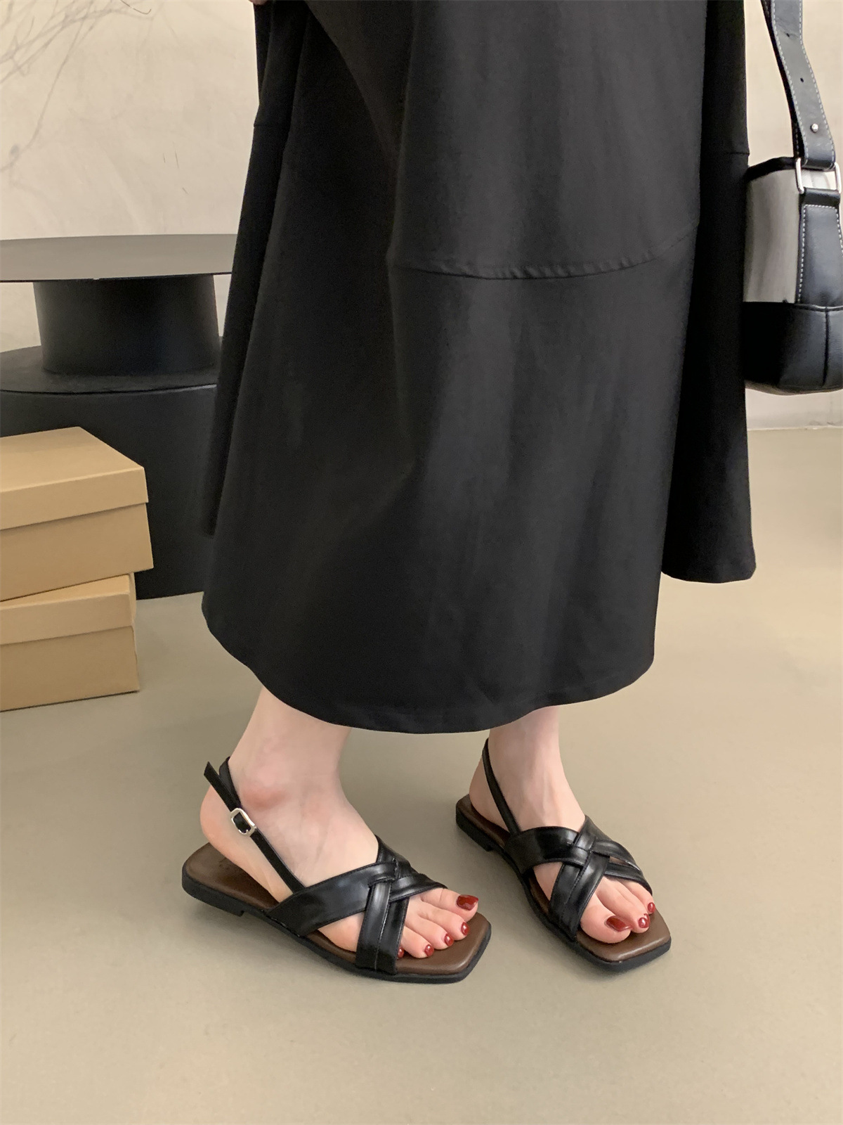 34 ~ 45 여성용 대형 로마 샌들 여름 겉옷 새로운 프랑스 스타일 아름다운 복고풍 요정 스타일 플랫 비치 신발스토어 가기