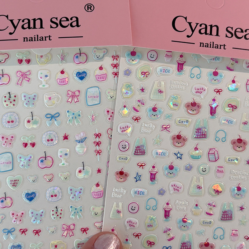 입체적인 양각 네일 아트 스티커 인 핫 스타일 쉘 레이저 한국 네일 스티커 나비 곰 쥬얼리 스티커스토어 가기
