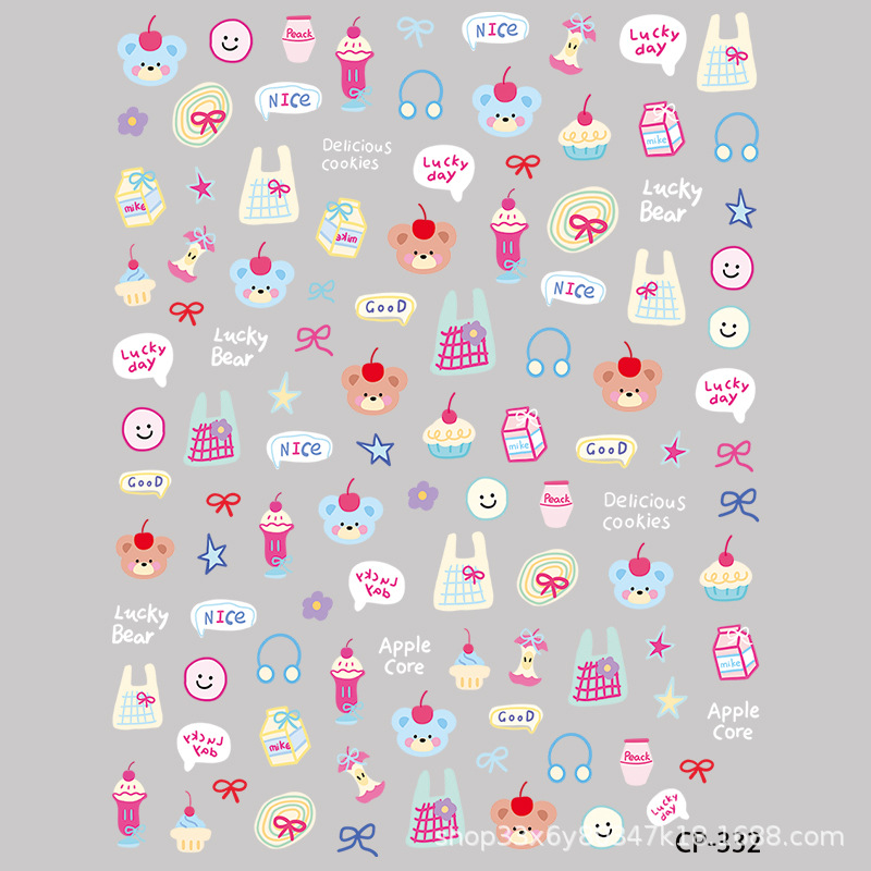 입체적인 양각 네일 아트 스티커 인 핫 스타일 쉘 레이저 한국 네일 스티커 나비 곰 쥬얼리 스티커