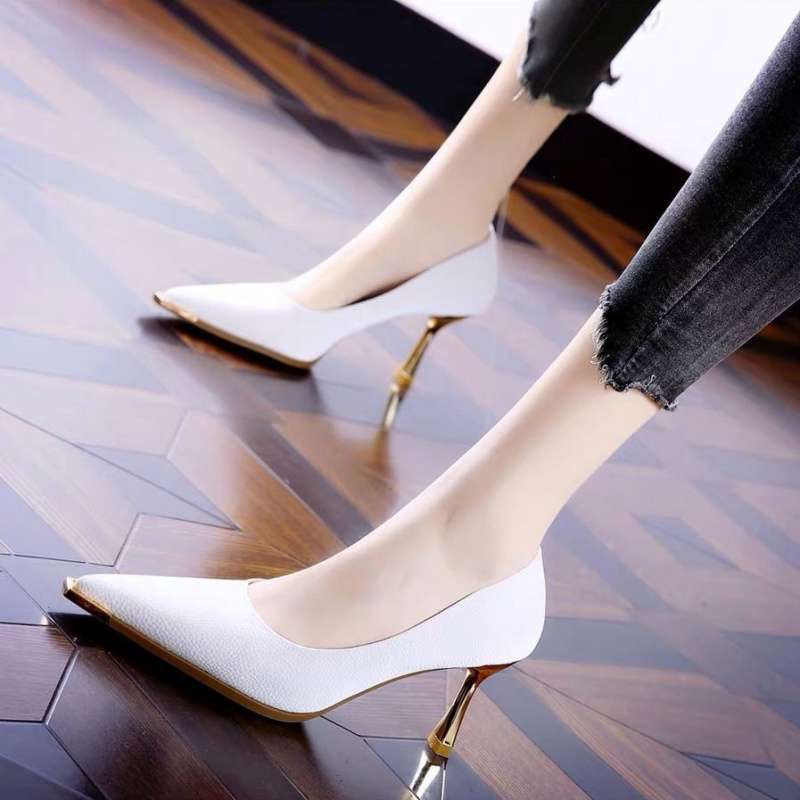 2025년 가을 여성을 위한 프렌치 화이트 하이힐 새로운 하이엔드 디자인 틈새 금속 뾰족한 섹시한 스틸레토 힐스토어 가기