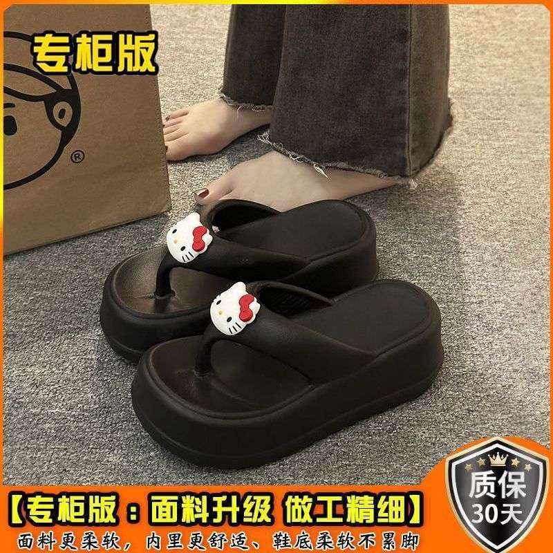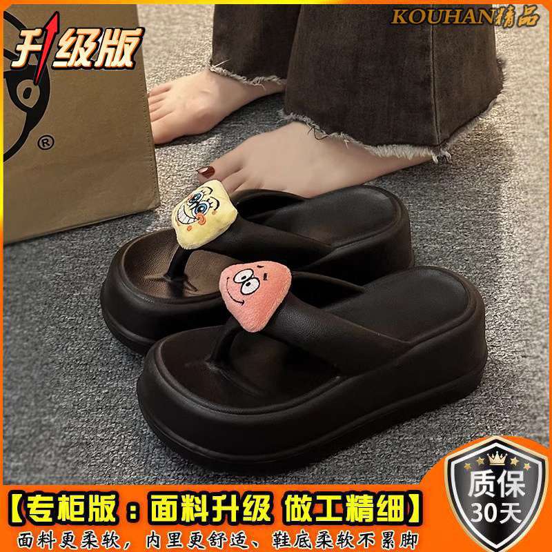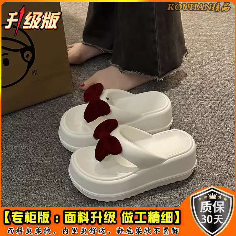 Nai Huhu 샌들 및 슬리퍼 여성용 여름 아우터웨어 2025 새로운 달콤한 귀여운 활 두꺼운 밑창 높이 증가 플립 플롭스토어 가기