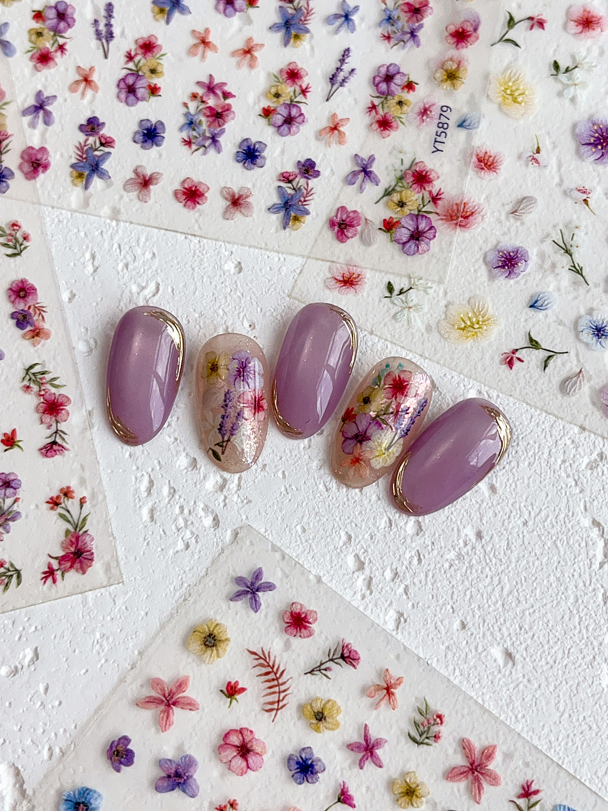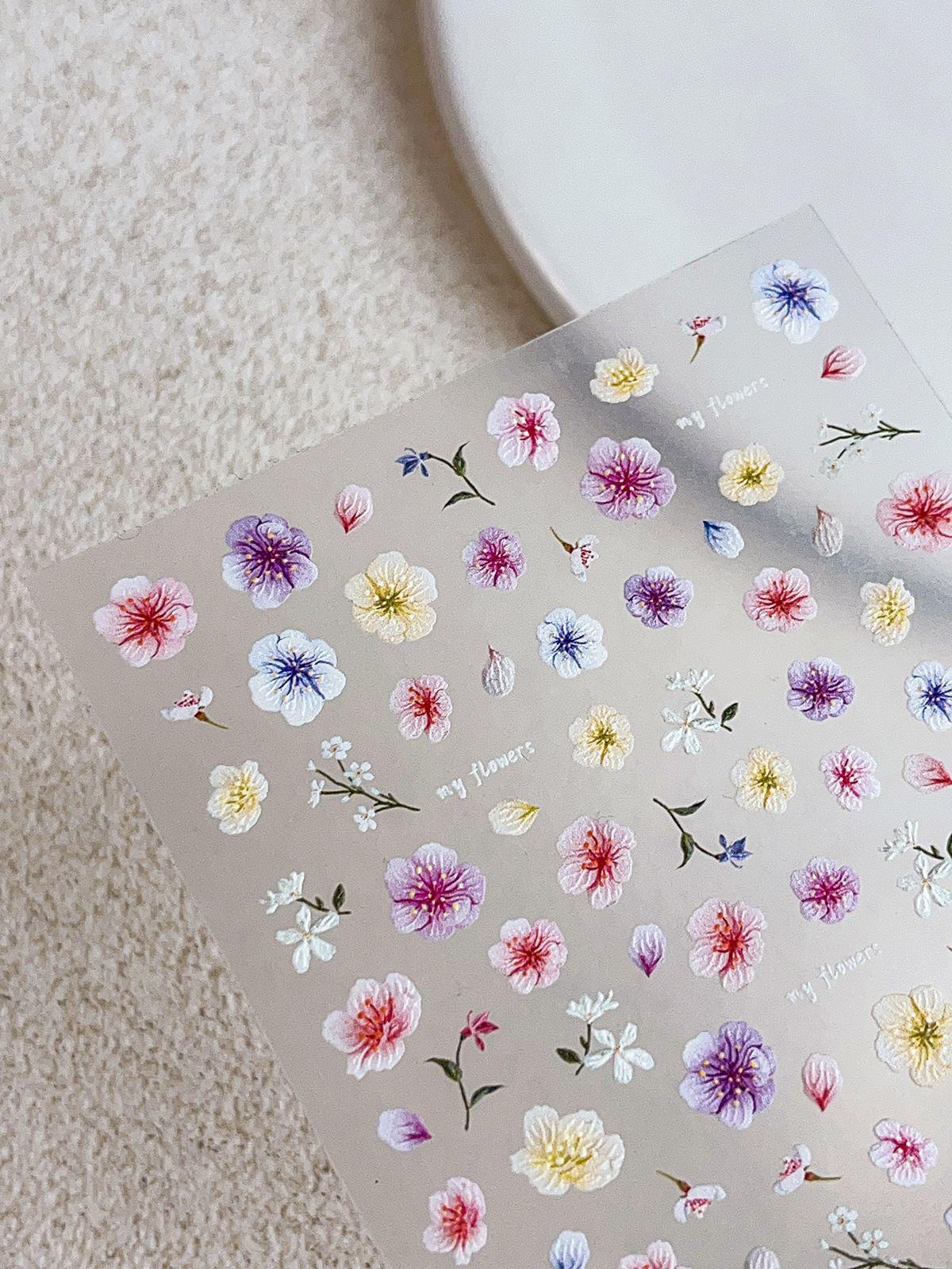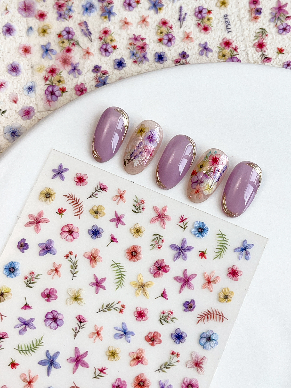 YITU 개미 그림 양각 꽃 네일 아트 스티커 다채로운 간단한 귀여운 꽃 달콤한 장식 스티커 YT5877스토어 가기