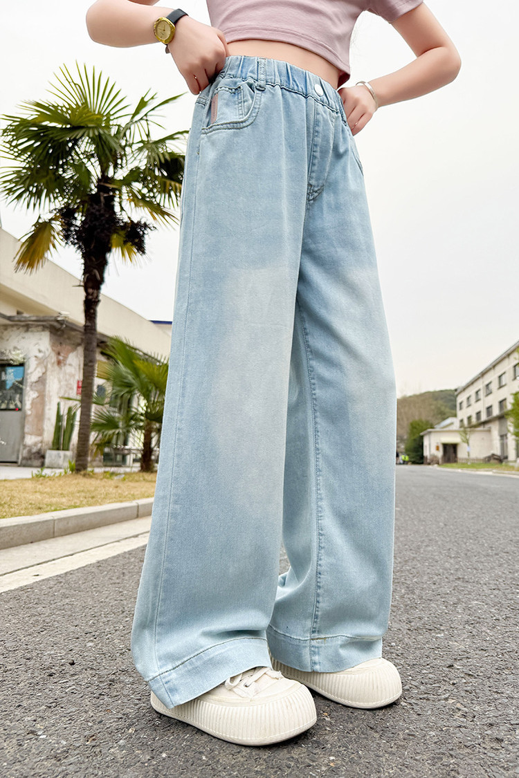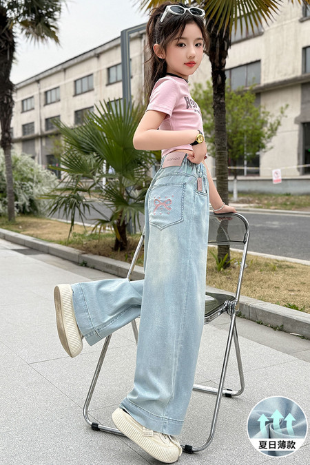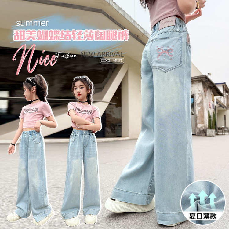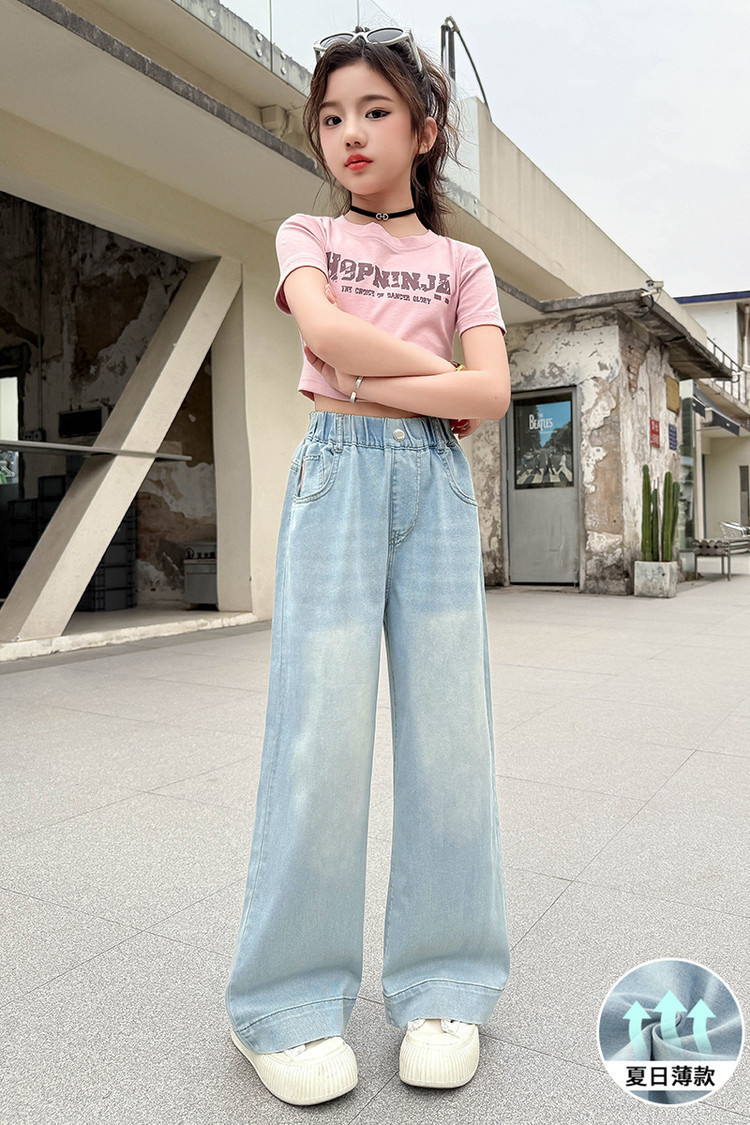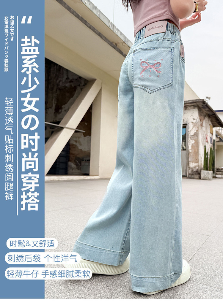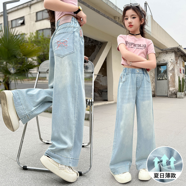 중다 여자 텐셀 청바지 여름 얇은 2025 새로운 넓은 다리 바지 서양식 슬리밍 바지스토어 가기