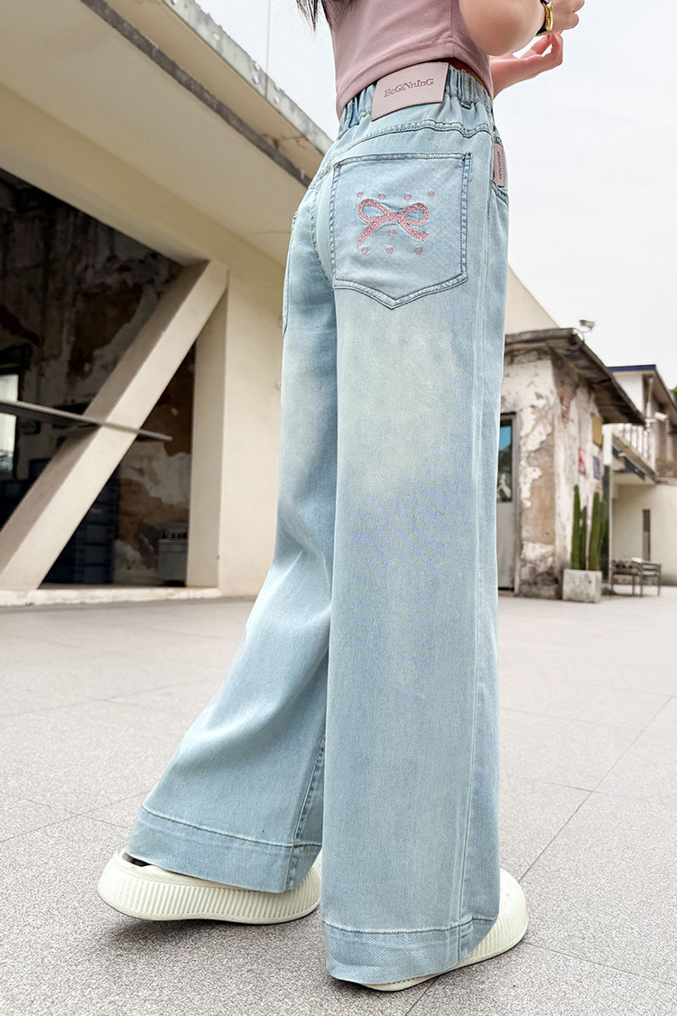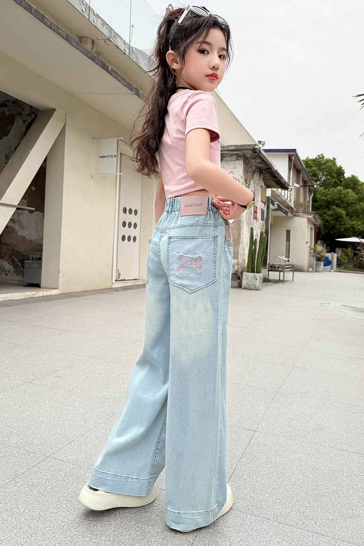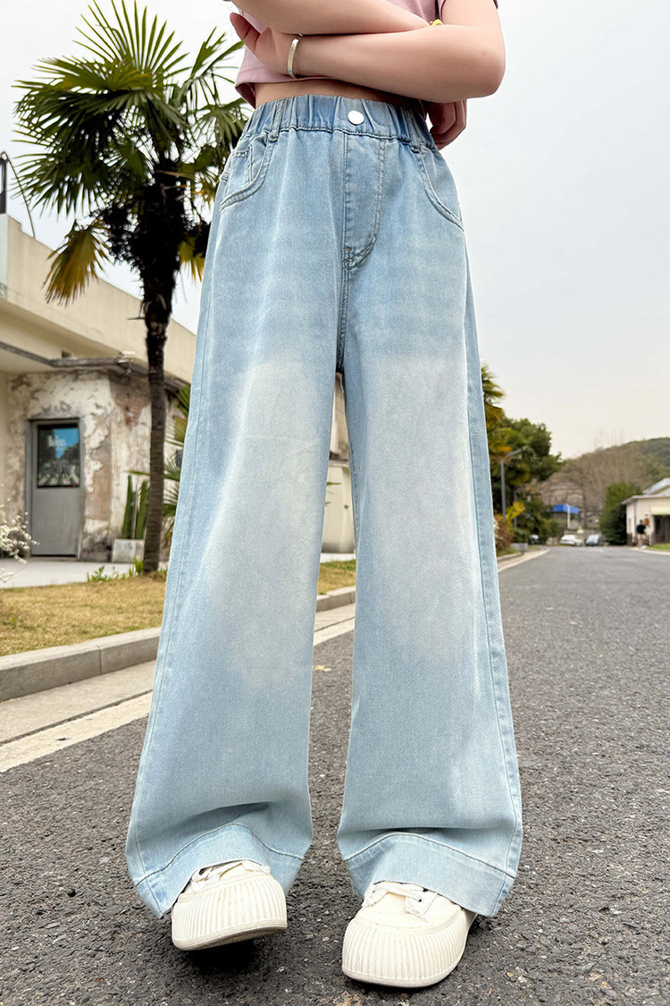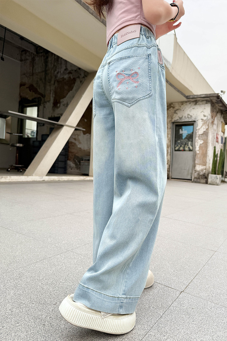 중다 여자 텐셀 청바지 여름 얇은 2025 새로운 넓은 다리 바지 서양식 슬리밍 바지스토어 가기