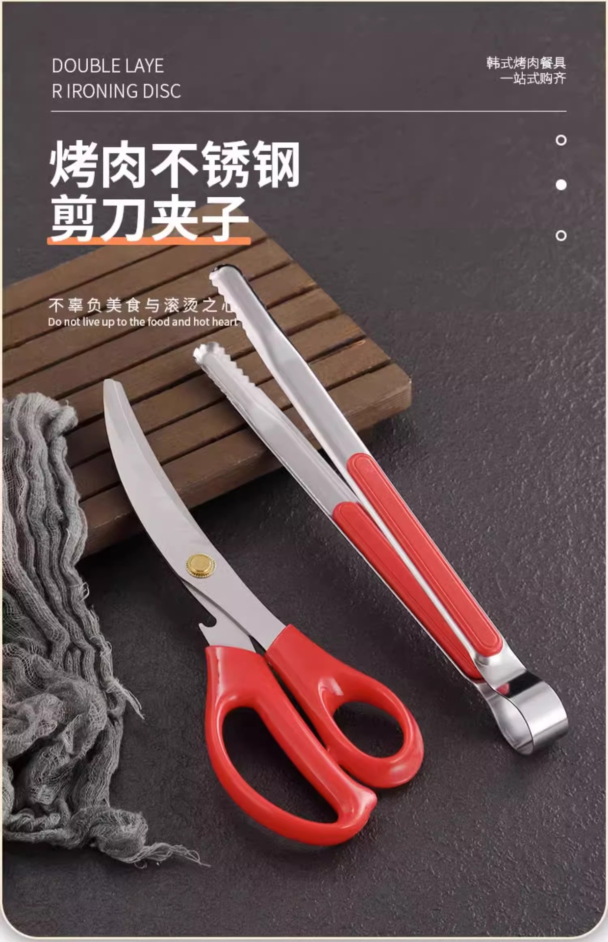 가정용 바베큐 클립 한국식 스테인레스 스틸 가위 세트 실리콘 오일 브러시 3 피스 스테이크 가위 치킨 스테이크 가위스토어 가기