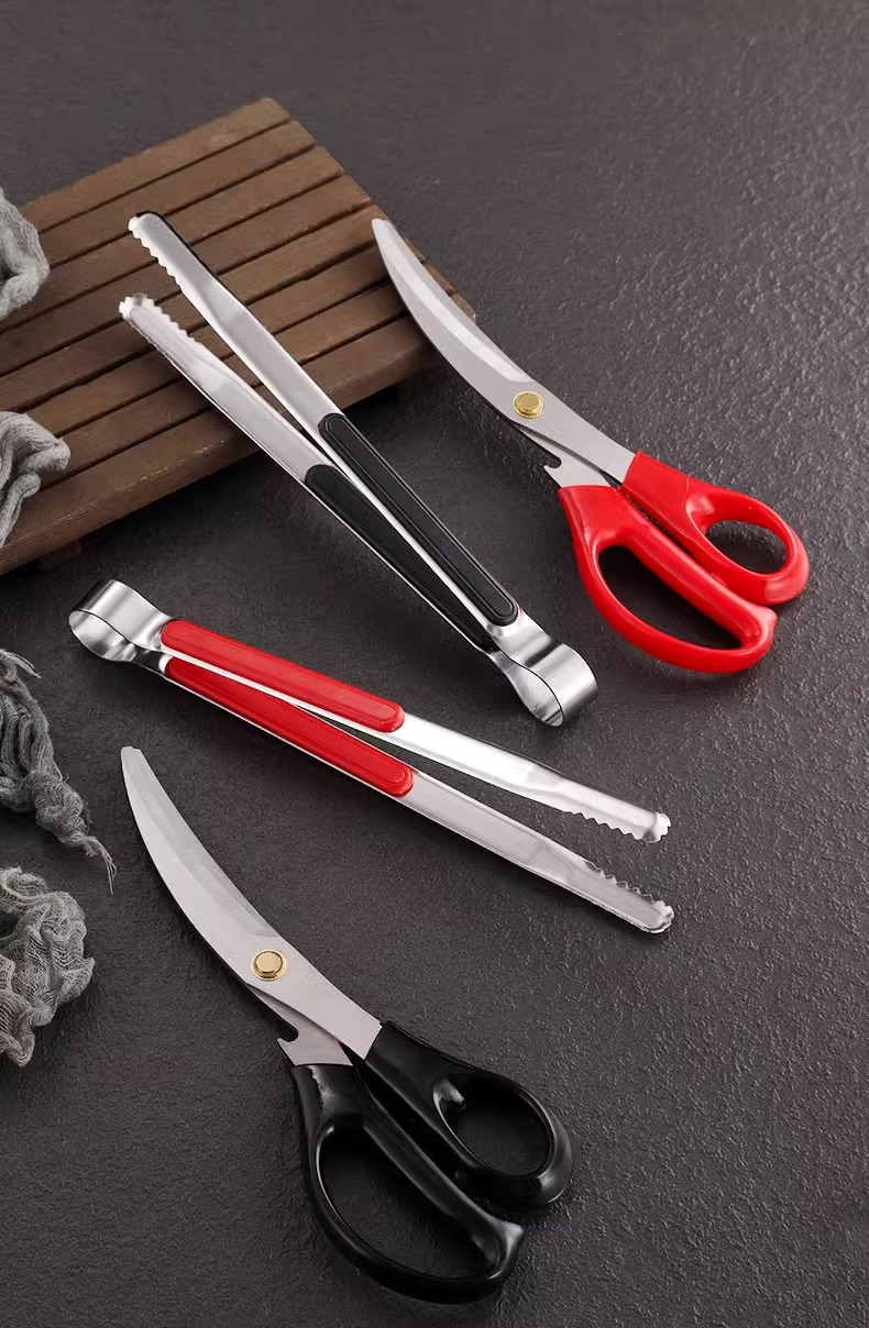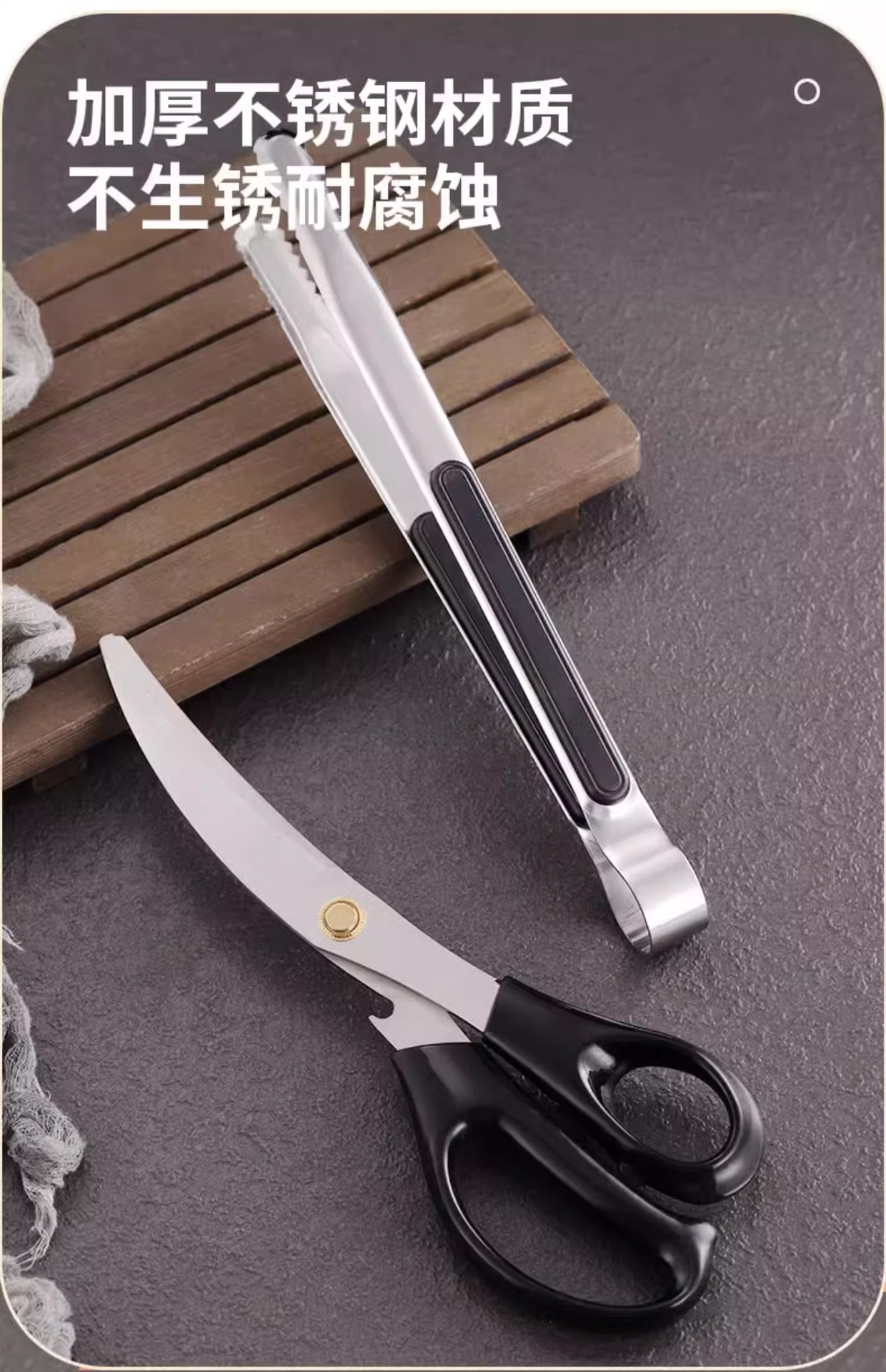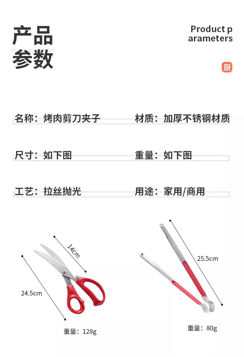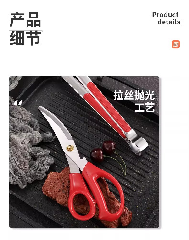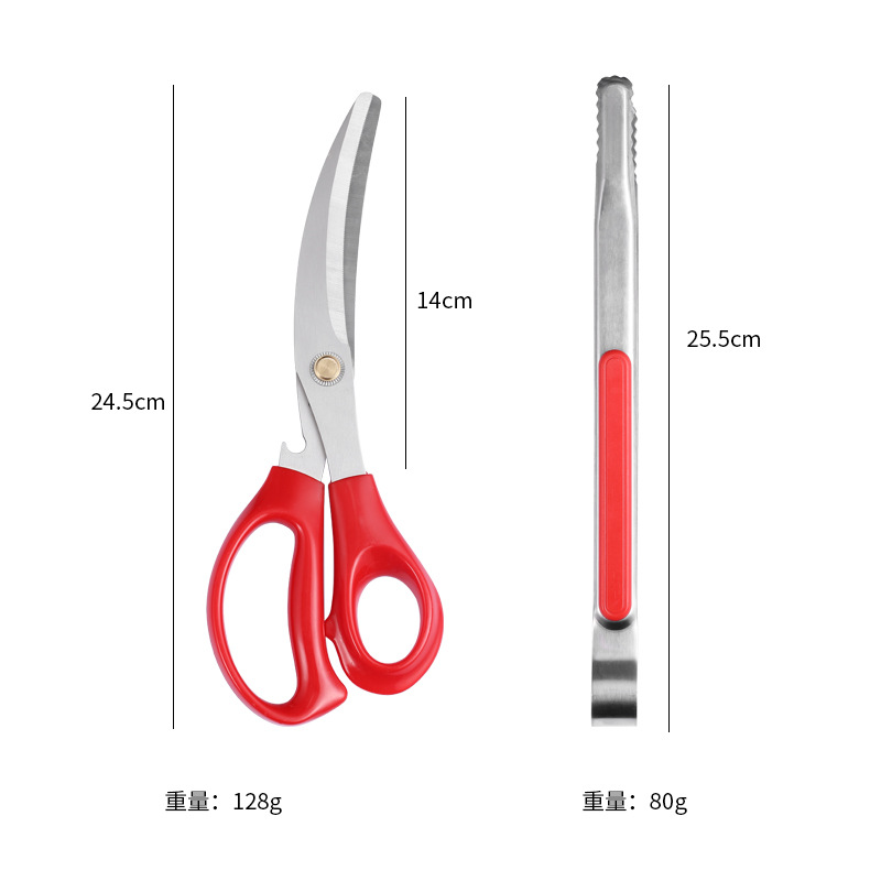 가정용 바베큐 클립 한국식 스테인레스 스틸 가위 세트 실리콘 오일 브러시 3 피스 스테이크 가위 치킨 스테이크 가위