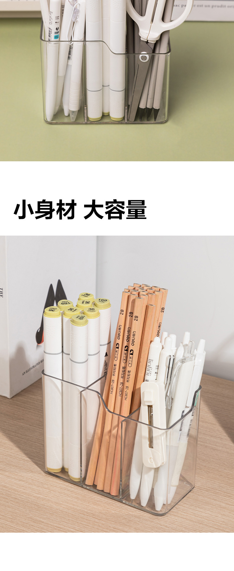 Deli PK220 투명 펜 홀더 보관함 사무실 데스크탑 학생 라이트 럭셔리 하이 엔드 3 그리드 분류 펜 홀더