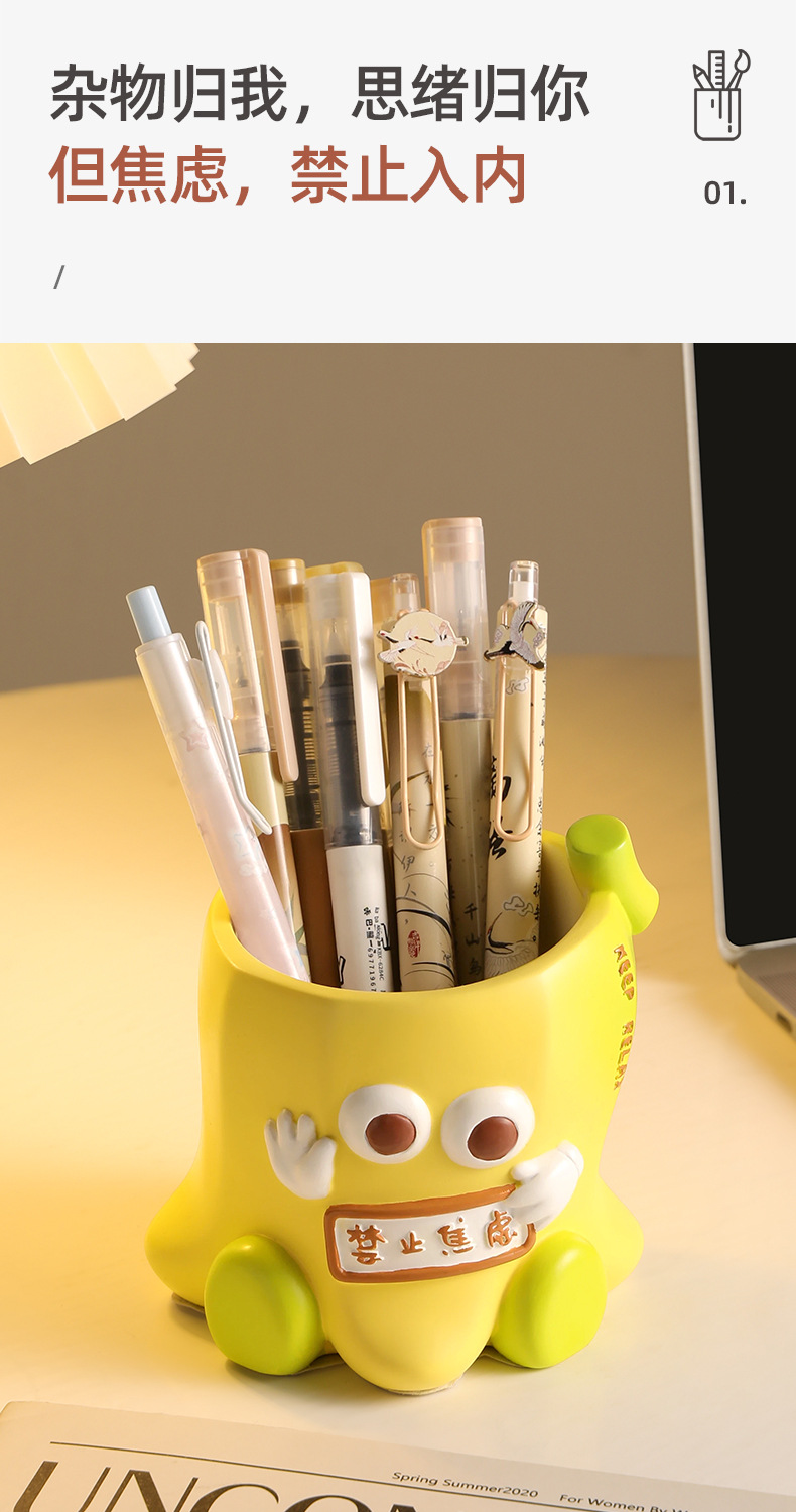 创意不焦虑笔筒学生大容量收纳盒 办公室桌面装饰摆件教师节礼物