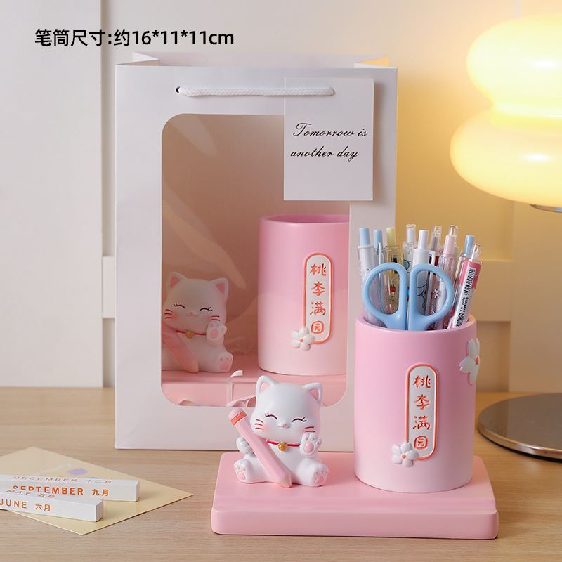 • 행운의 고양이 원형 펜 홀더 + 선물 가방