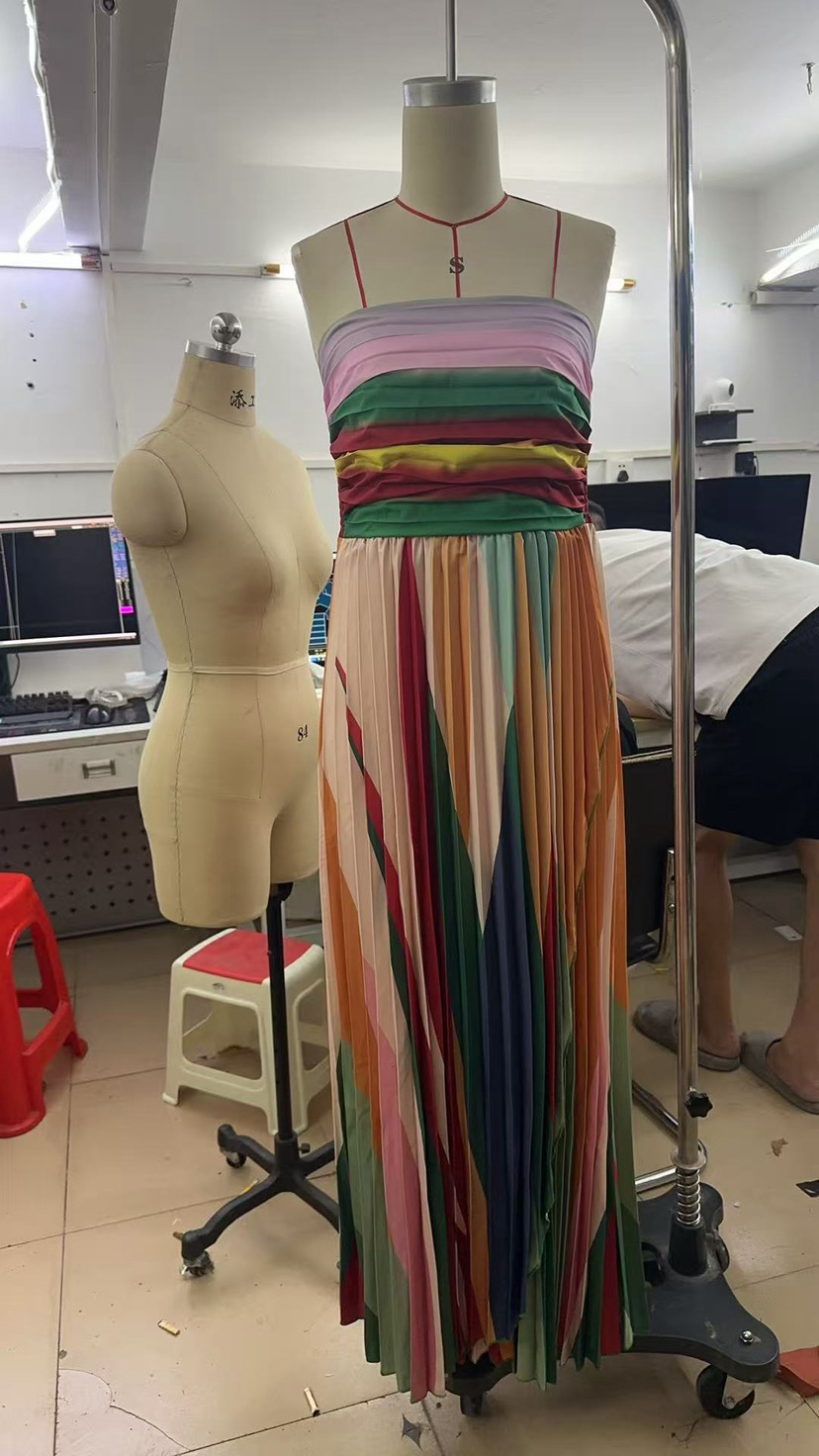 국경 간 독립 역 아마존 2025 새로운 유럽과 미국의 섹시한 튜브 탑 인쇄 높은 허리 대형 스윙 컬러 원피스