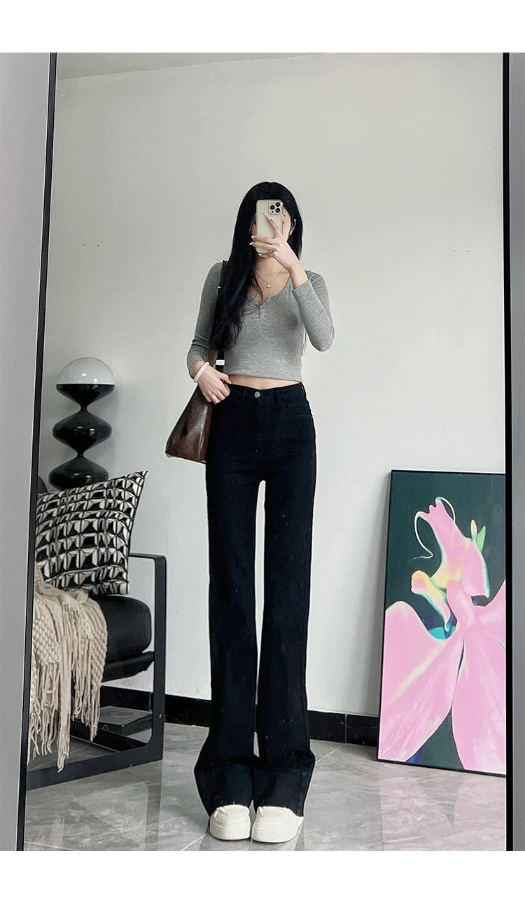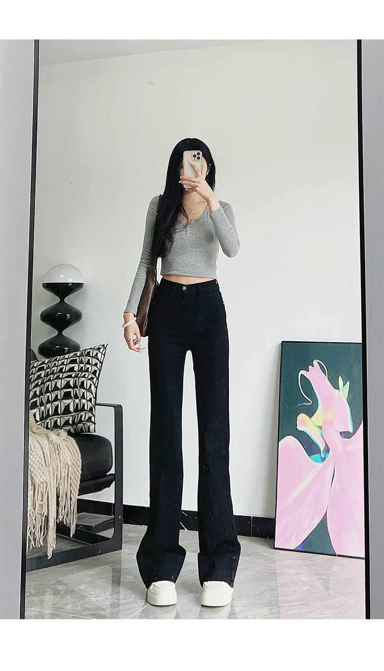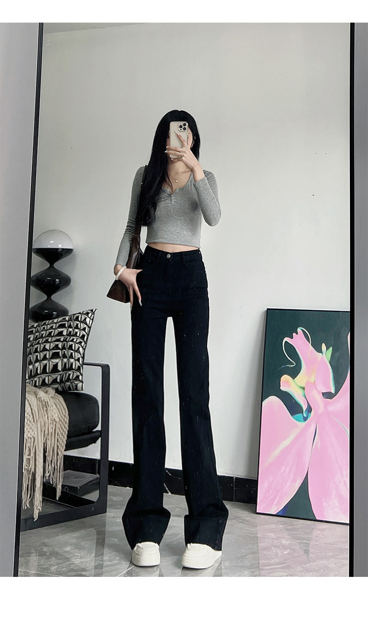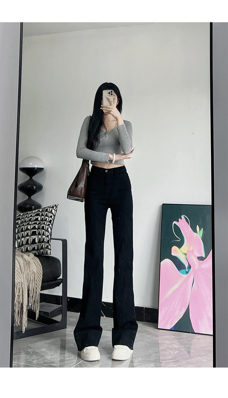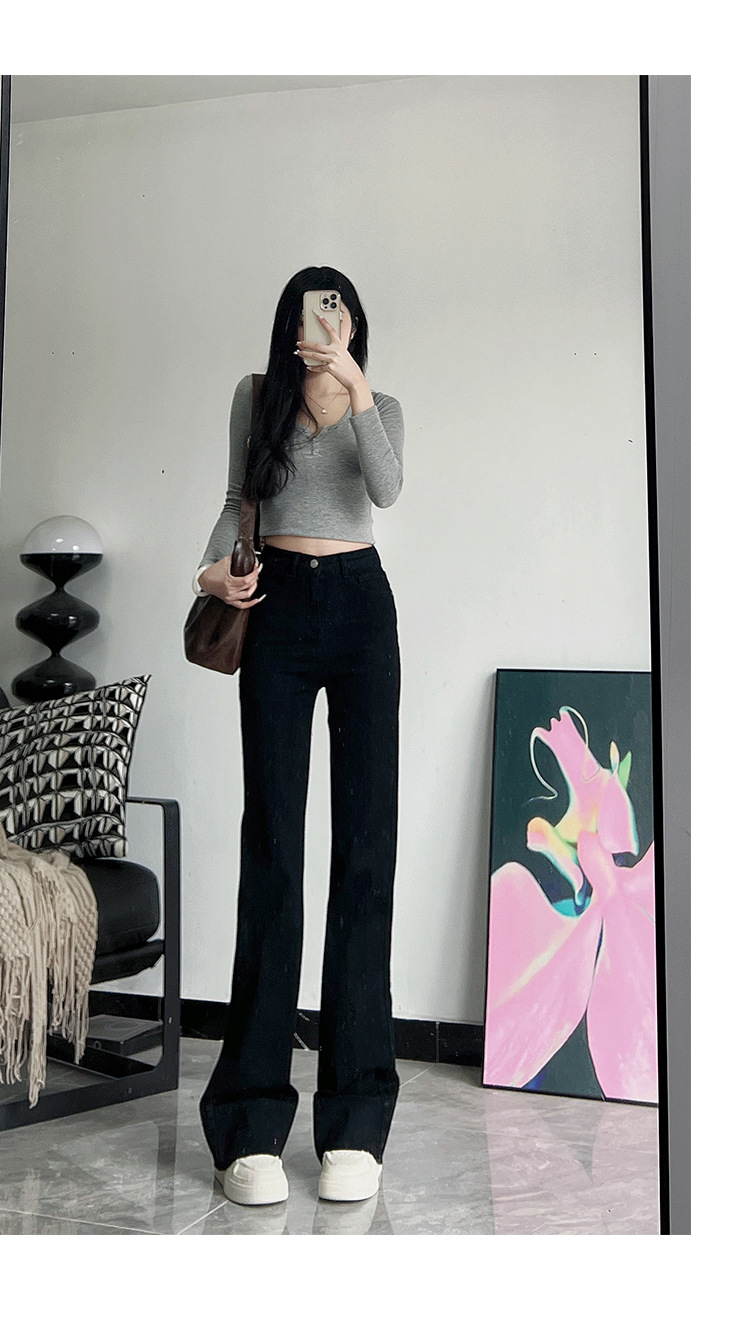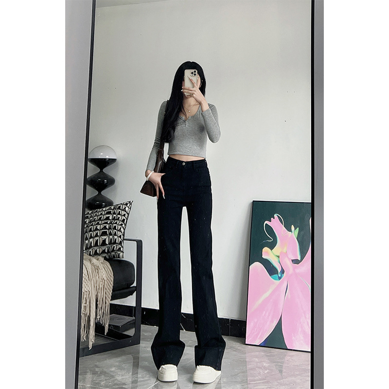 미국식 블랙 하이웨이스트 신축성 있는 부츠컷 청바지 여성용 키높이 슬림핏 다용도 롱 팬츠스토어 가기