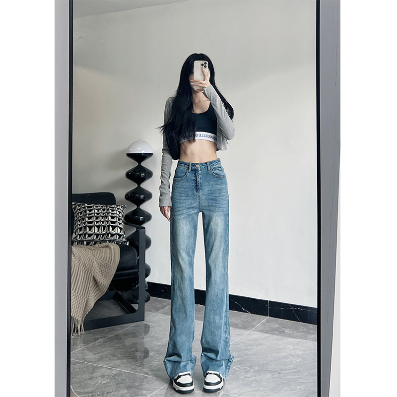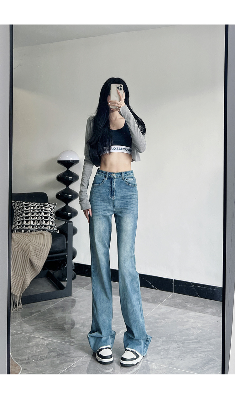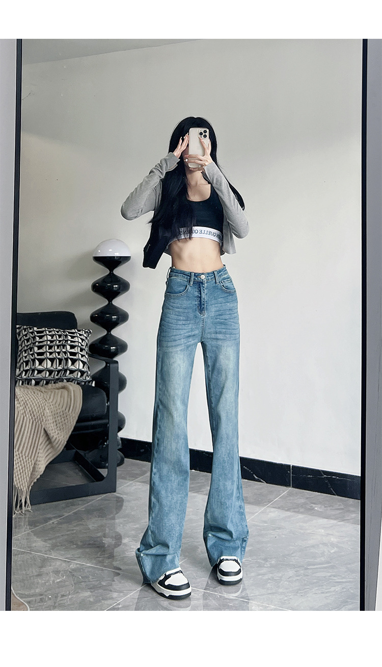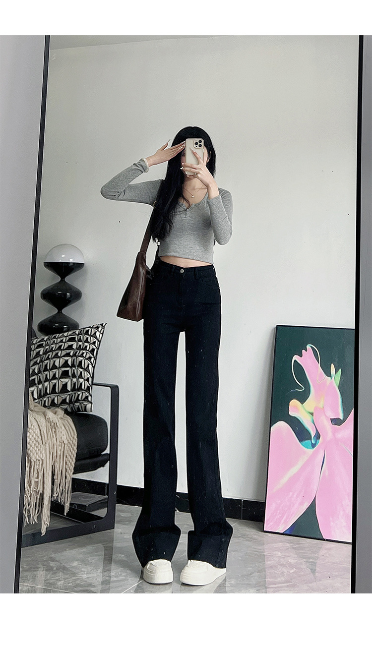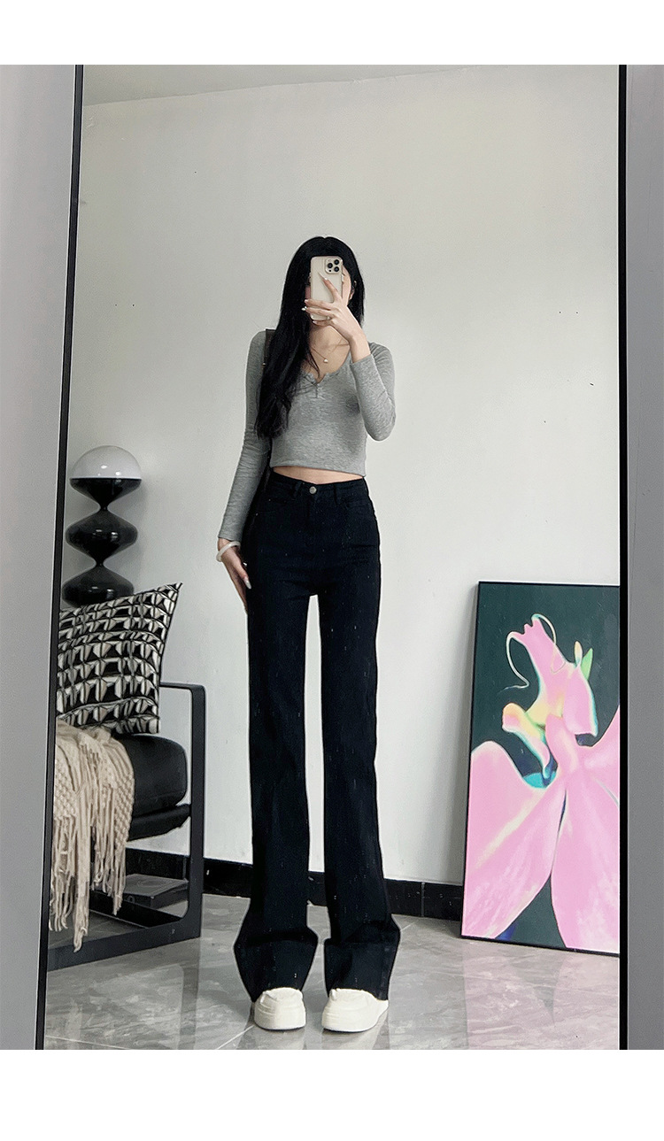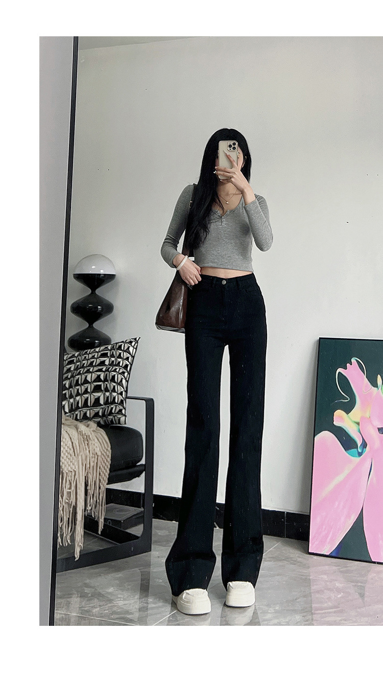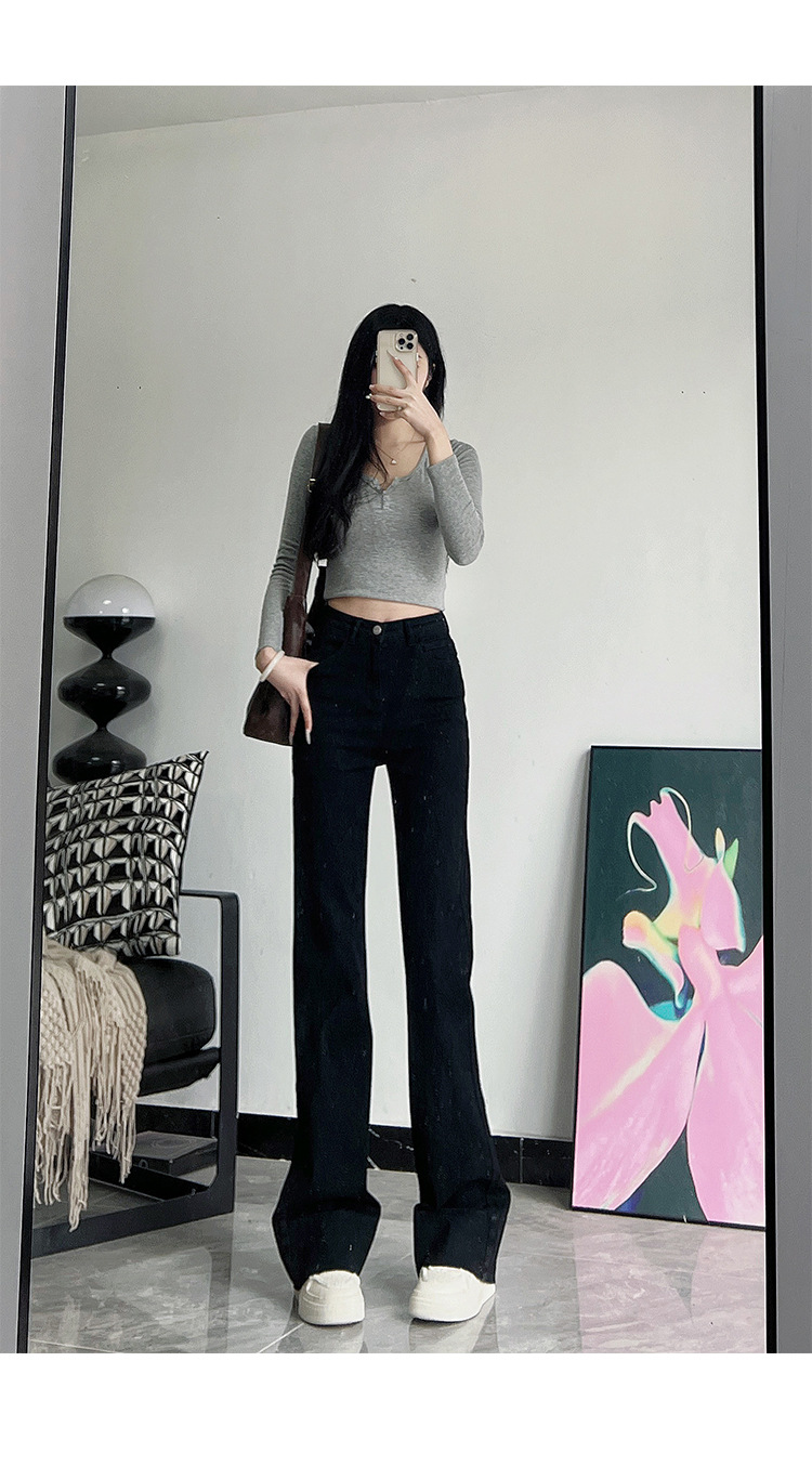 미국식 블랙 하이웨이스트 신축성 있는 부츠컷 청바지 여성용 키높이 슬림핏 다용도 롱 팬츠스토어 가기