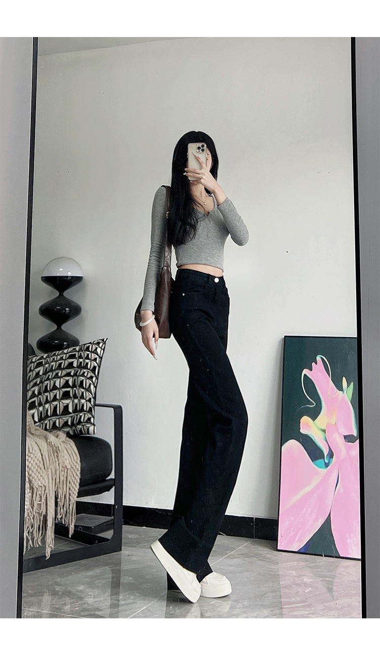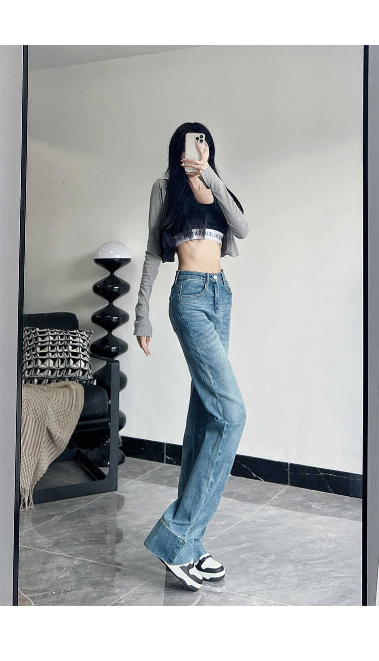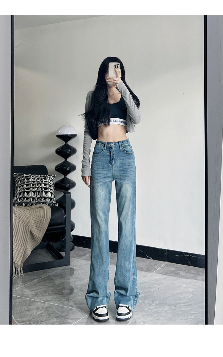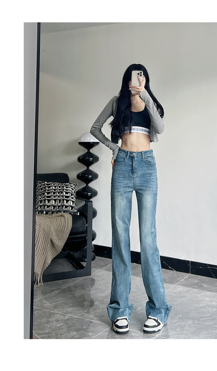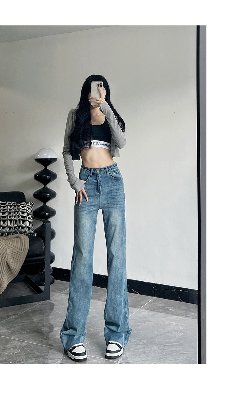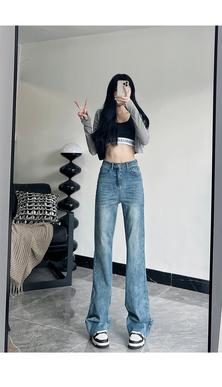 미국식 블랙 하이웨이스트 신축성 있는 부츠컷 청바지 여성용 키높이 슬림핏 다용도 롱 팬츠스토어 가기