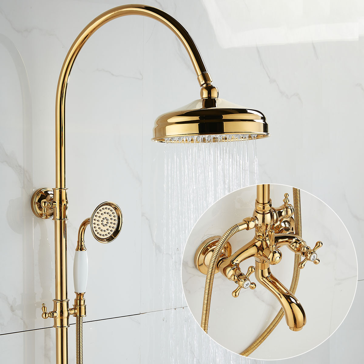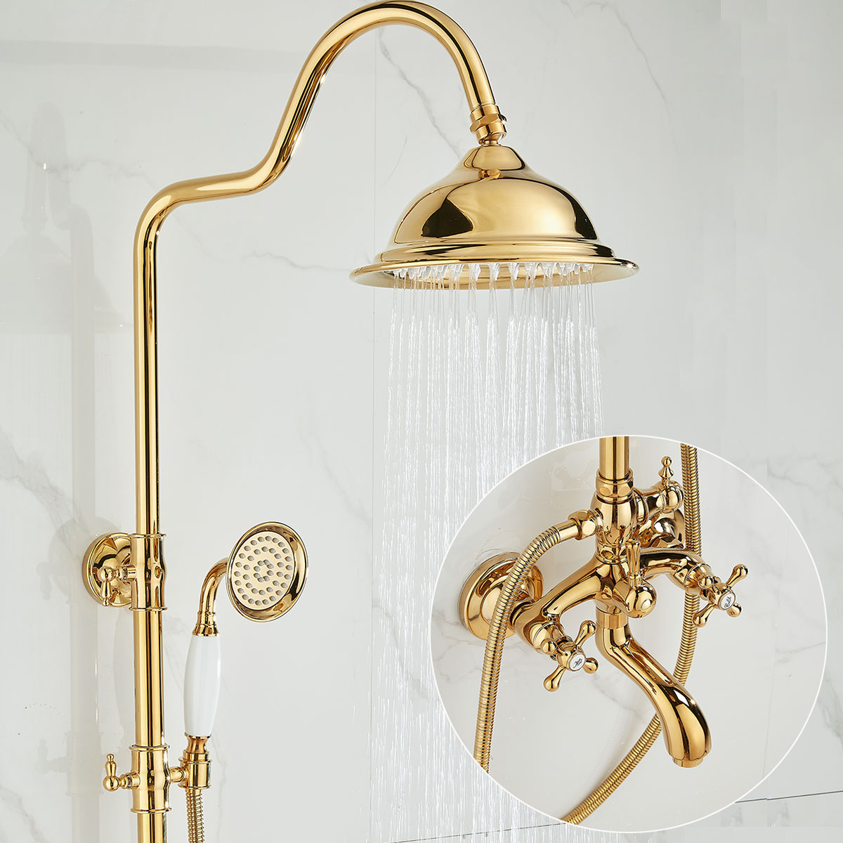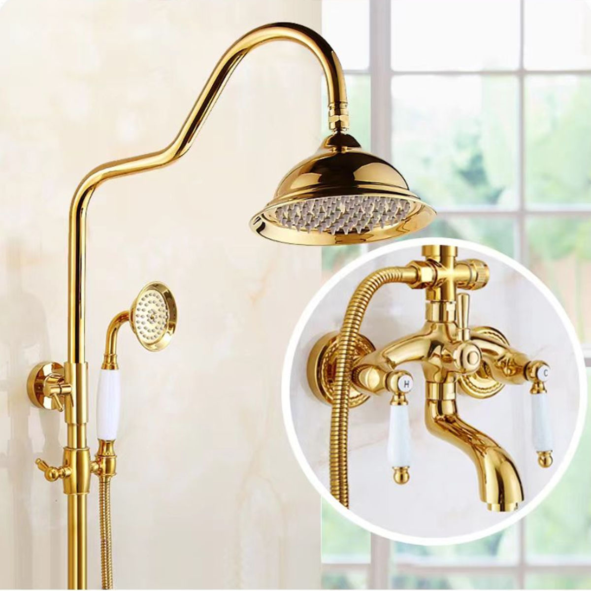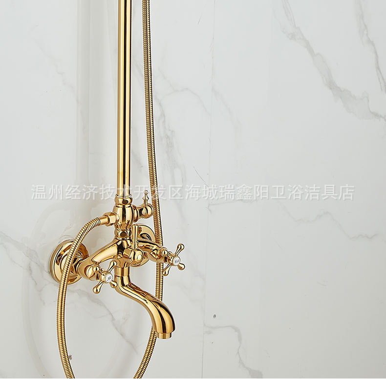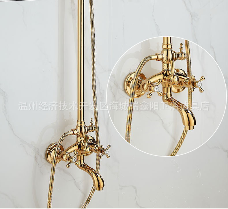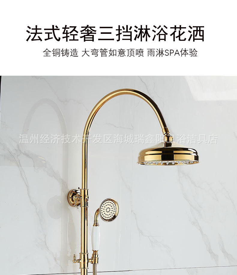 프랑스 복고풍 샤워 세트 전체 구리 황금 욕실 샤워 헤드 가압 가정용 욕실 유럽 스타일의 가벼운 럭셔리스토어 가기