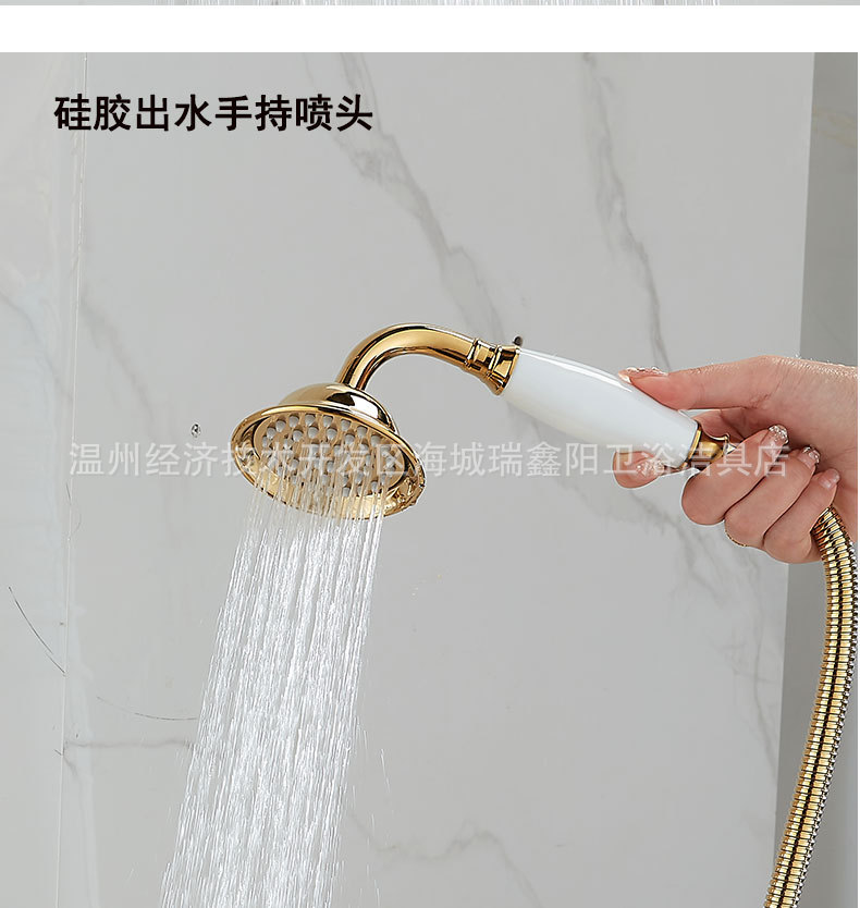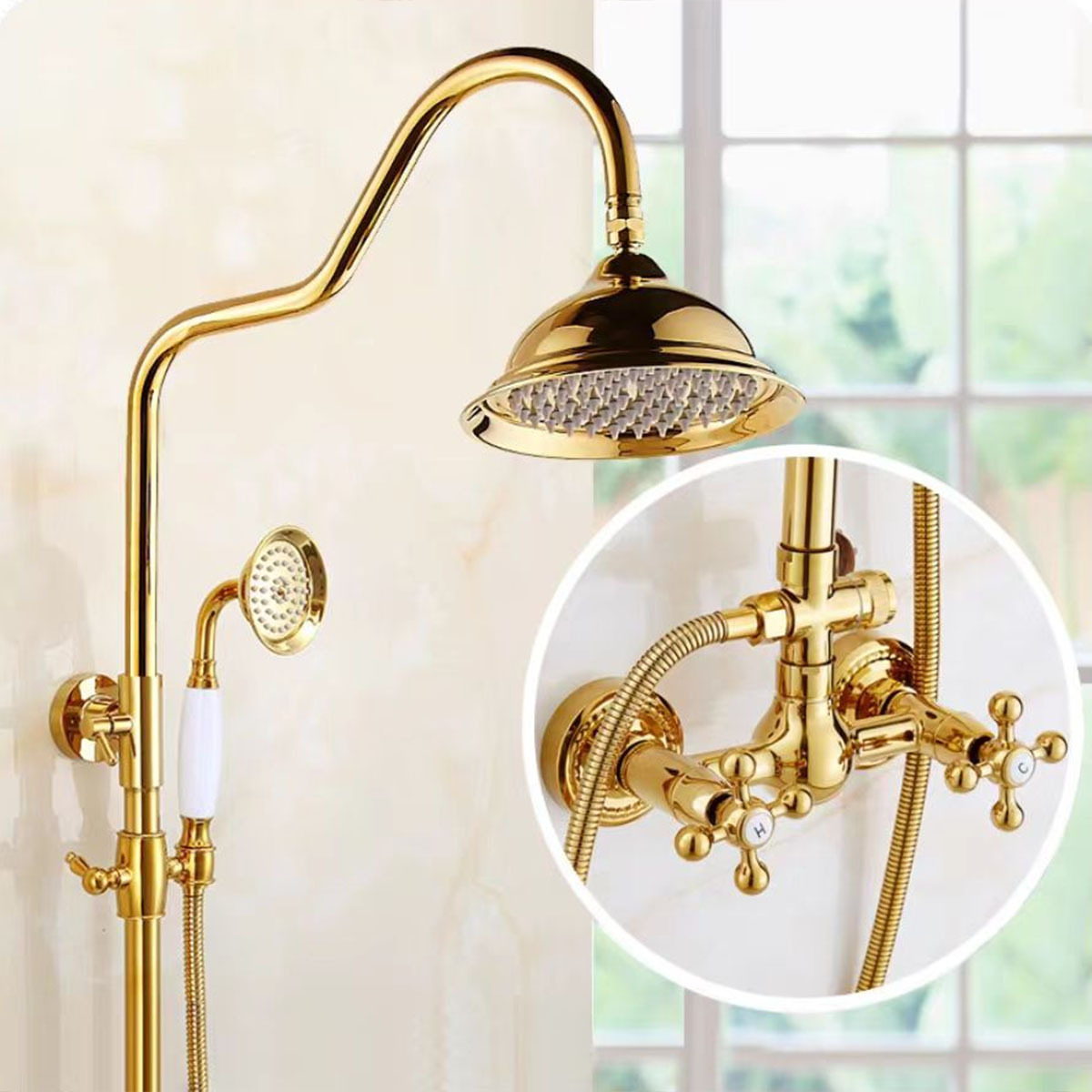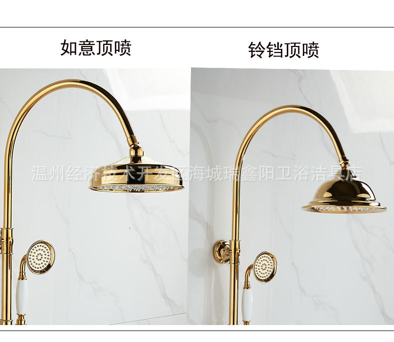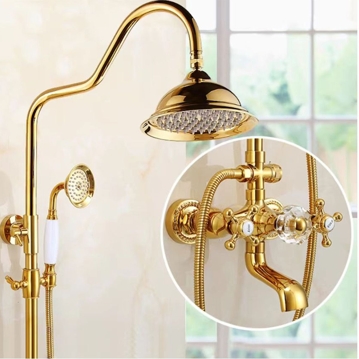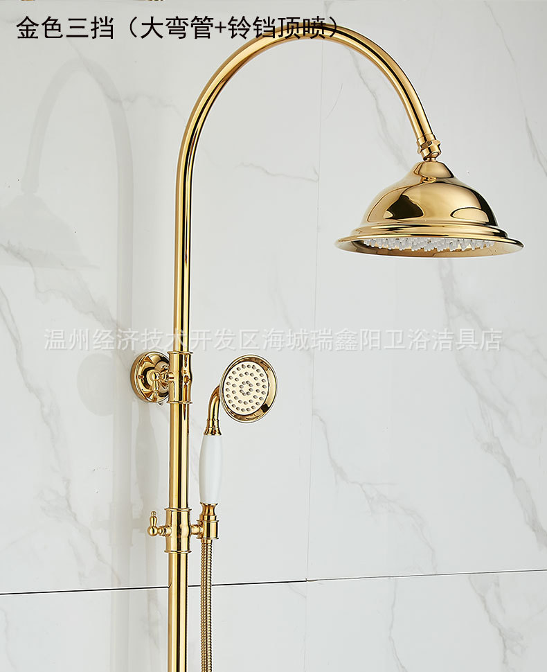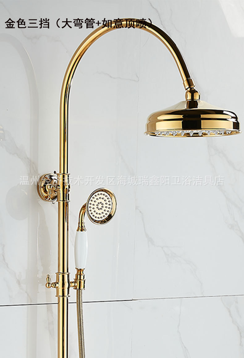 프랑스 복고풍 샤워 세트 전체 구리 황금 욕실 샤워 헤드 가압 가정용 욕실 유럽 스타일의 가벼운 럭셔리