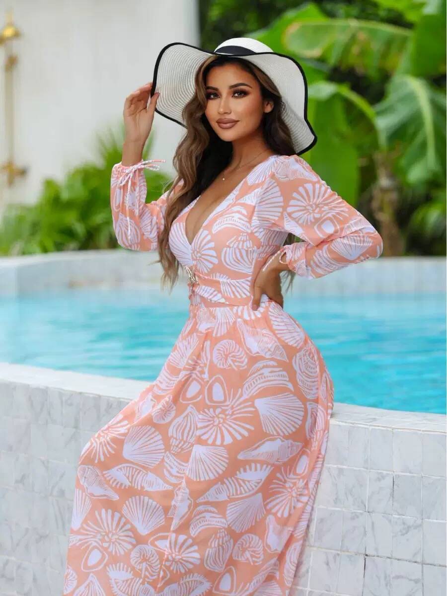 유로 랩 스커트 티 브레이크 프렌치 슬림핏 꽃무늬 해변 휴가 원피스 드레스 여름 여성용 롱 스커트