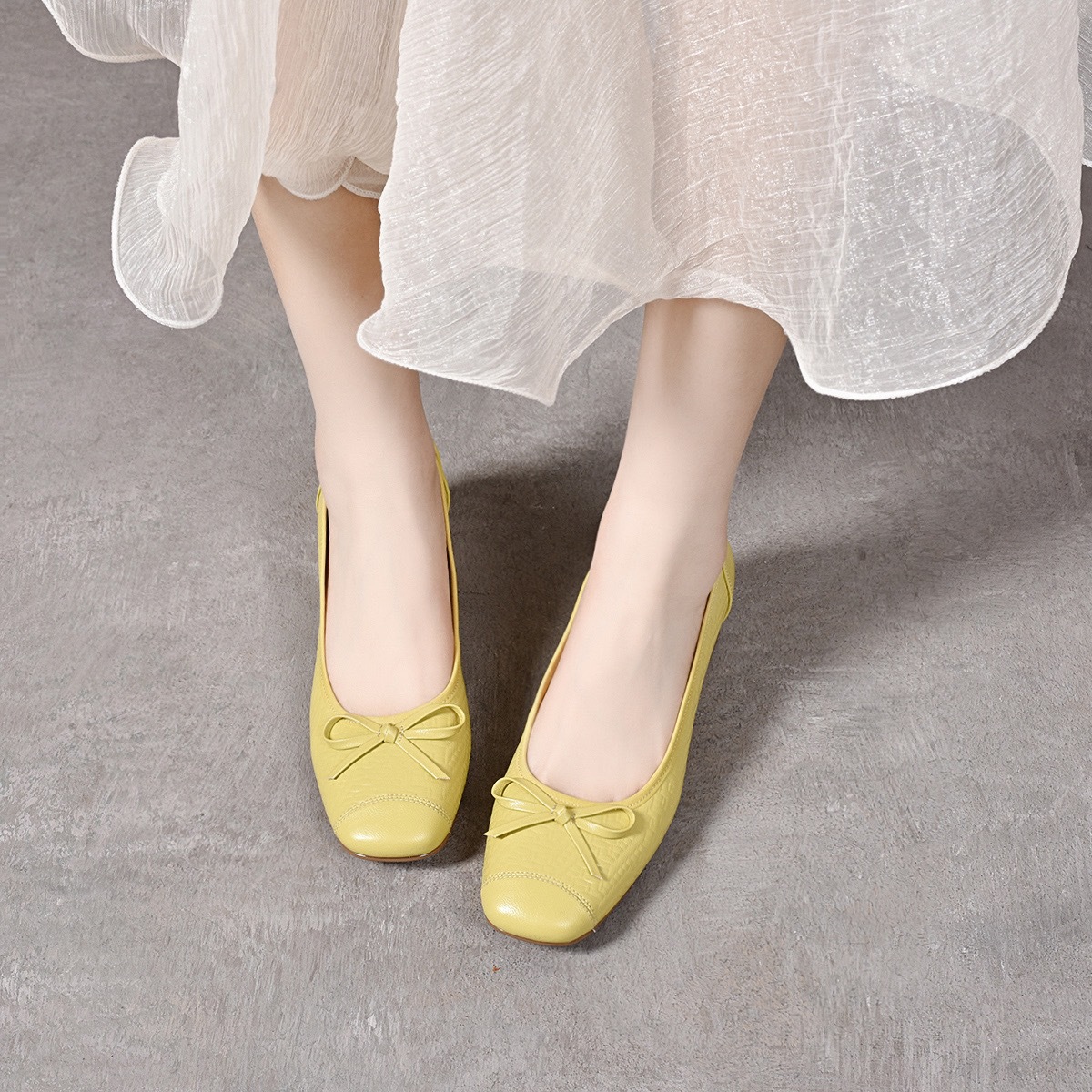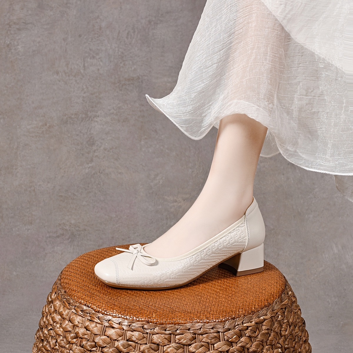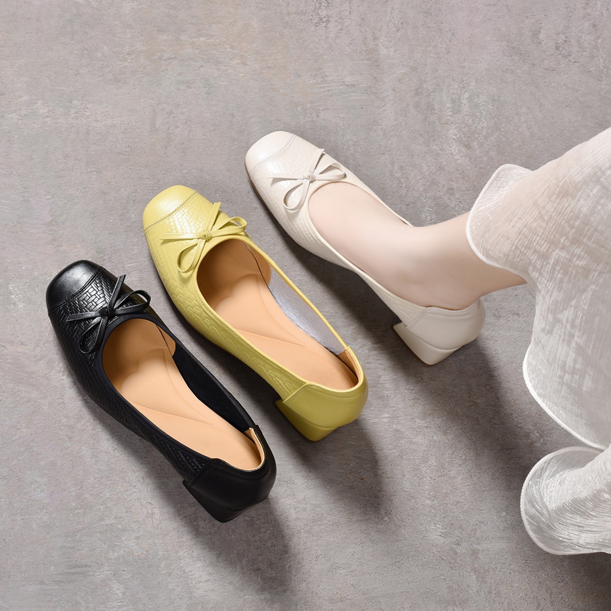 피곤하지 않은 슈퍼 소프트 송아지 가죽 신발 2025 봄과 여름 새로운 프랑스 라운드 발가락 플랫 발레 슈즈 두꺼운 발 뒤꿈치 여성용 신발스토어 가기