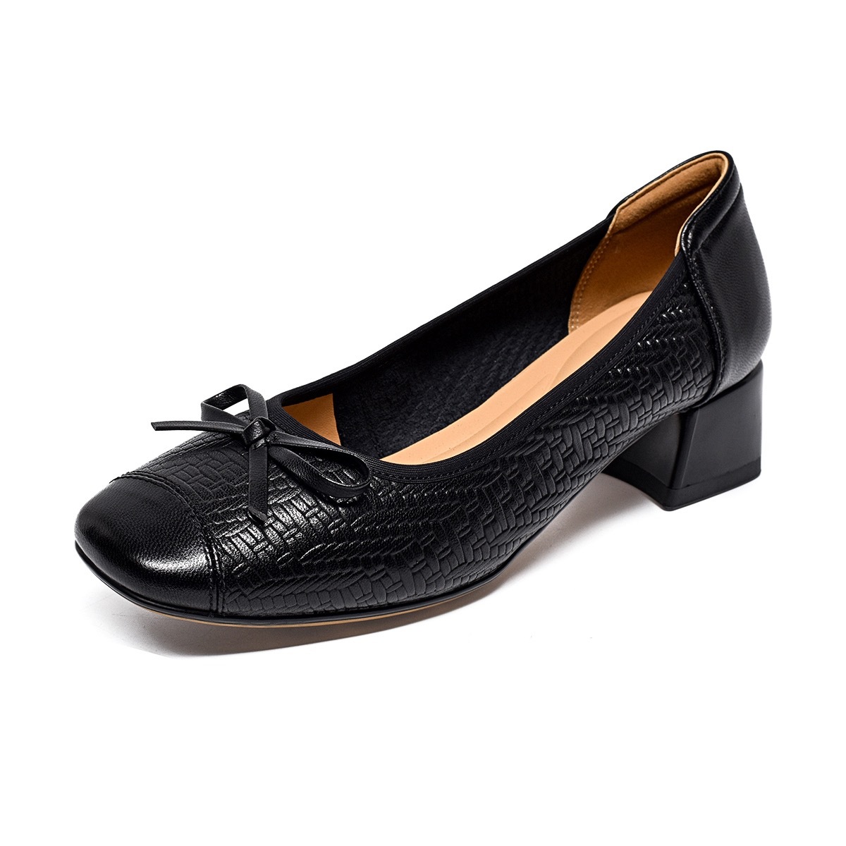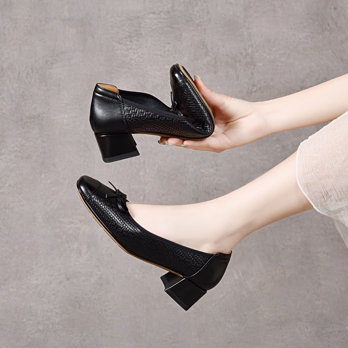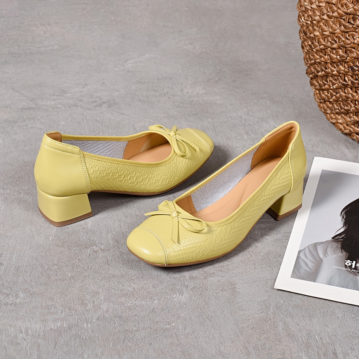 피곤하지 않은 슈퍼 소프트 송아지 가죽 신발 2025 봄과 여름 새로운 프랑스 라운드 발가락 플랫 발레 슈즈 두꺼운 발 뒤꿈치 여성용 신발스토어 가기