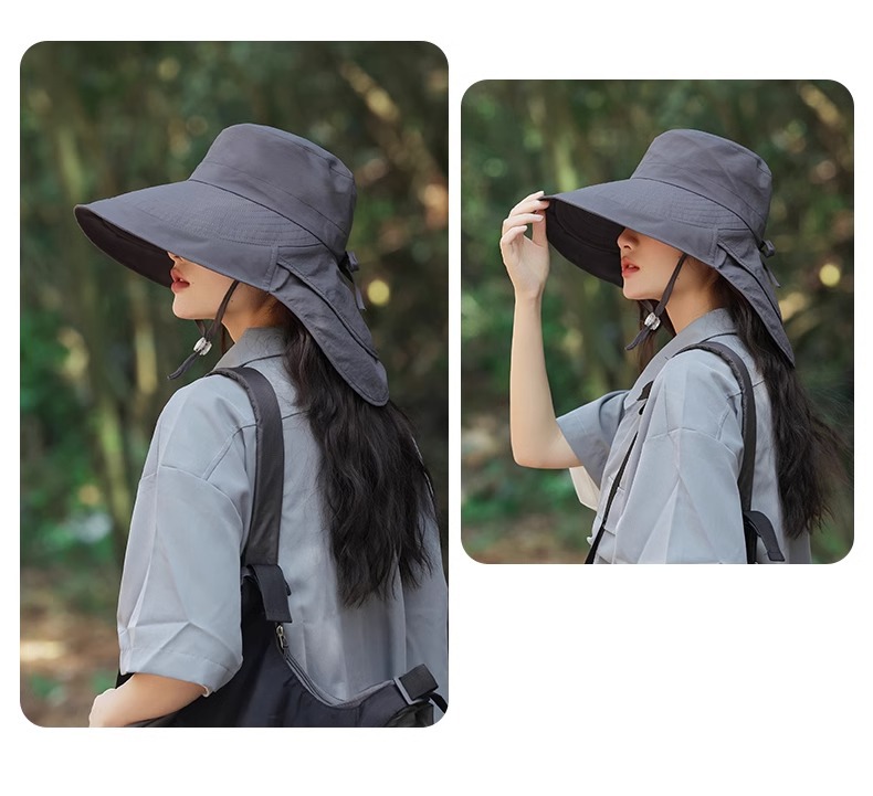 여성용 자외선 차단 모자, 여름용 태양 모자, 야외 하이킹 및 등산 어부 모자, 포니테일로 묶을 수 있는 큰 챙 목 보호 태양 모자스토어 가기