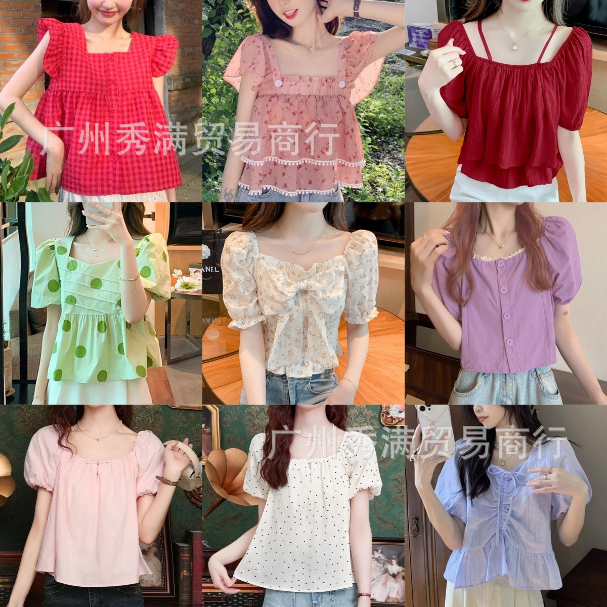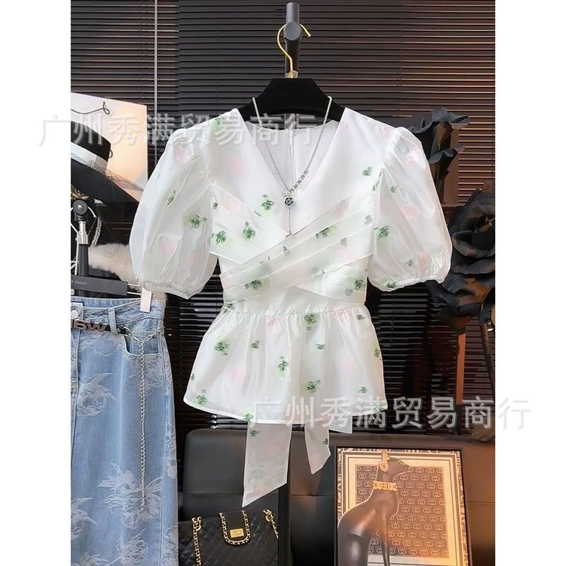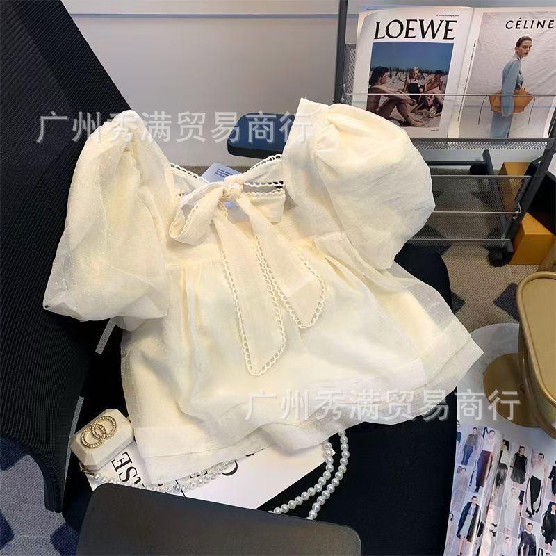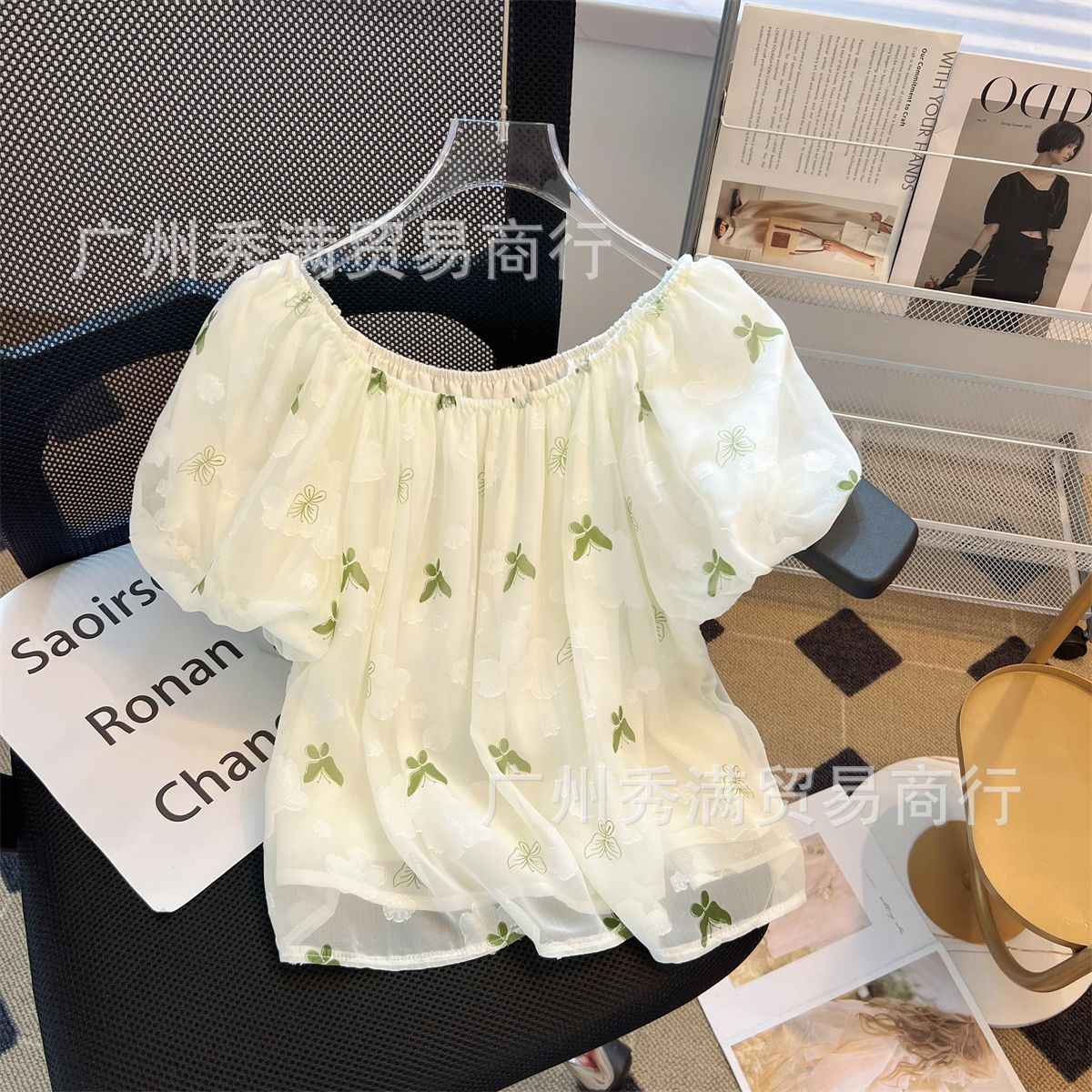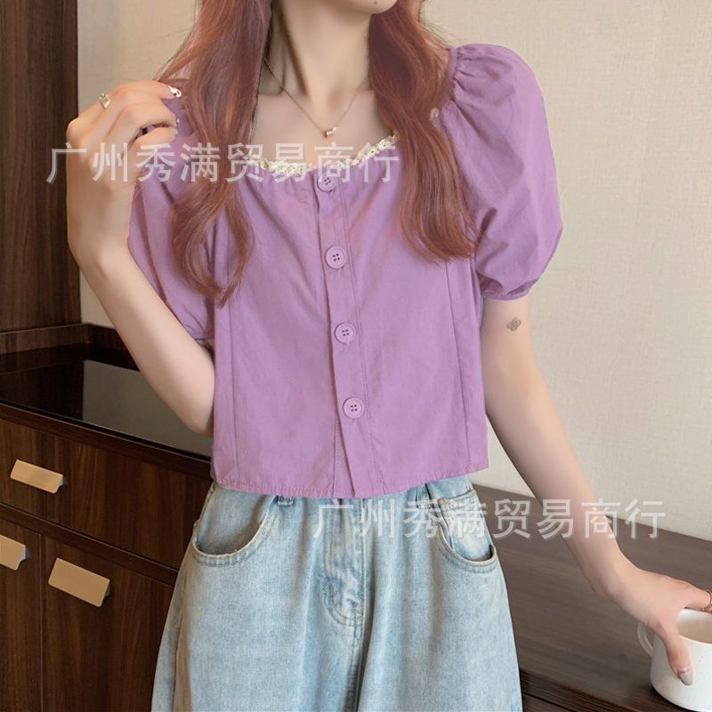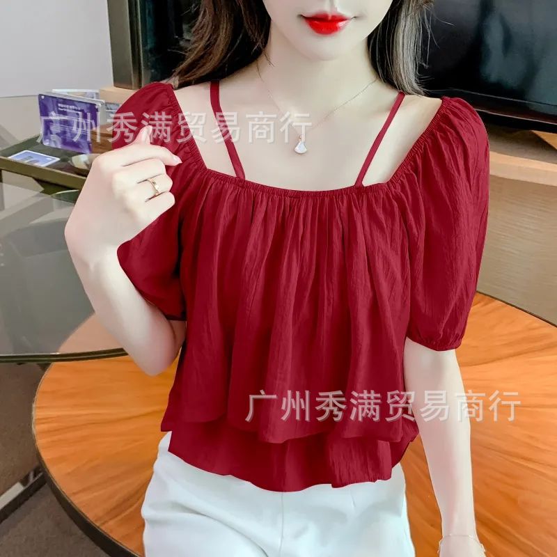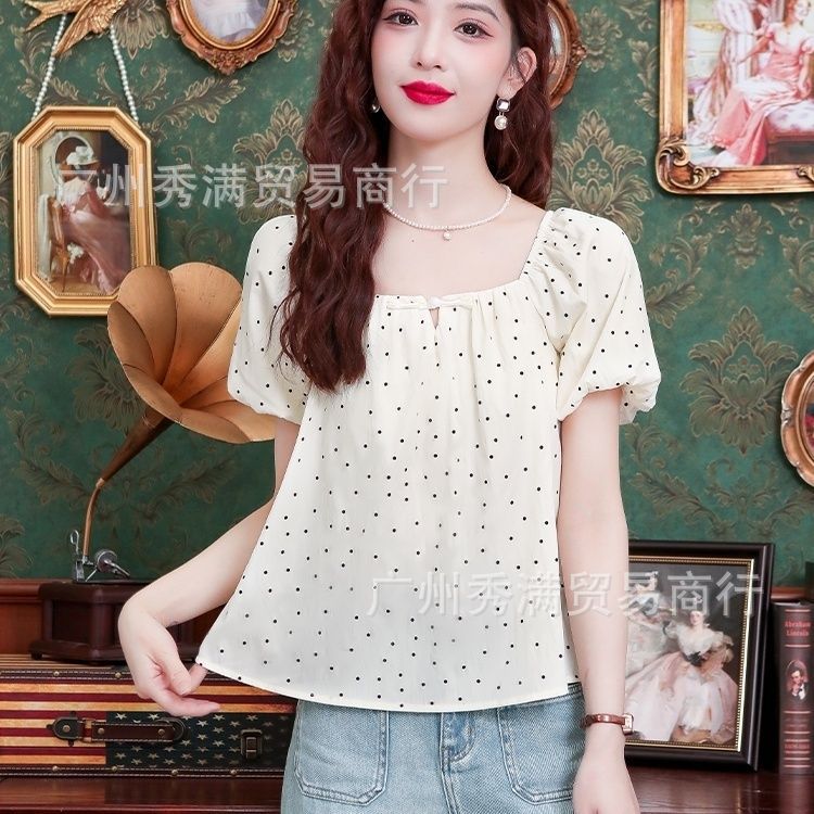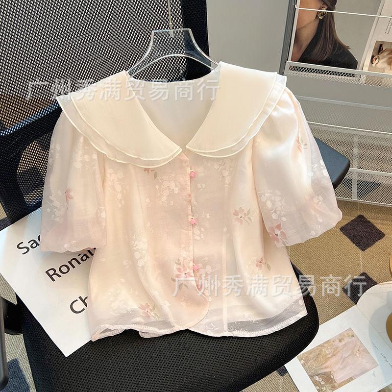 한국 스타일 루즈한 쉬폰 반팔 여성 2025 여름 신상 슬림하고 다재다능한 패셔너블한 짧은 셔츠 스위트 탑