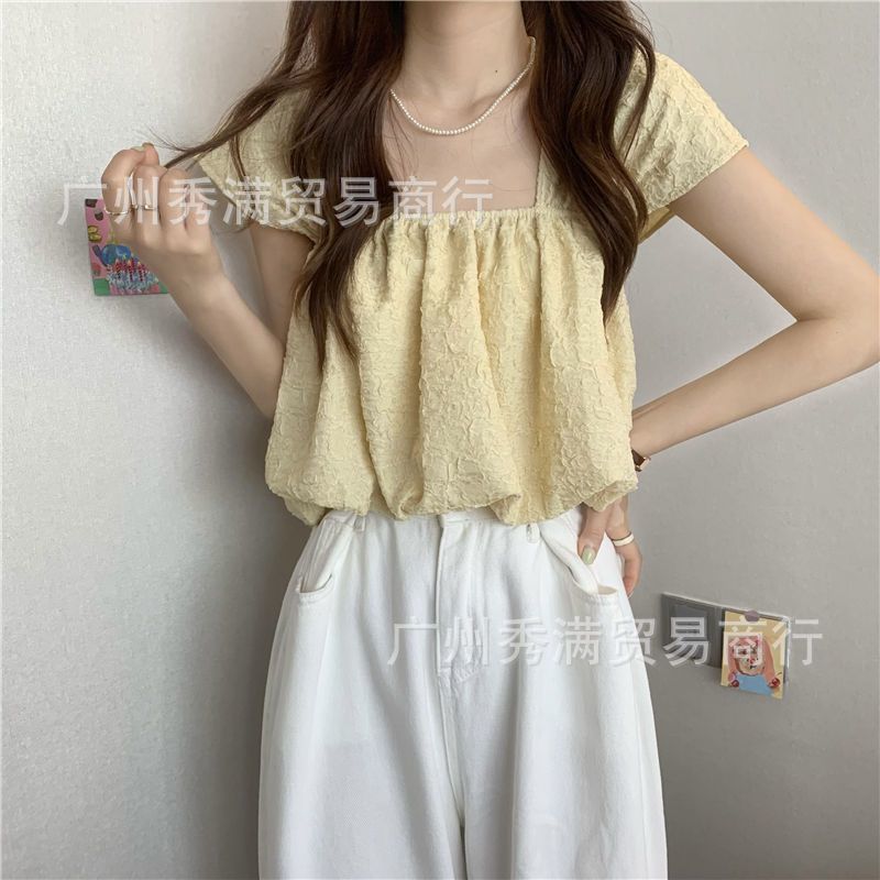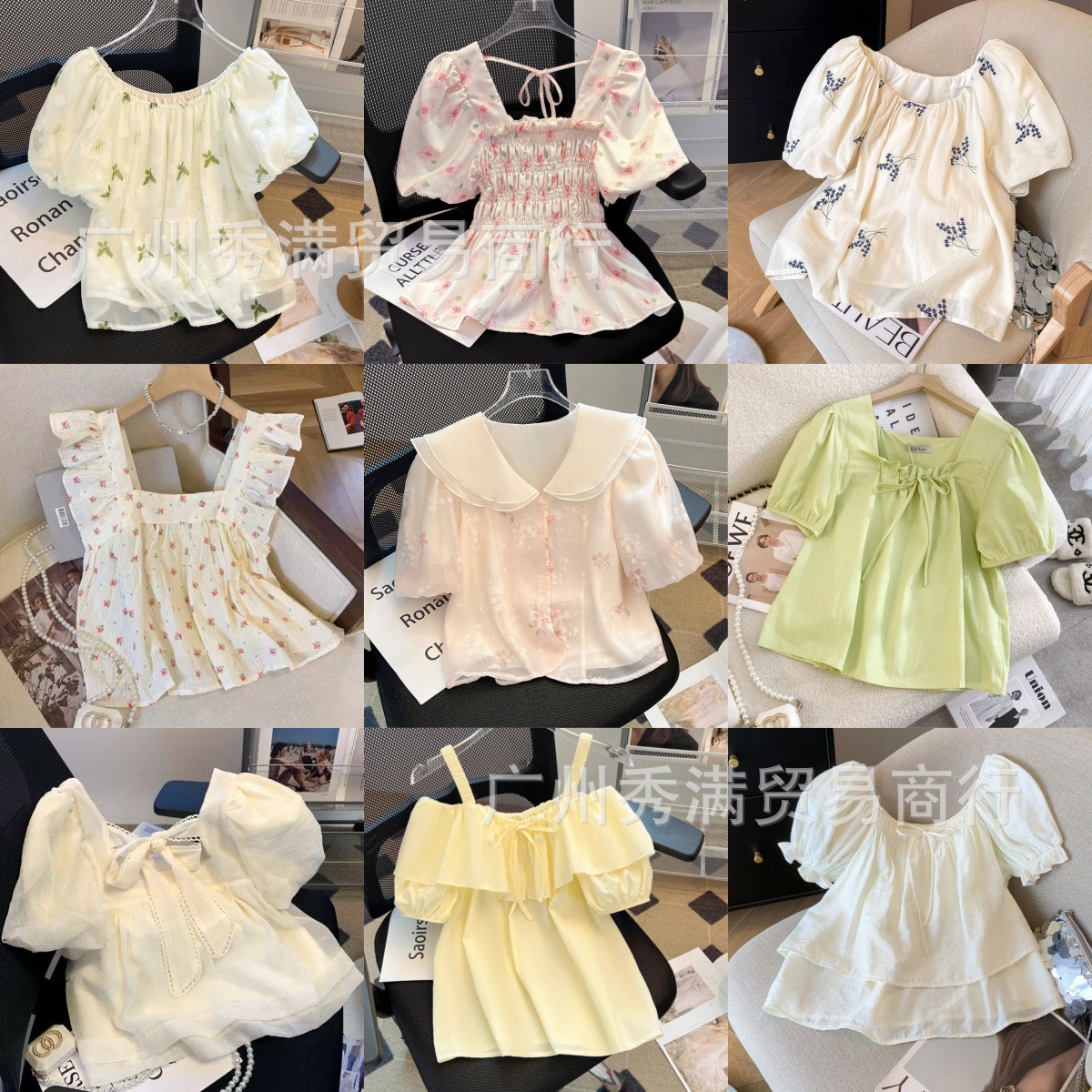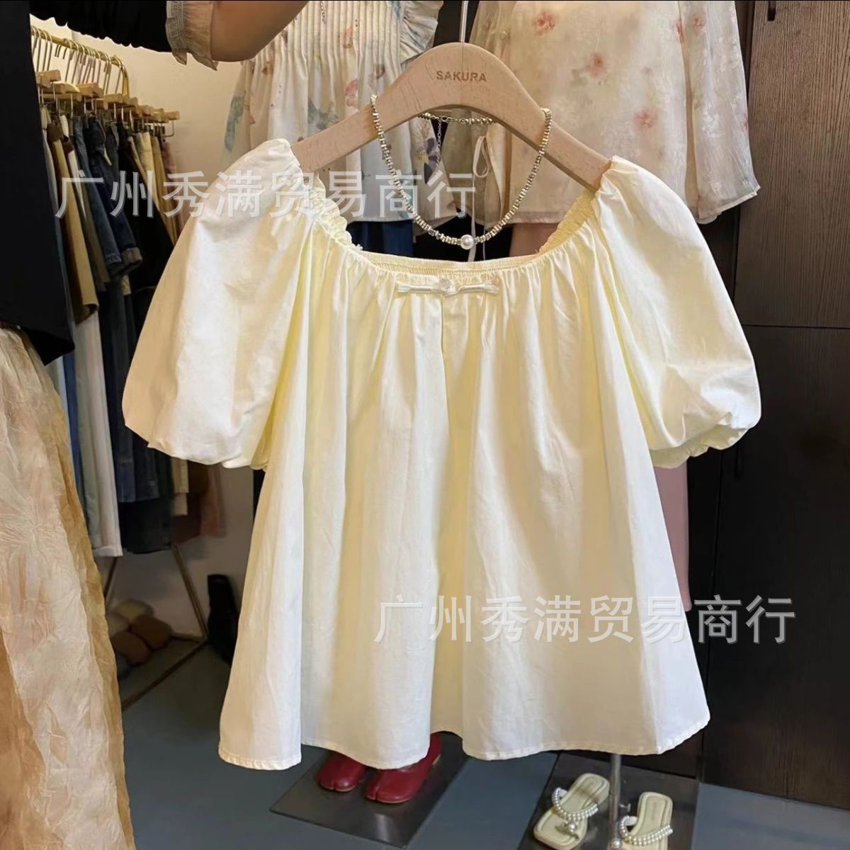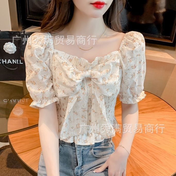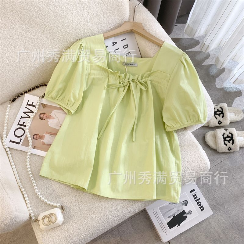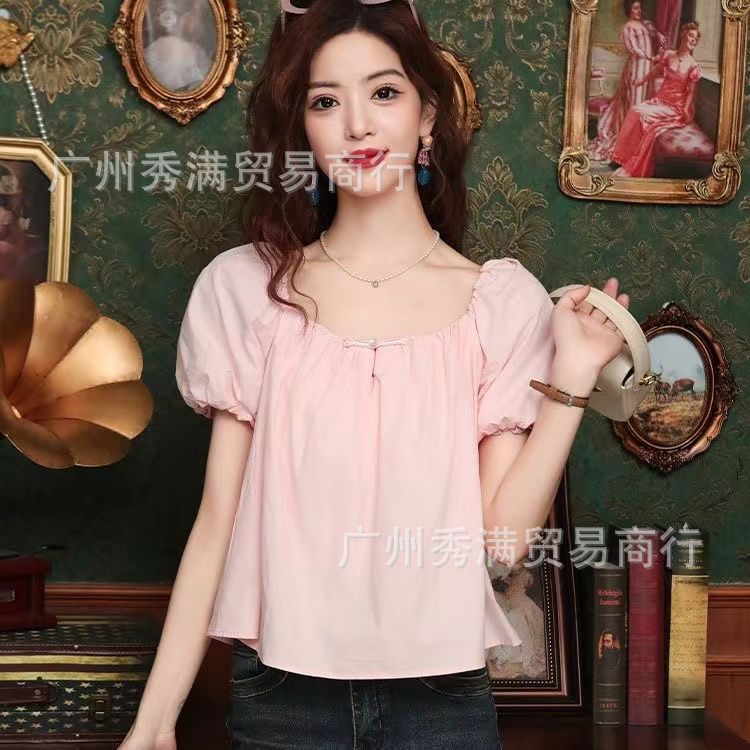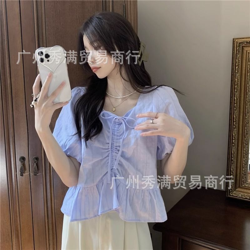 한국 스타일 루즈한 쉬폰 반팔 여성 2025 여름 신상 슬림하고 다재다능한 패셔너블한 짧은 셔츠 스위트 탑