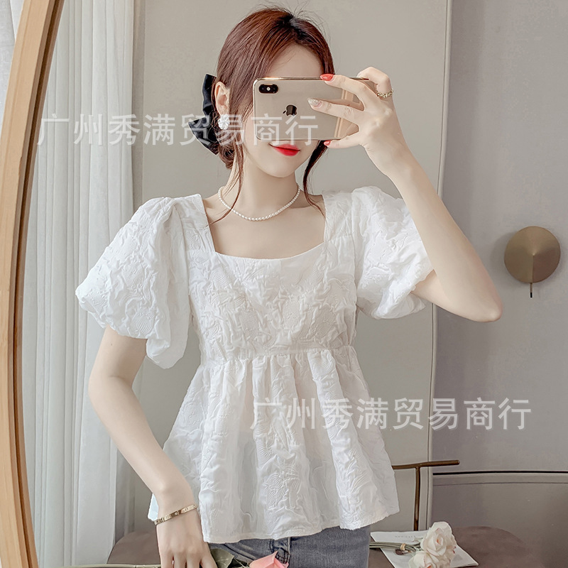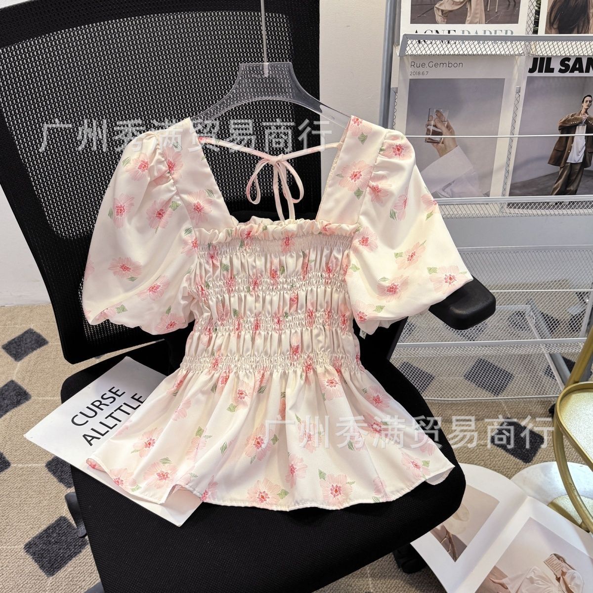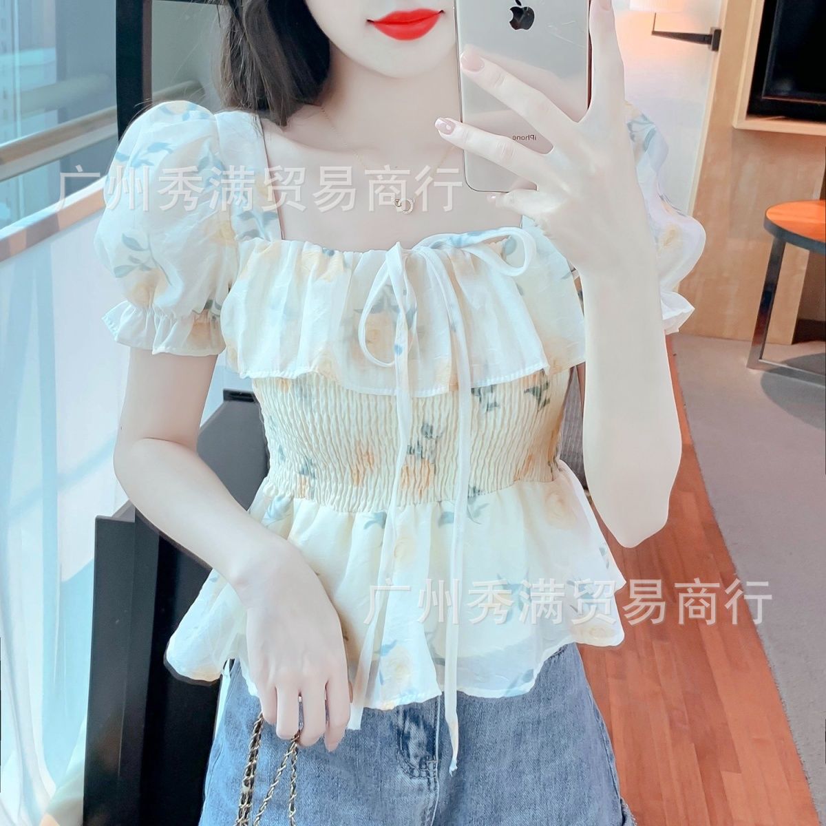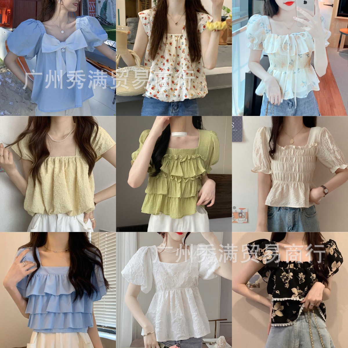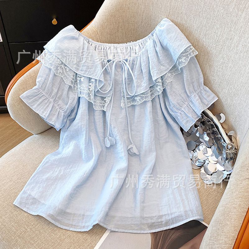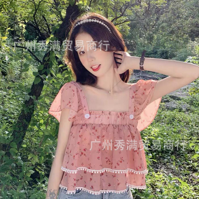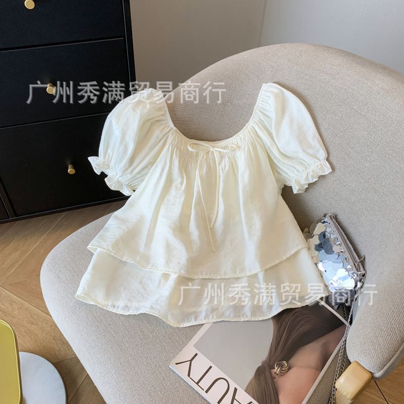 한국 스타일 루즈한 쉬폰 반팔 여성 2025 여름 신상 슬림하고 다재다능한 패셔너블한 짧은 셔츠 스위트 탑