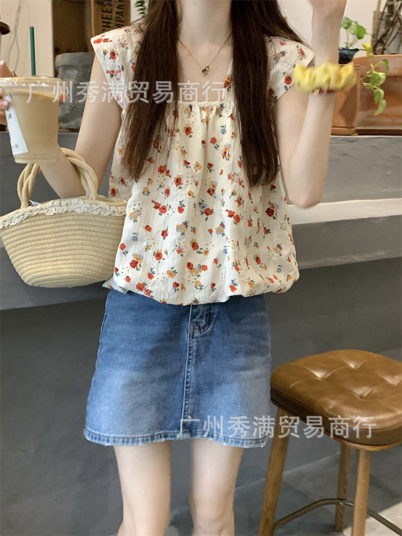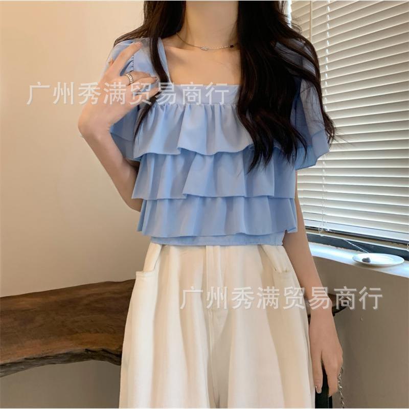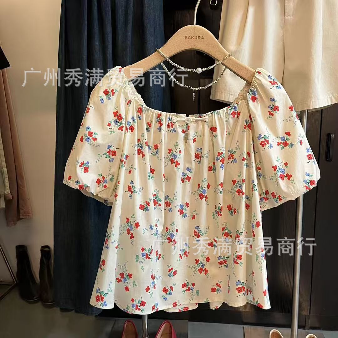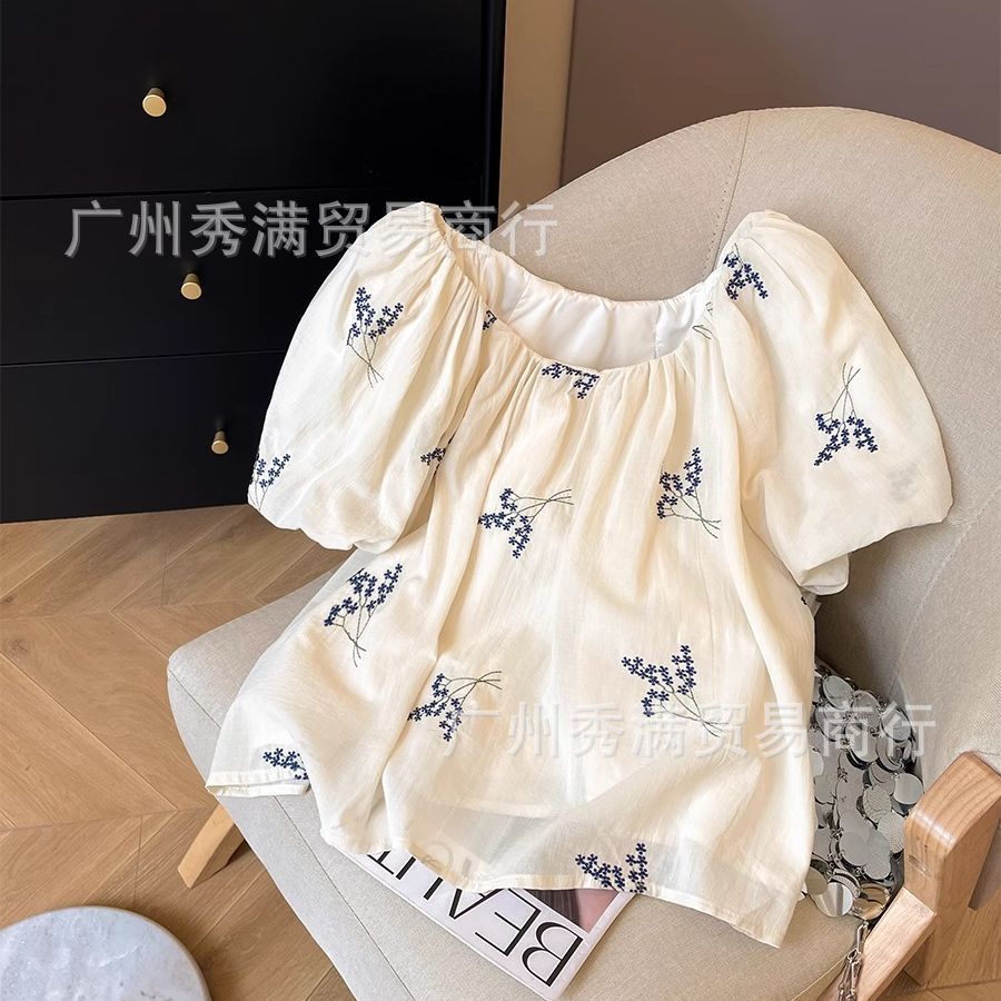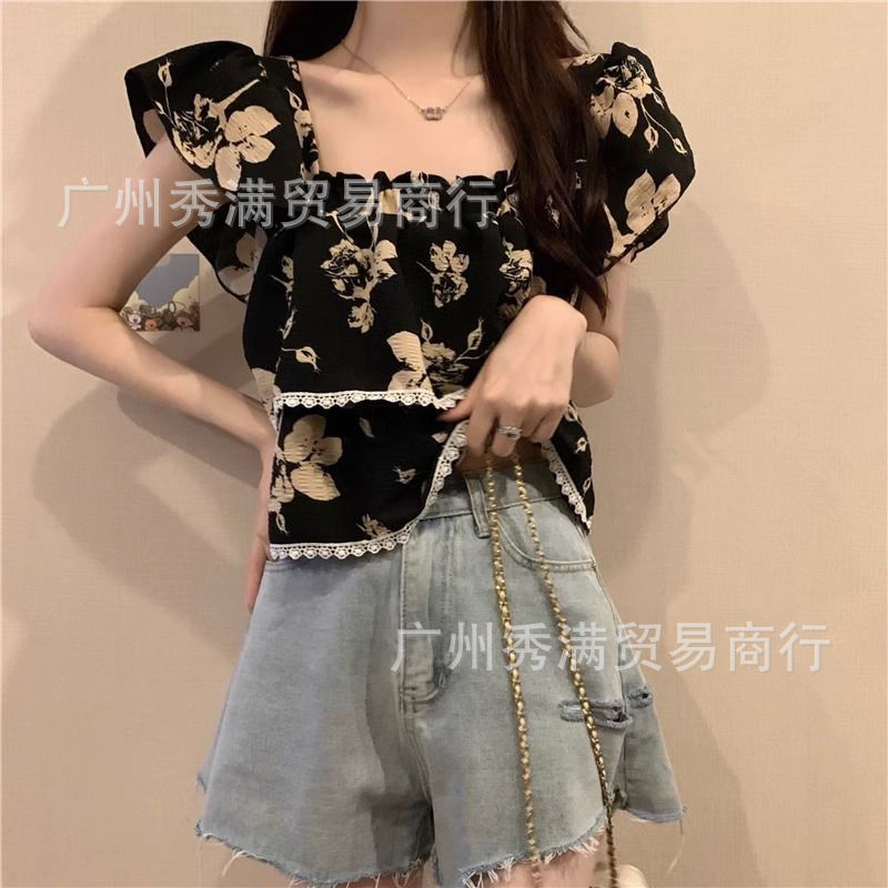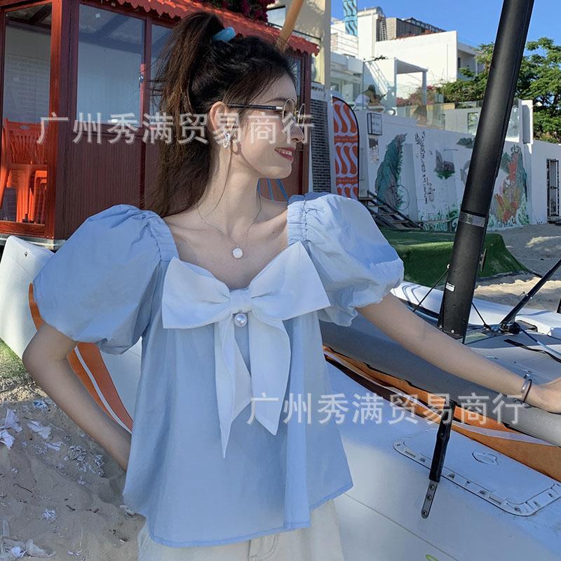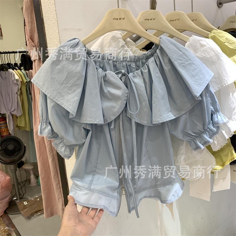 한국 스타일 루즈한 쉬폰 반팔 여성 2025 여름 신상 슬림하고 다재다능한 패셔너블한 짧은 셔츠 스위트 탑
