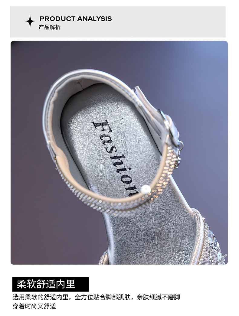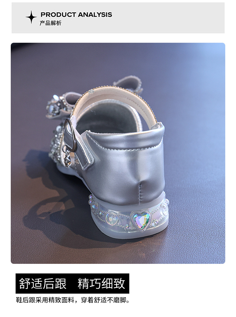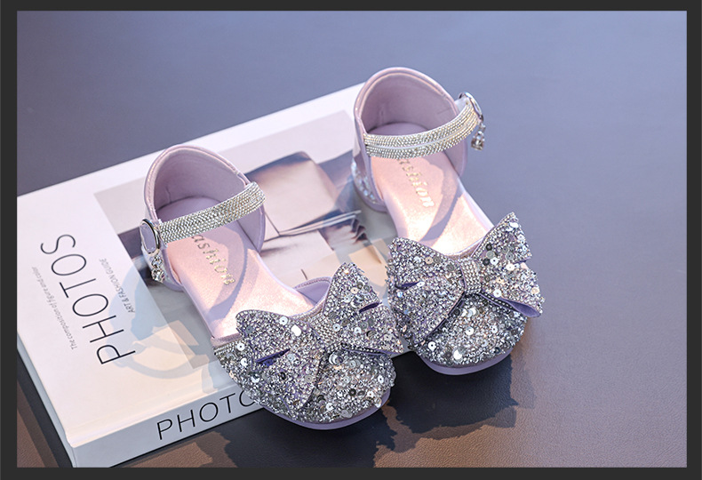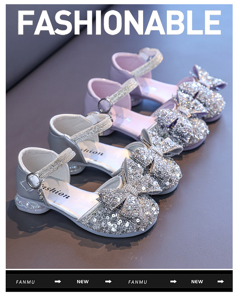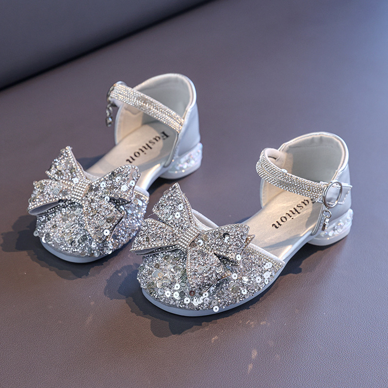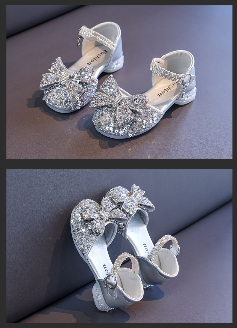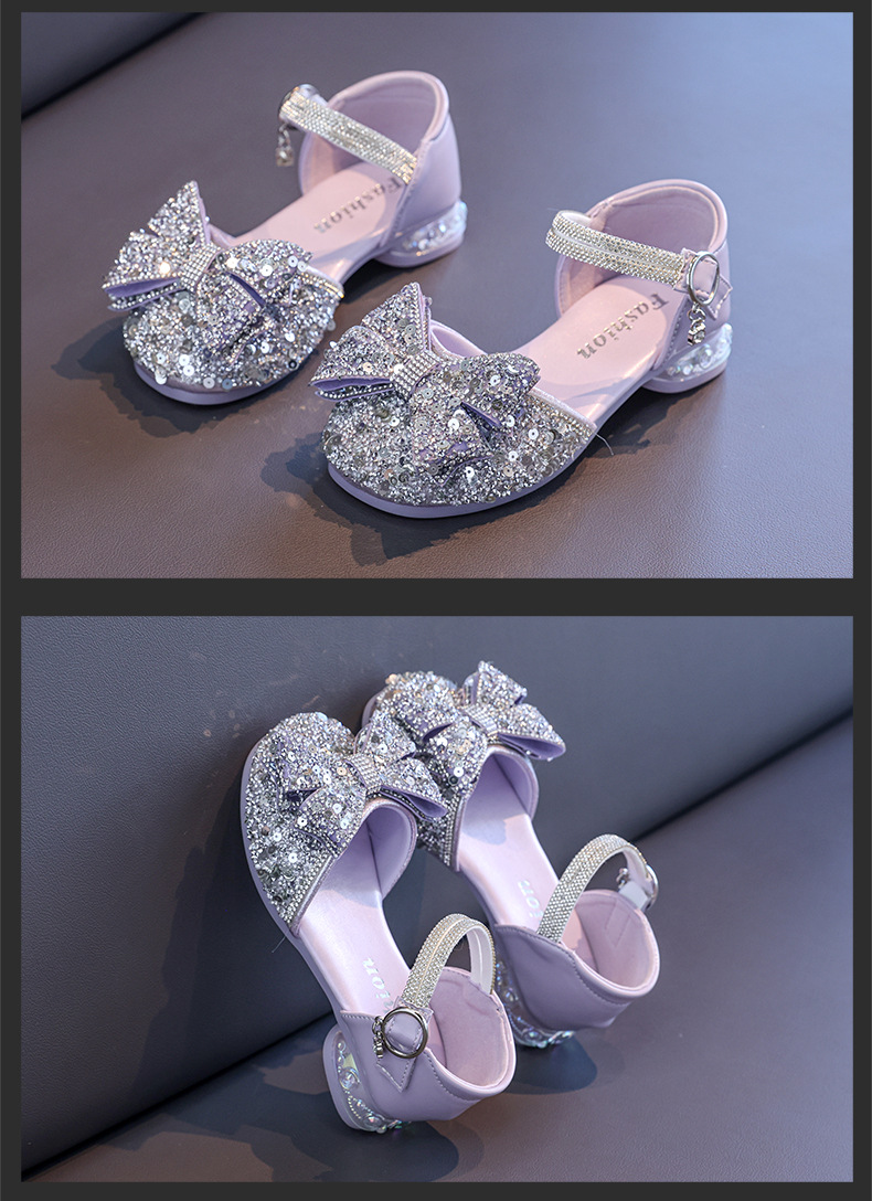 소녀 작은 하이힐 라인스톤 공주 신발 2025 여름 작은 소녀 라인스톤 큰 활 신발 크리스탈 신발스토어 가기