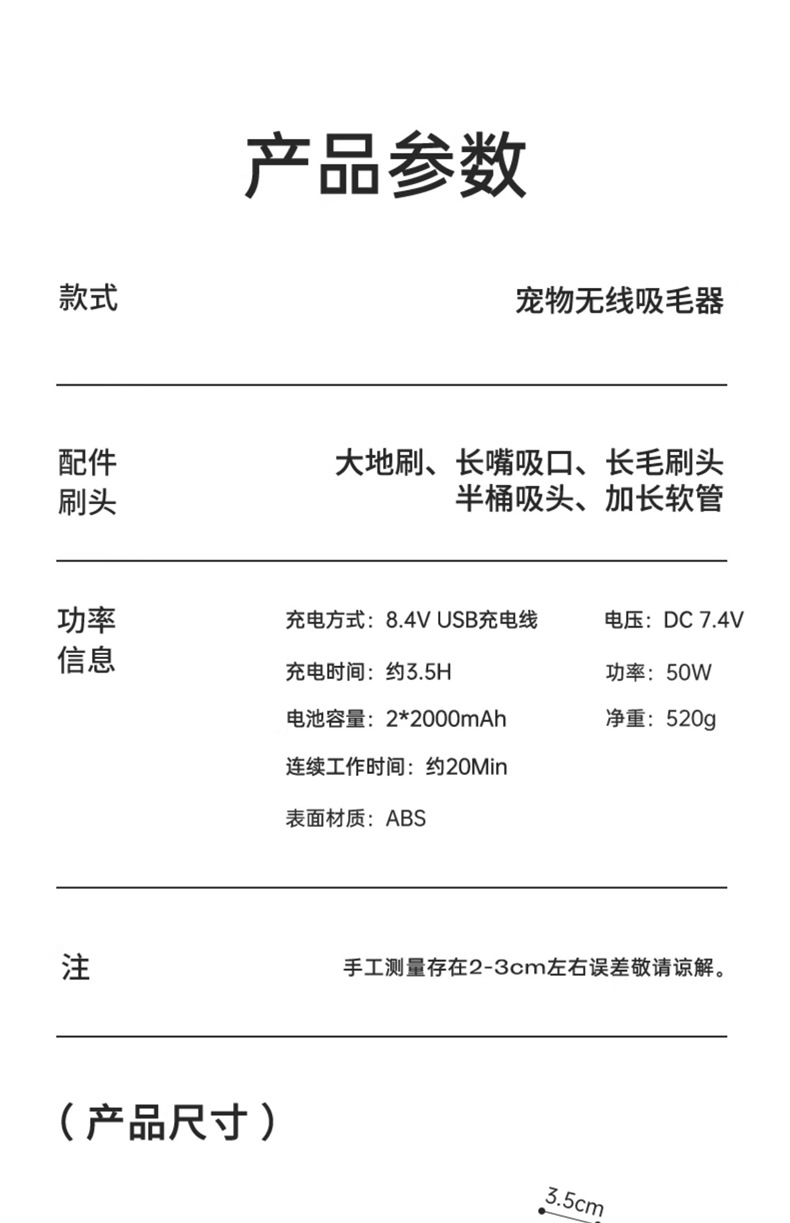• 【48000PA】저소음 강력흡입 업그레이드 버전 쇼트 화이트