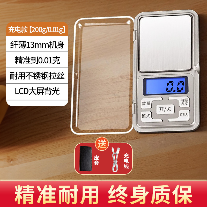 • 충전식 모델 200g/0.01g에는 교정 분동 + 가죽 케이스 + 충전 케이블이 함께 제공됩니다.