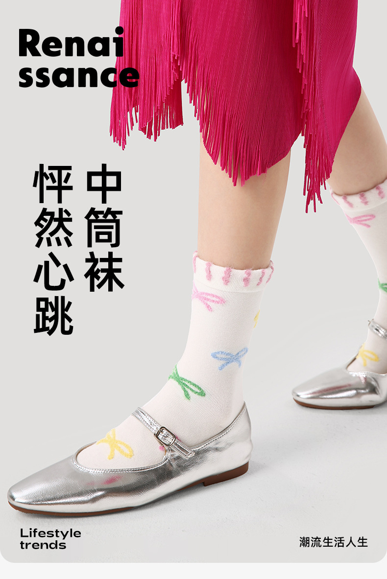 르네상스 활 양말 여성의 가을 얇은 일본 스타일 귀여운 발레 스타일 레이스 소녀의 미드 튜브 양말스토어 가기