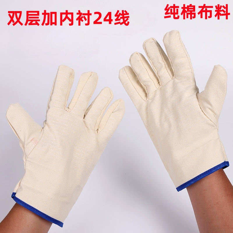 캔버스 장갑 24라인 완전 안감 이중층 두꺼운 천 장갑 전기 용접 단열 내마모성 통기성 및 편안함