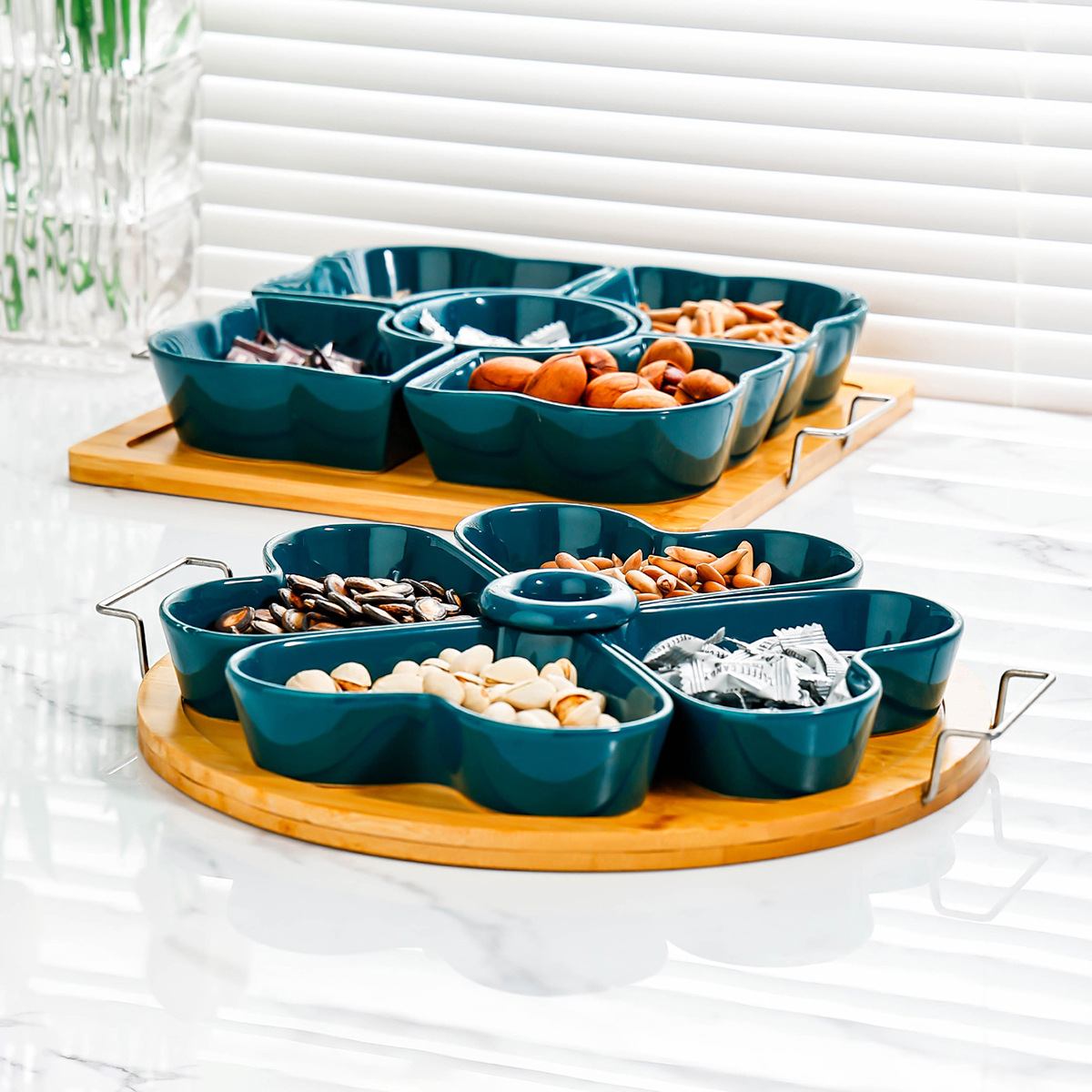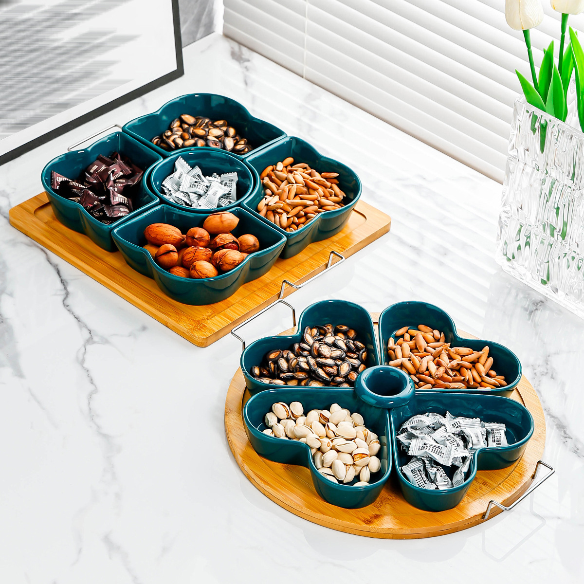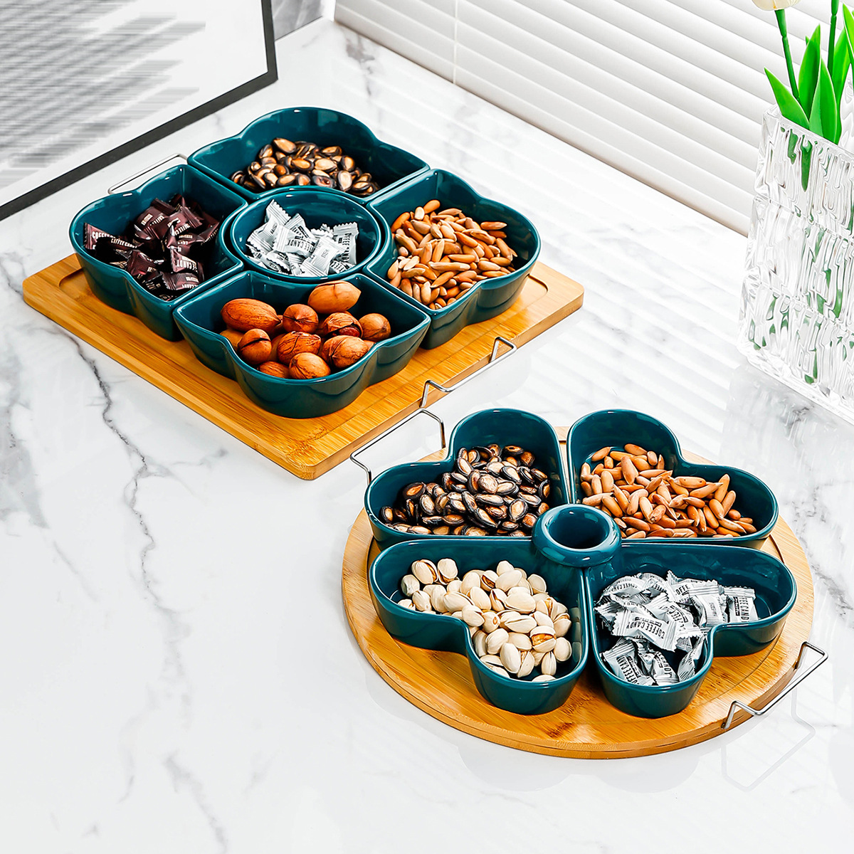 세라믹 말린 과일 플래터 조합 멀티 그리드 과일 플레이트 거실 크리에이티브 스낵 캔디 플레이트 멜론과 견과류 새해스토어 가기